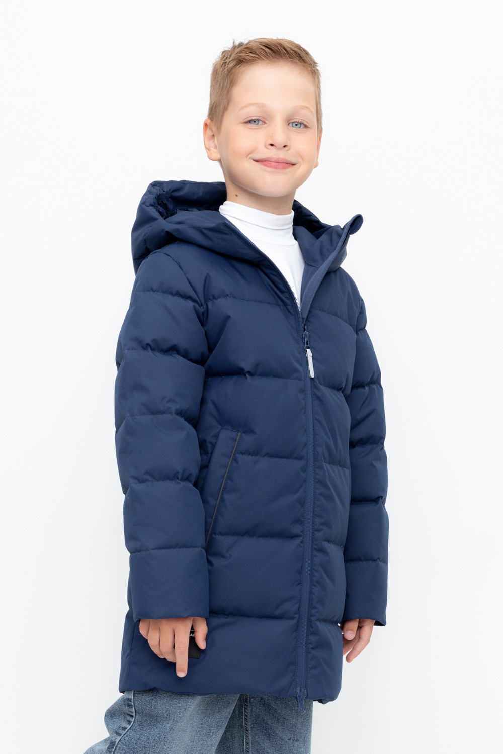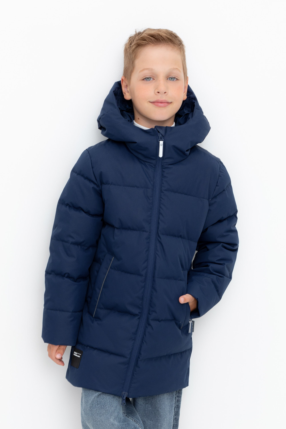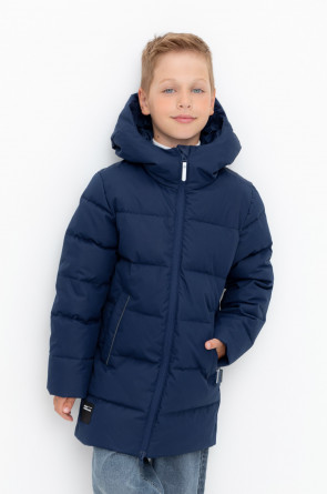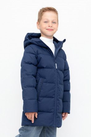 Пальто для мальчика с натуральным утеплителем из гипоаллергенного гусиного пуха (70%) и пера (30%).