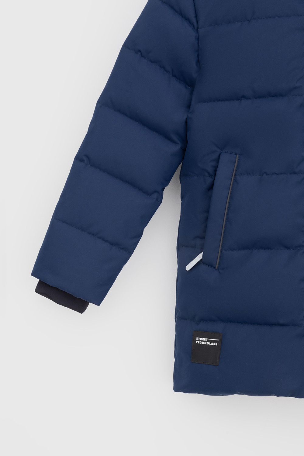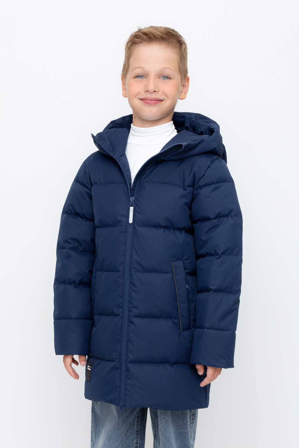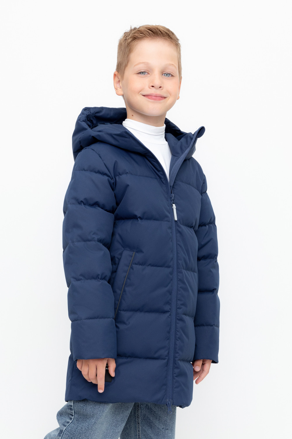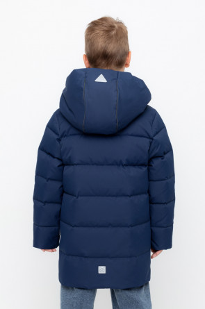 Пальто для мальчика с натуральным утеплителем из гипоаллергенного гусиного пуха (70%) и пера (30%).