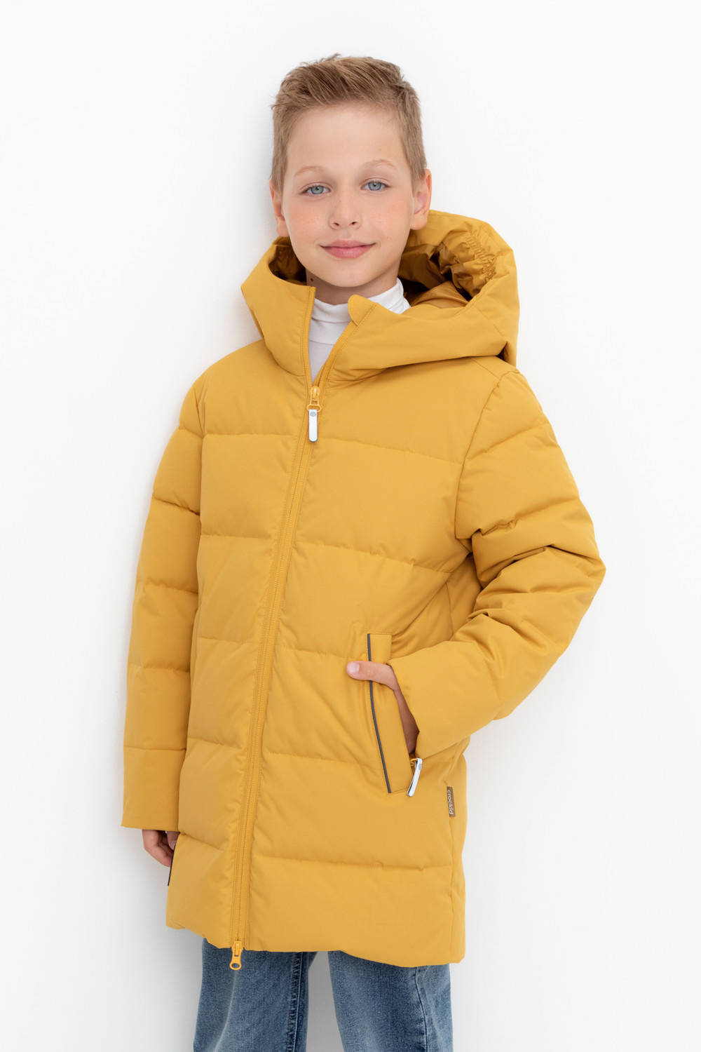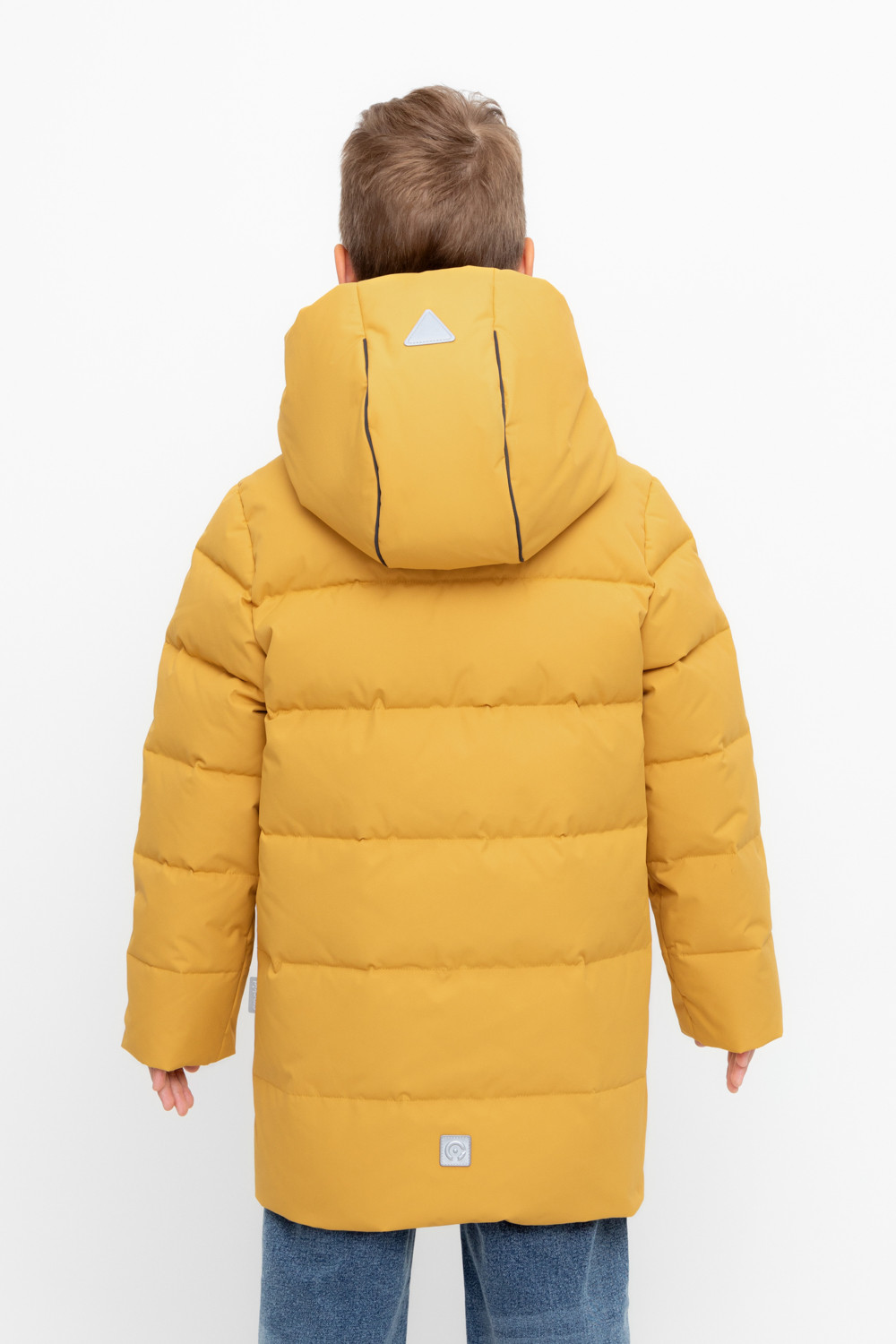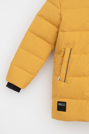 Пальто для мальчика с натуральным утеплителем из гипоаллергенного гусиного пуха (70%) и пера (30%).