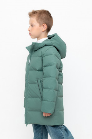 Пальто для мальчика с натуральным утеплителем из гипоаллергенного гусиного пуха (70%) и пера (30%).