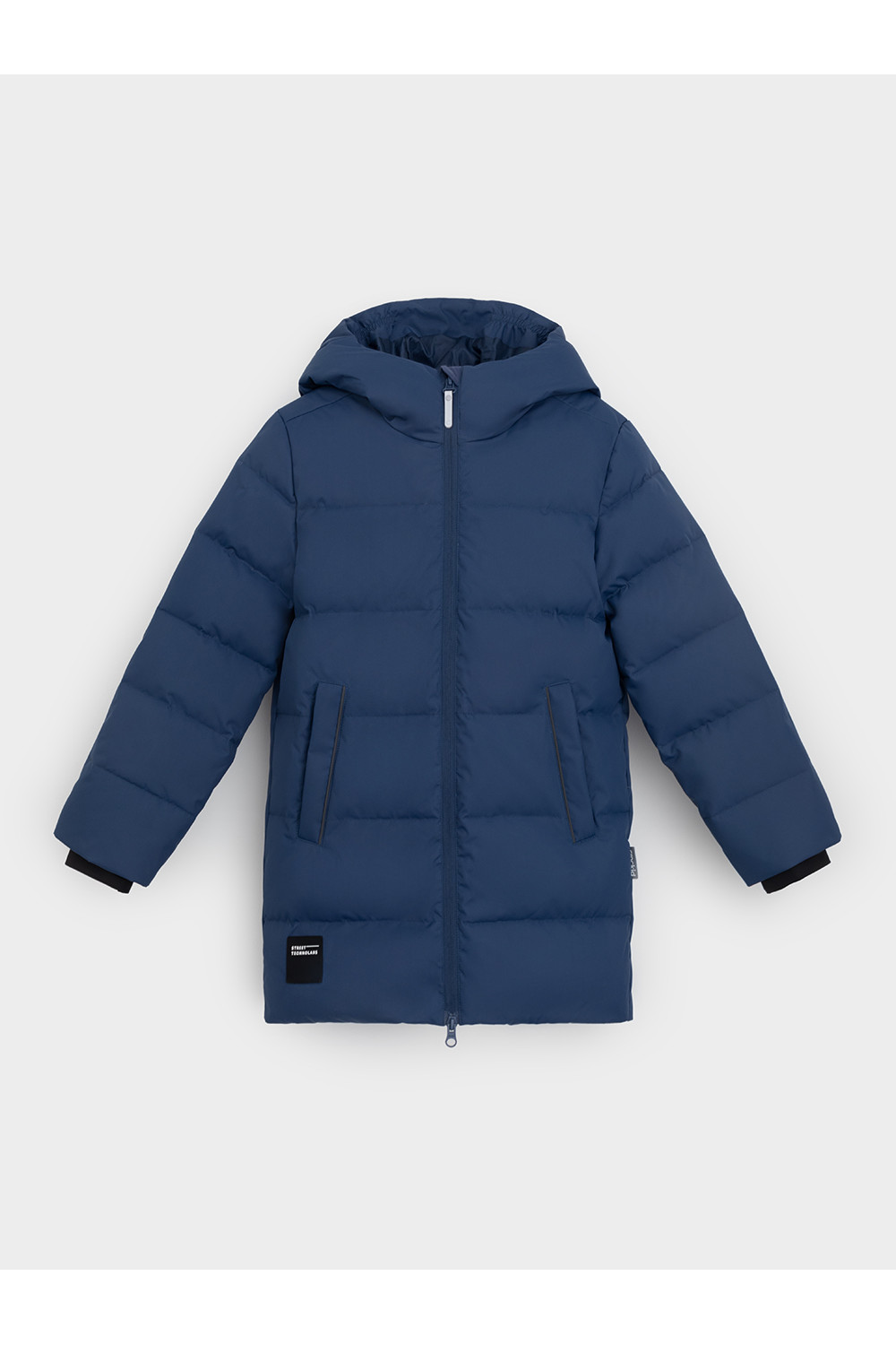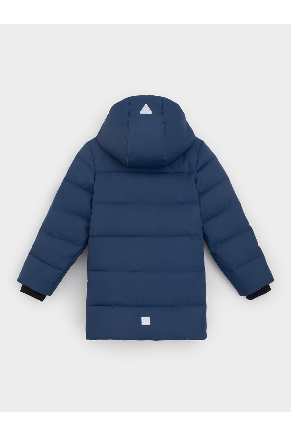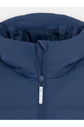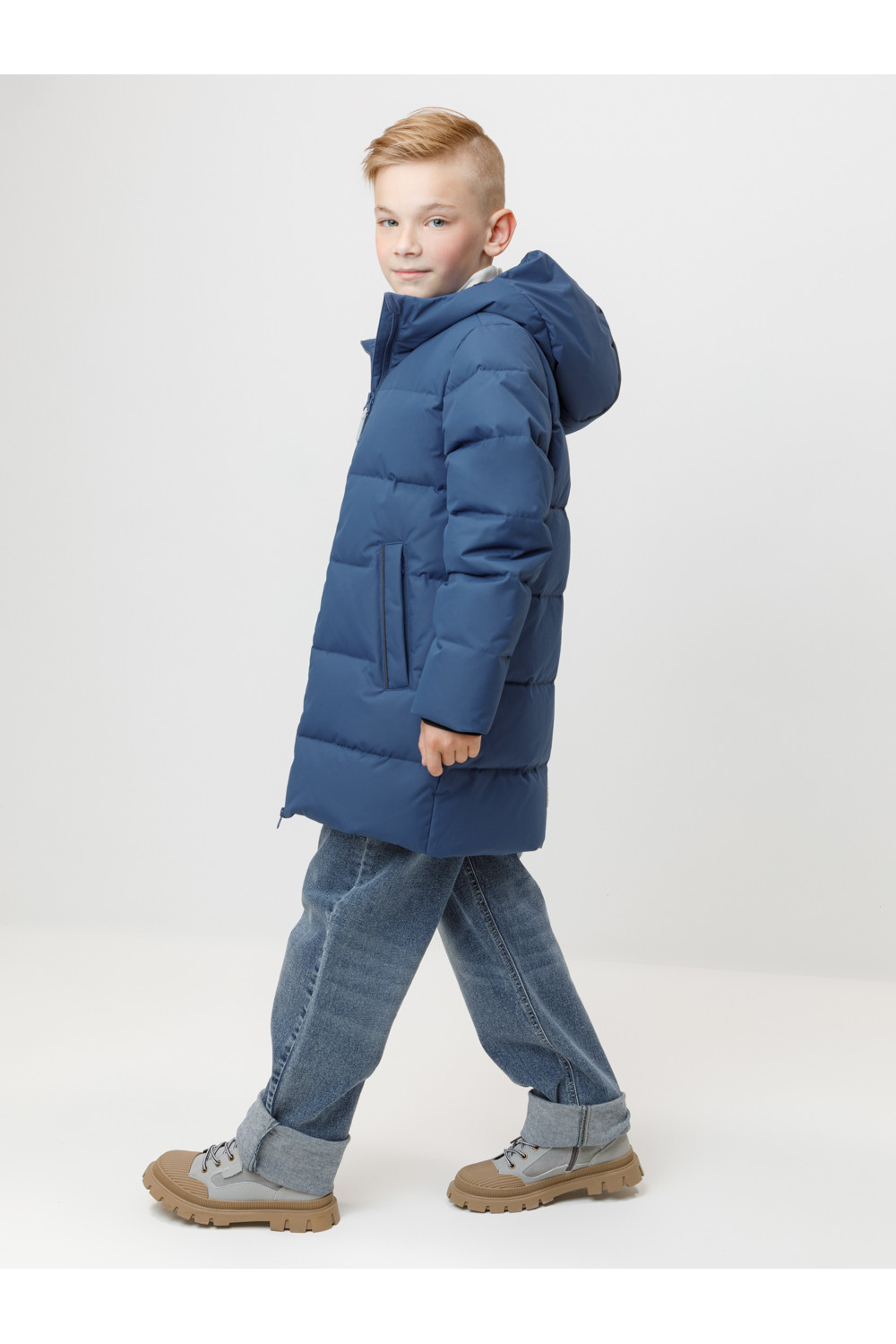 Зимнее пальто для мальчика с натуральным утеплителем из гусиного пуха (70%) и пера (30%). Выполнено из мембранной ткани с дополнительной тефлоновой обработкой, которая предохраняет изделие от загрязнений и отталкивает влагу. Подклад выполнен из 100% полиэстера. Пальто застёгивается на молнию, предусмотрена защита подбородка. Несъёмный капюшон имеет эластичные утяжки. По бокам два кармана на молнии, так же имеется внутренний карман. В рукавах мягкие внутренние манжеты. Во всех изделиях верхнего ассортимента для безопасности ребёнка предусмотрены светоотражающие элементы.