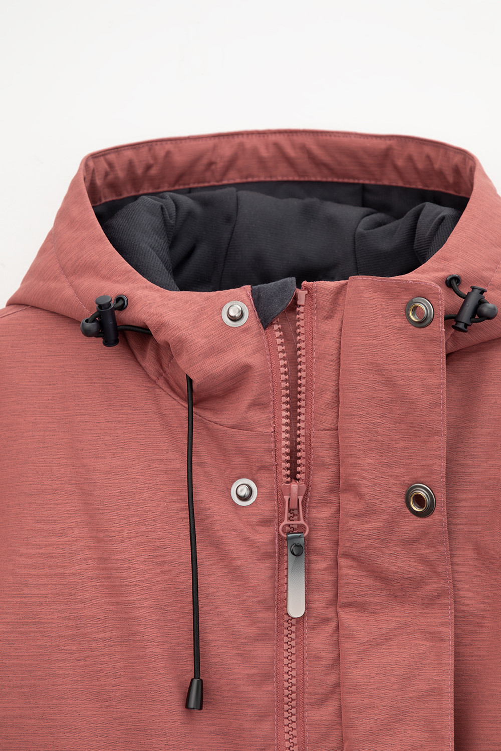 • Эластичная утяжка со стопперами и шнурами на капюшоне