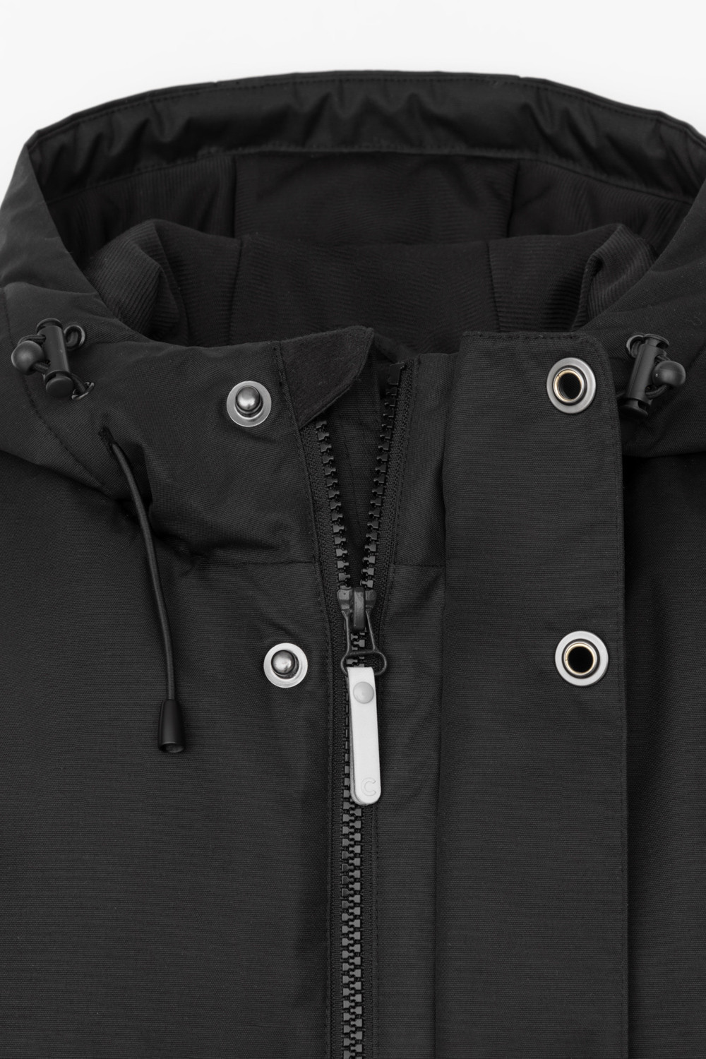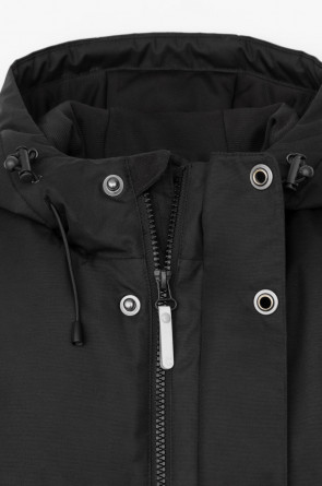 • Эластичная утяжка со стопперами и шнурами на капюшоне