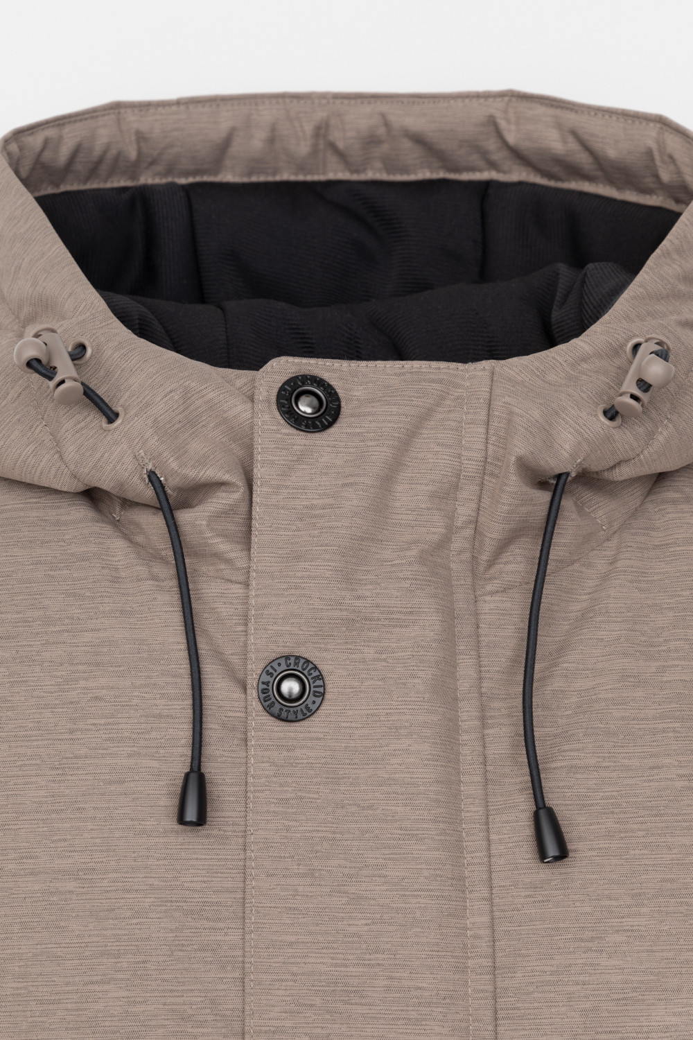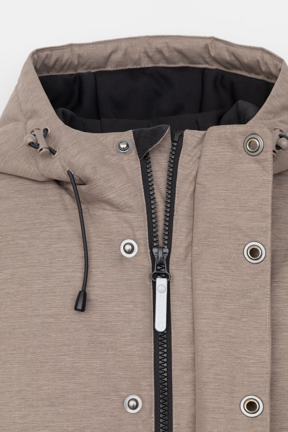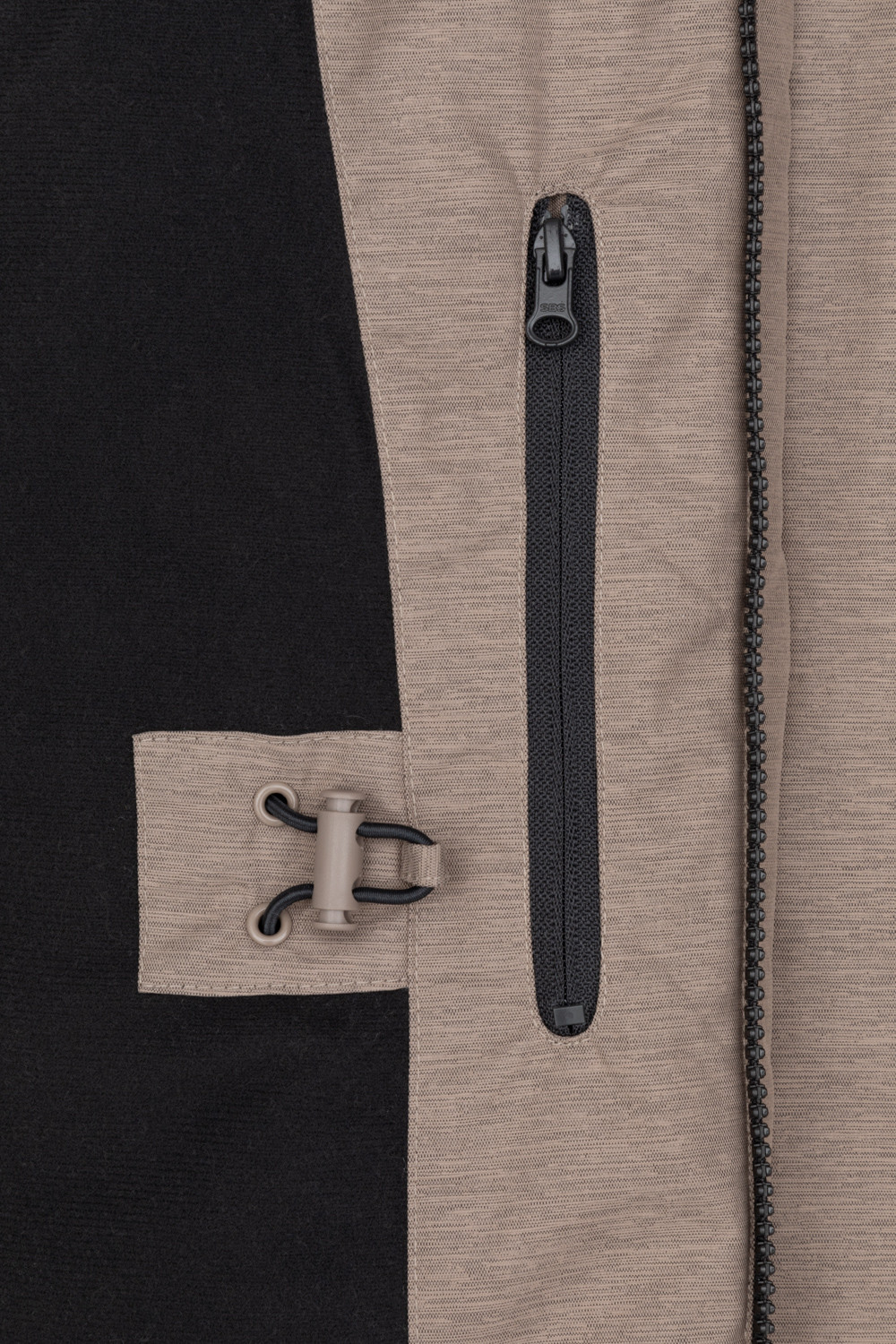 • Эластичная утяжка со стопперами и шнурами на капюшоне