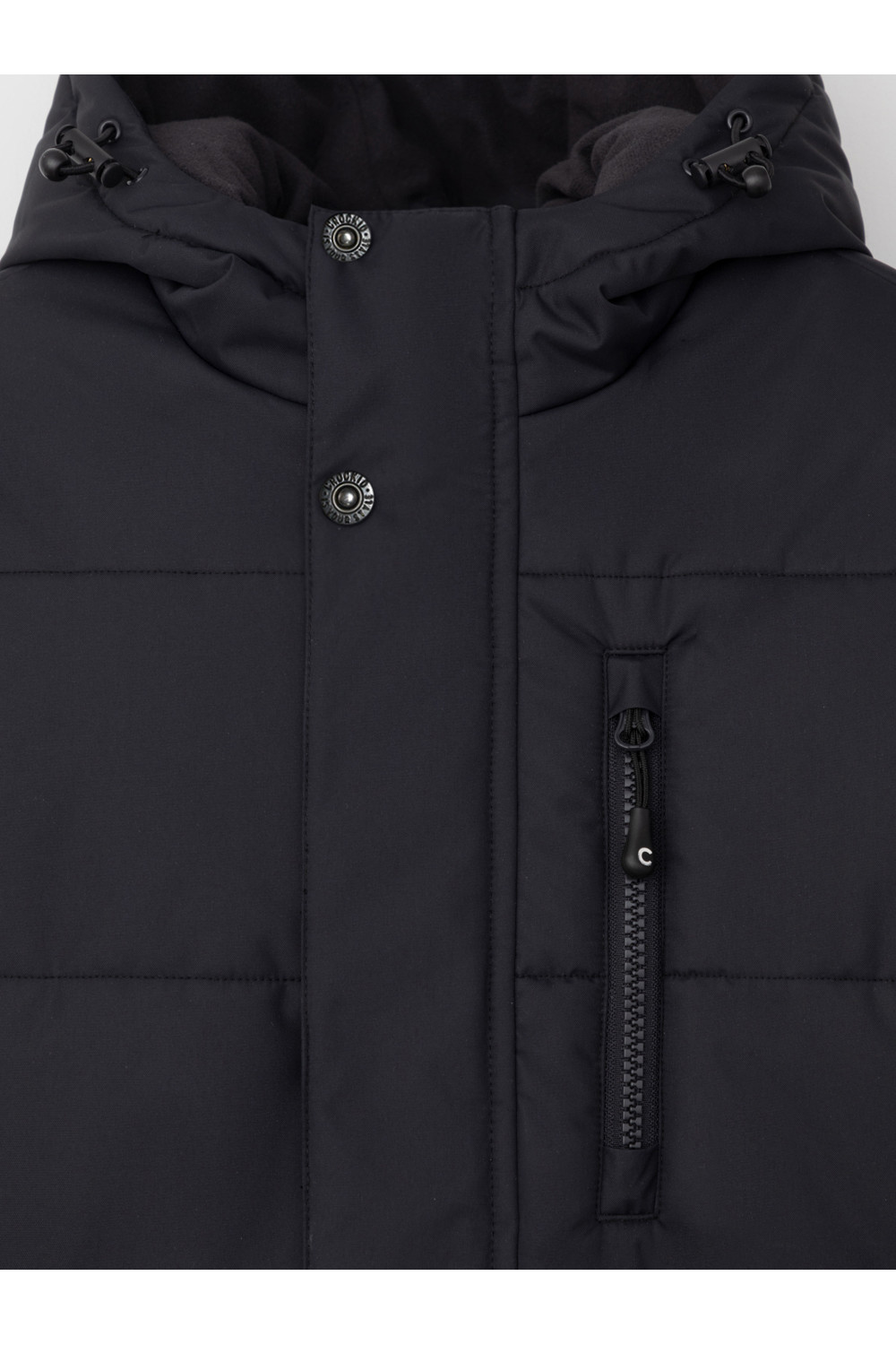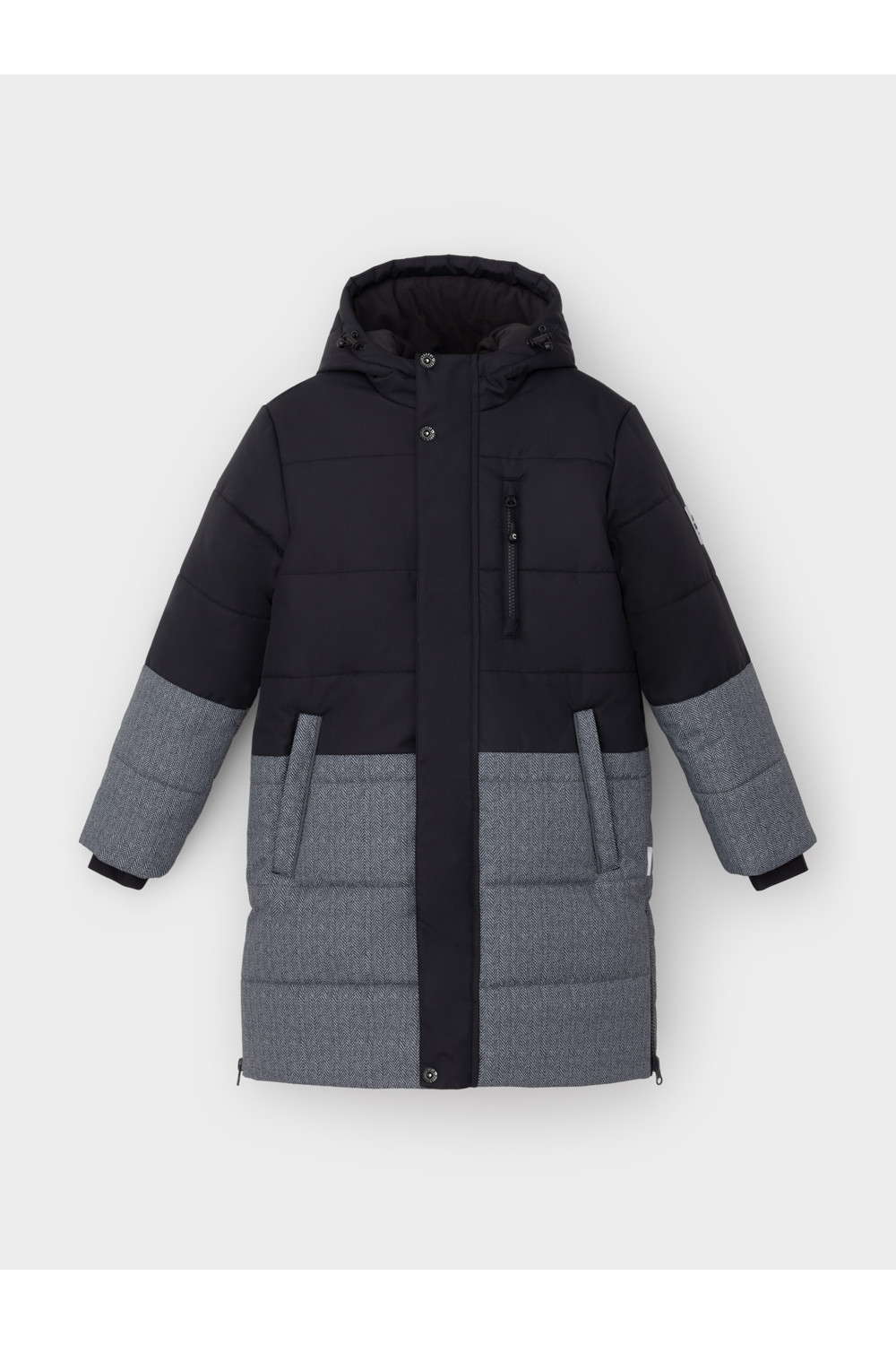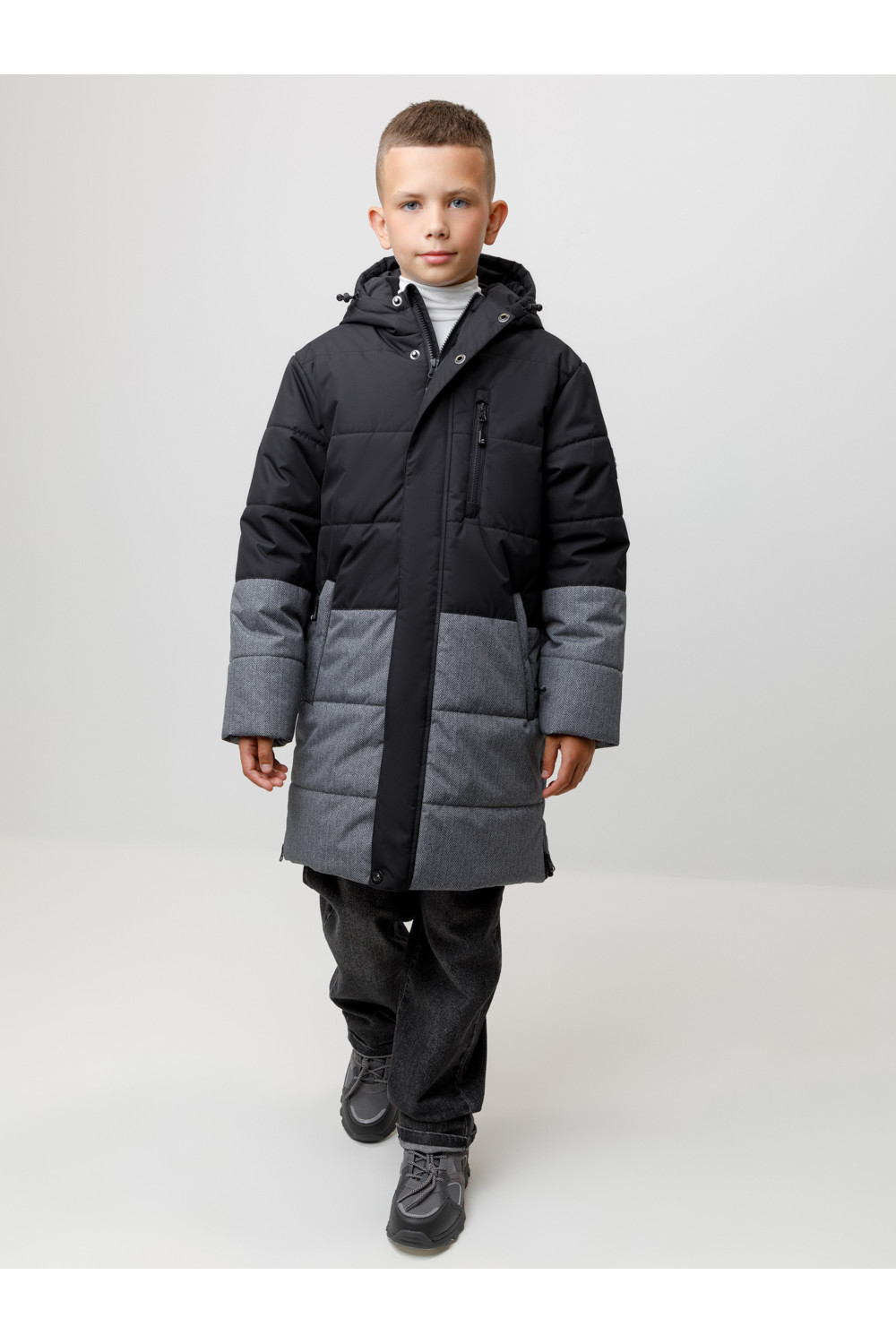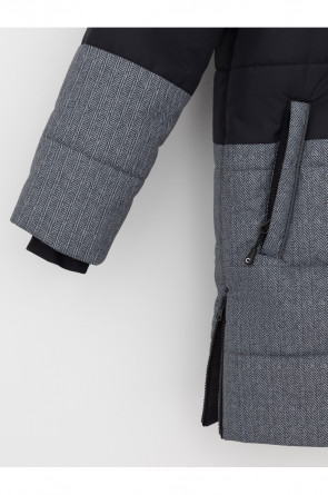 Зимнее пальто для мальчика с утеплителем SEE®: 300 г/м2. Выполнено из мембранной ткани с дополнительной тефлоновой обработкой, которая предохраняет изделие от загрязнений и отталкивает влагу. Подклад выполнен из 100% полиэстера Tricot. Пальто застёгивается на молнию и внешнюю планку с потайными кнопками, предусмотрена защита подбородка. Вшитый капюшон имеет эластичную утяжку со стопперами. На рукавах внутренние эластичные манжеты. По бокам два кармана на молниях и один карман на груди. Во всех изделиях верхнего ассортимента для безопасности ребёнка предусмотрены светоотражающие элементы.
