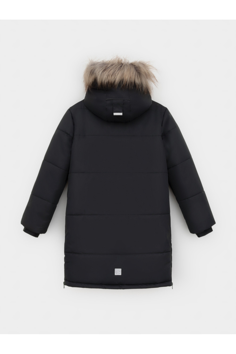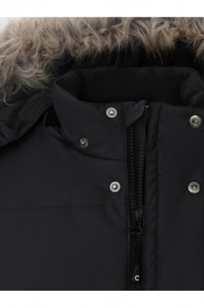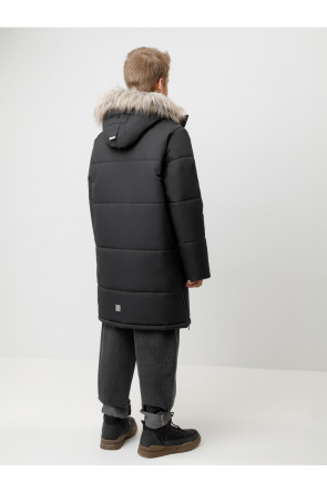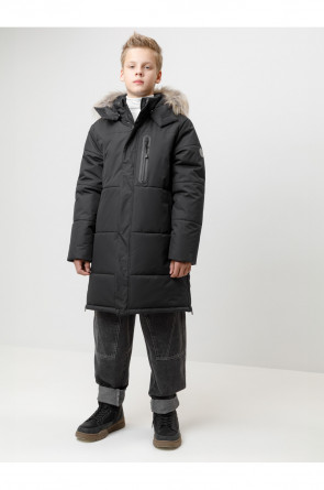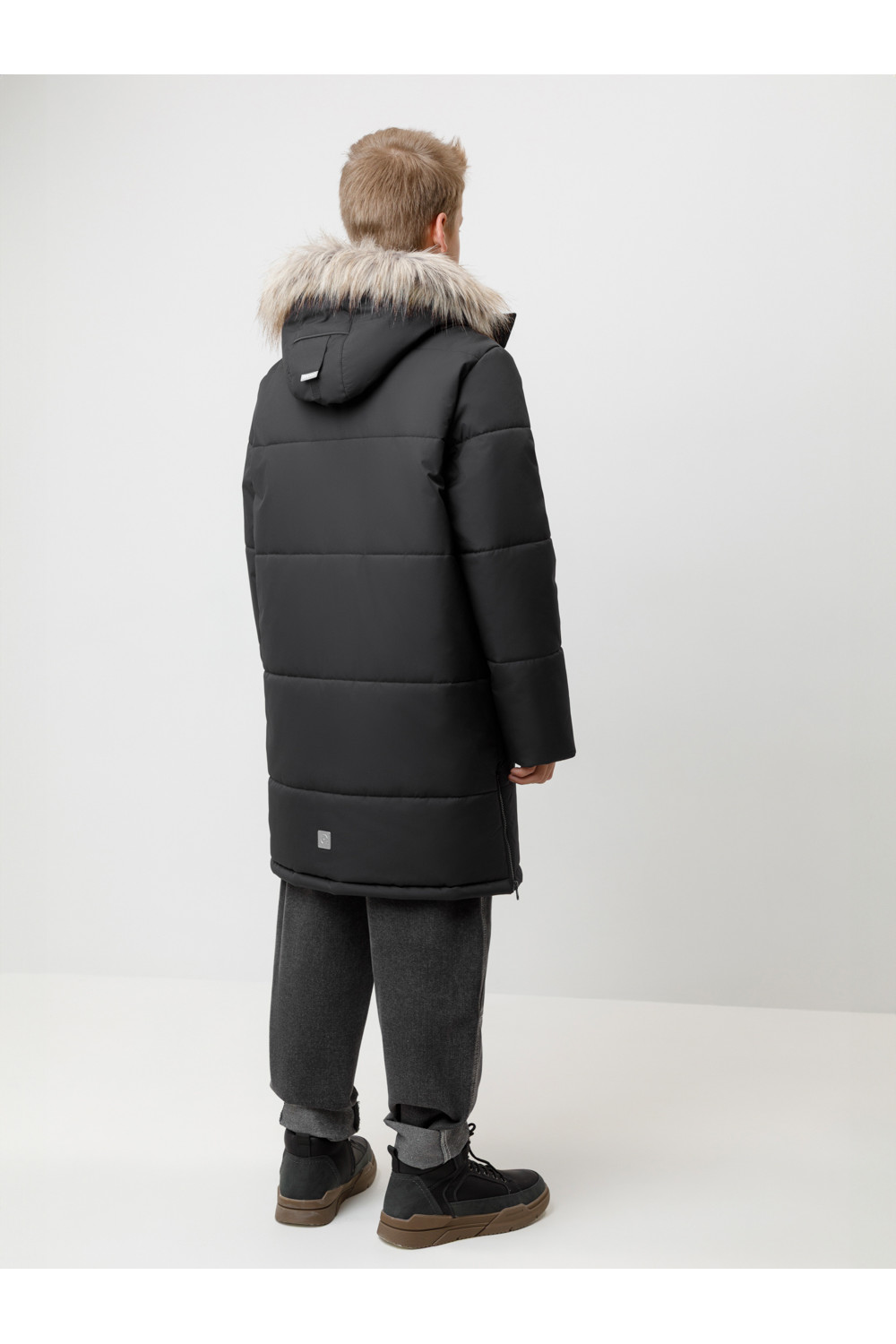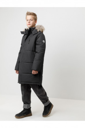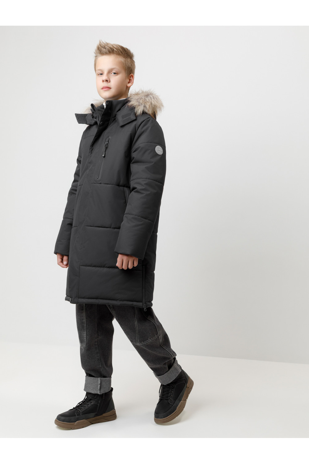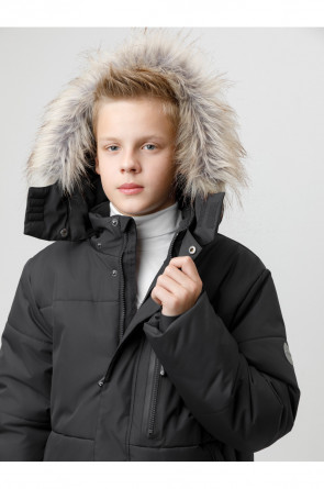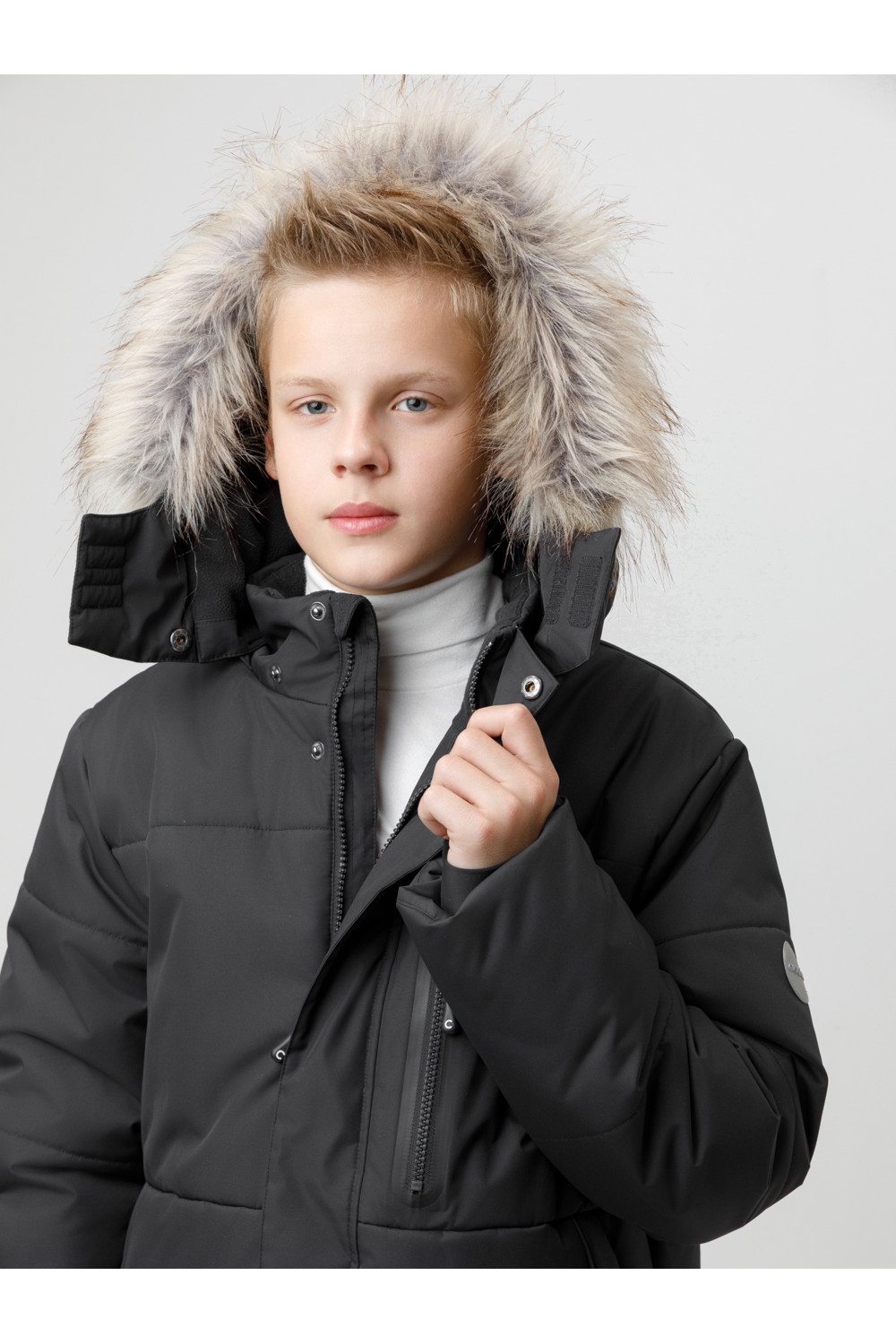 Зимнее пальто для мальчика с утеплителем SEE®: 300 г/м2. Выполнено из мембранной ткани с дополнительной тефлоновой обработкой, которая предохраняет изделие от загрязнений и отталкивает влагу. Подклад выполнен из 100% полиэстера Tricot. Пальто застёгивается на молнию и внешнюю планку с кнопками. Съёмный капюшон имеет эластичную утяжку со стопперами и отстёгивающийся мех на молнии, регулируется по глубине с помощью липучки. На рукавах внутренние эластичные манжеты. По бокам два кармана на молниях и один карман на груди. Во всех изделиях верхнего ассортимента для безопасности ребёнка предусмотрены светоотражающие элементы.