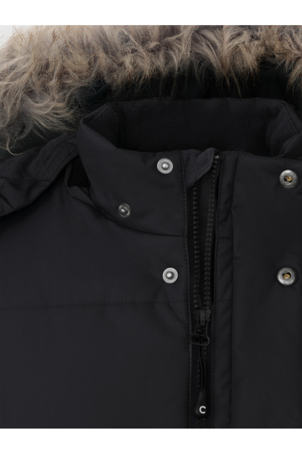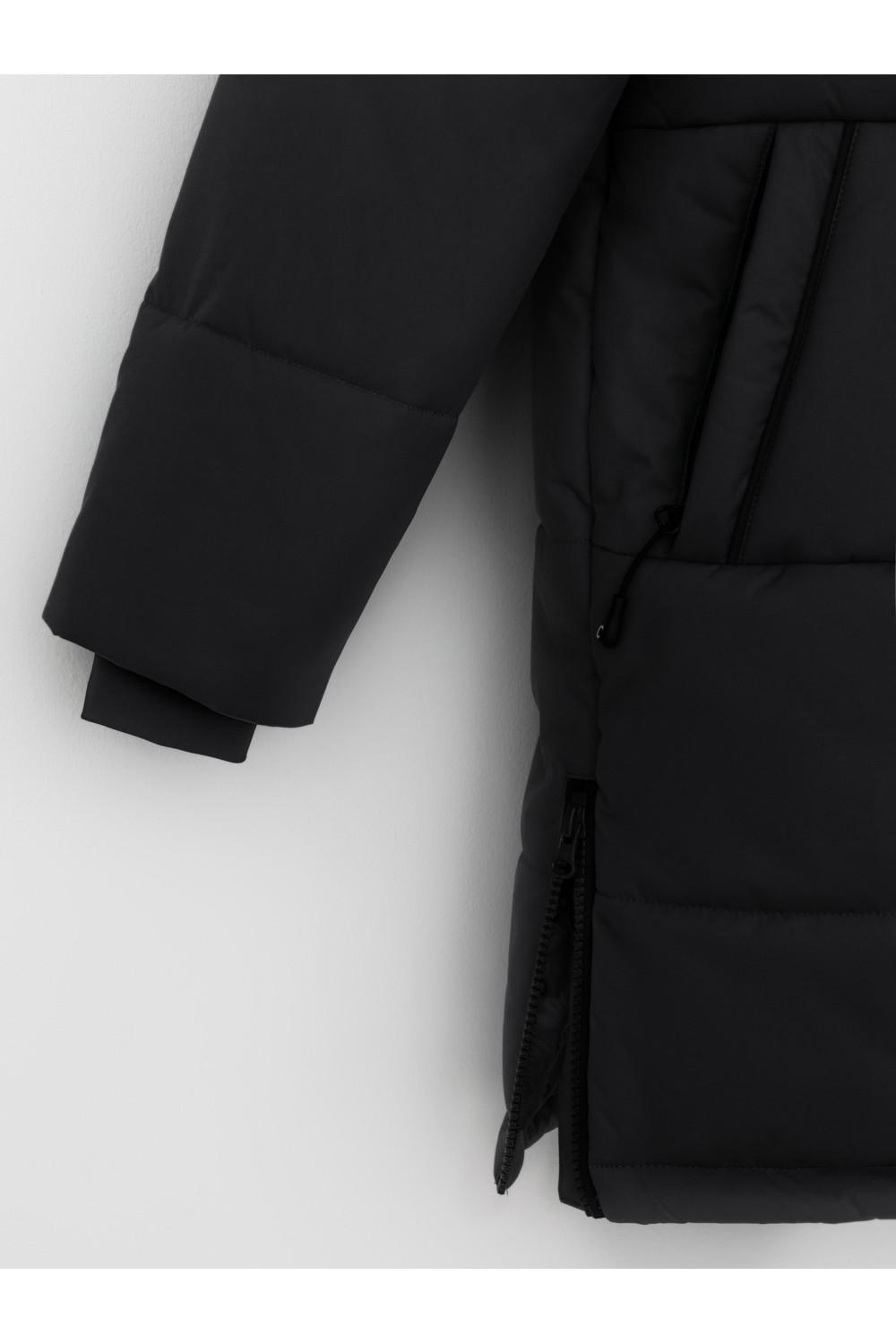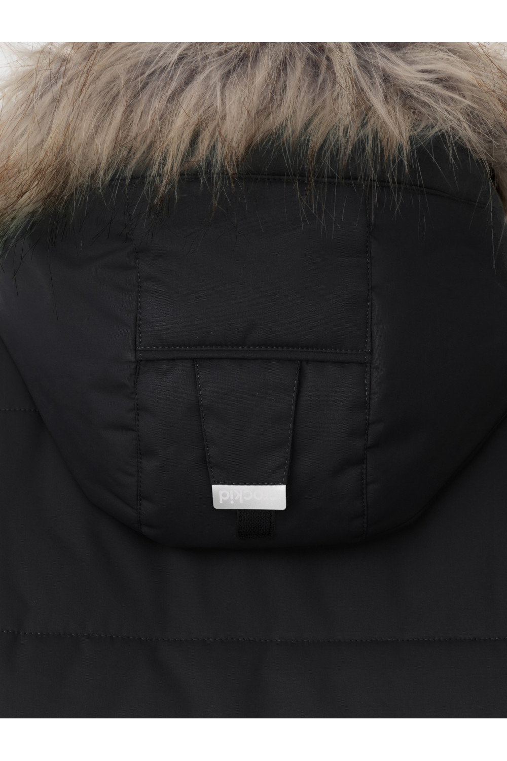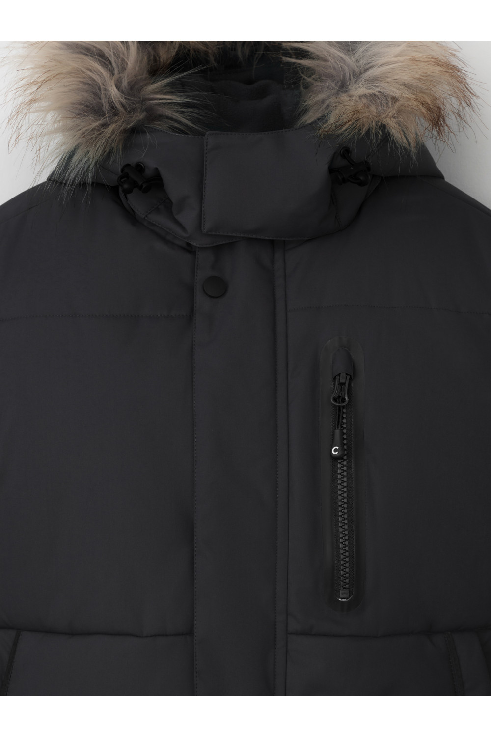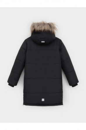 Зимнее пальто для мальчика с утеплителем SEE®: 300 г/м2. Выполнено из мембранной ткани с дополнительной тефлоновой обработкой, которая предохраняет изделие от загрязнений и отталкивает влагу. Подклад выполнен из 100% полиэстера Tricot. Пальто застёгивается на молнию и внешнюю планку с кнопками. Съёмный капюшон имеет эластичную утяжку со стопперами и отстёгивающийся мех на молнии, регулируется по глубине с помощью липучки. На рукавах внутренние эластичные манжеты. По бокам два кармана на молниях и один карман на груди. Во всех изделиях верхнего ассортимента для безопасности ребёнка предусмотрены светоотражающие элементы.