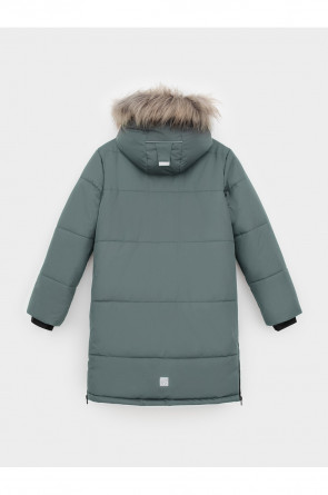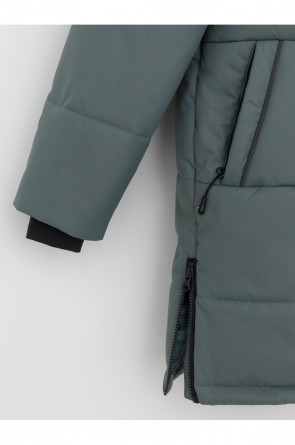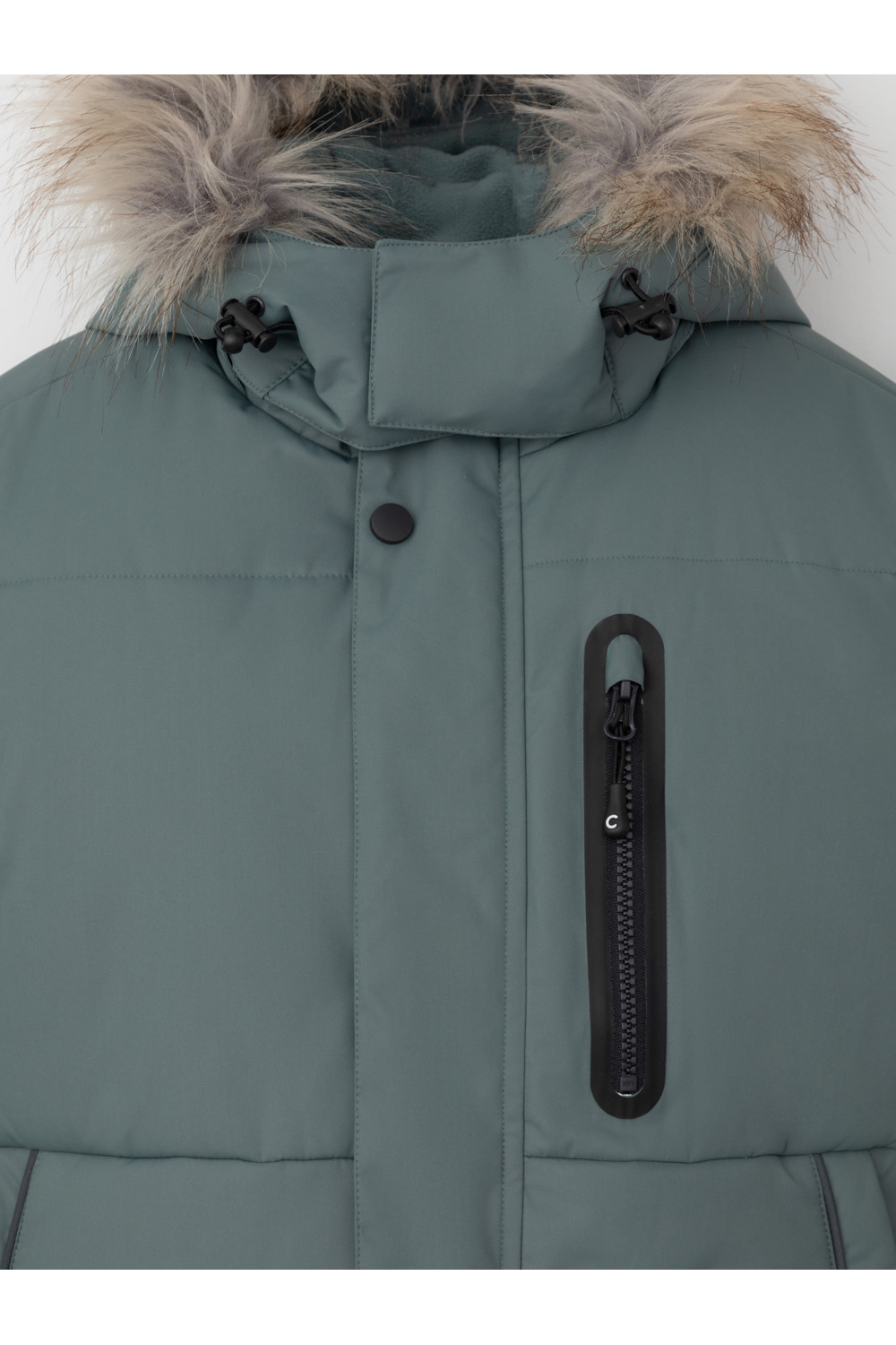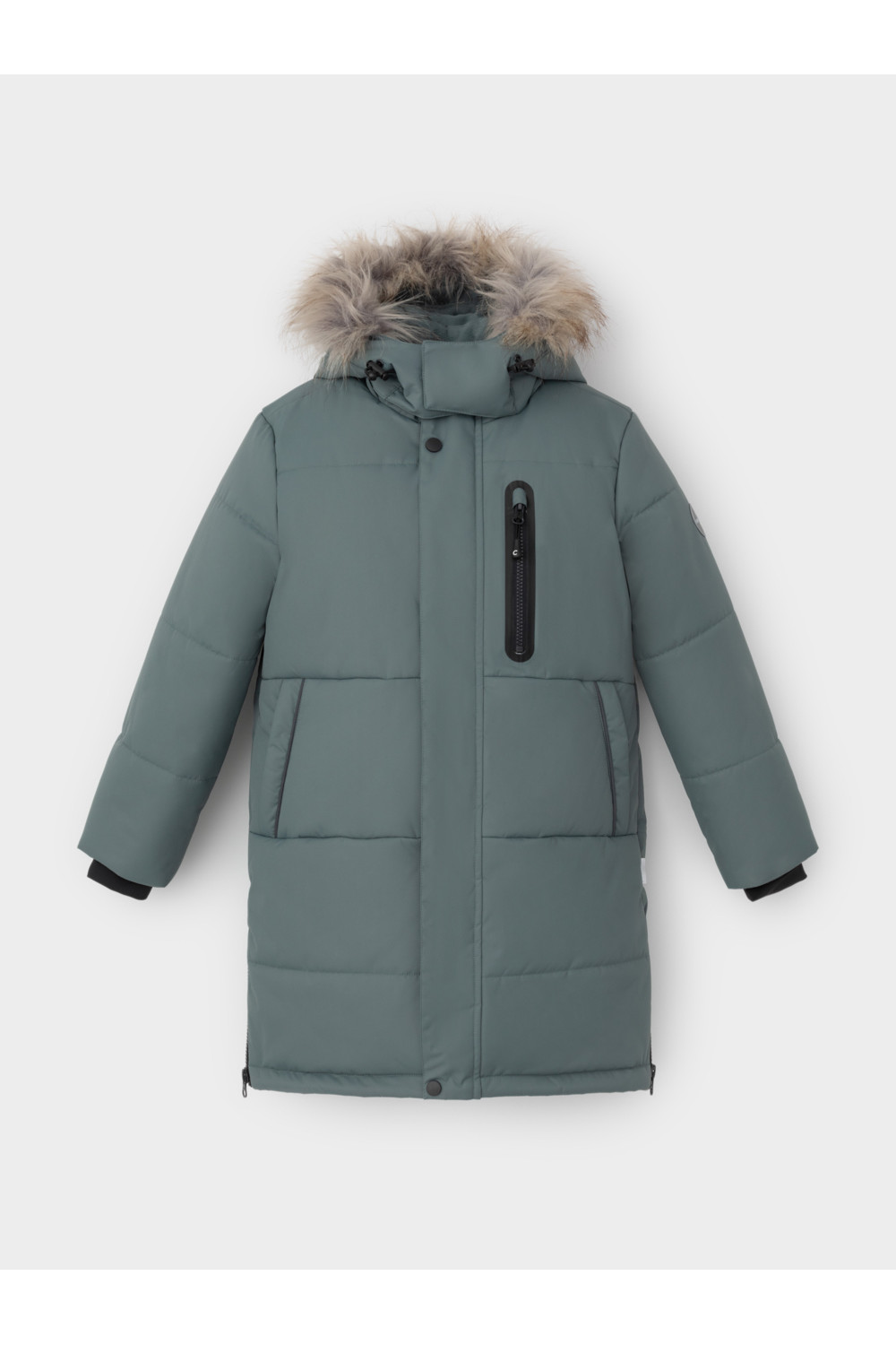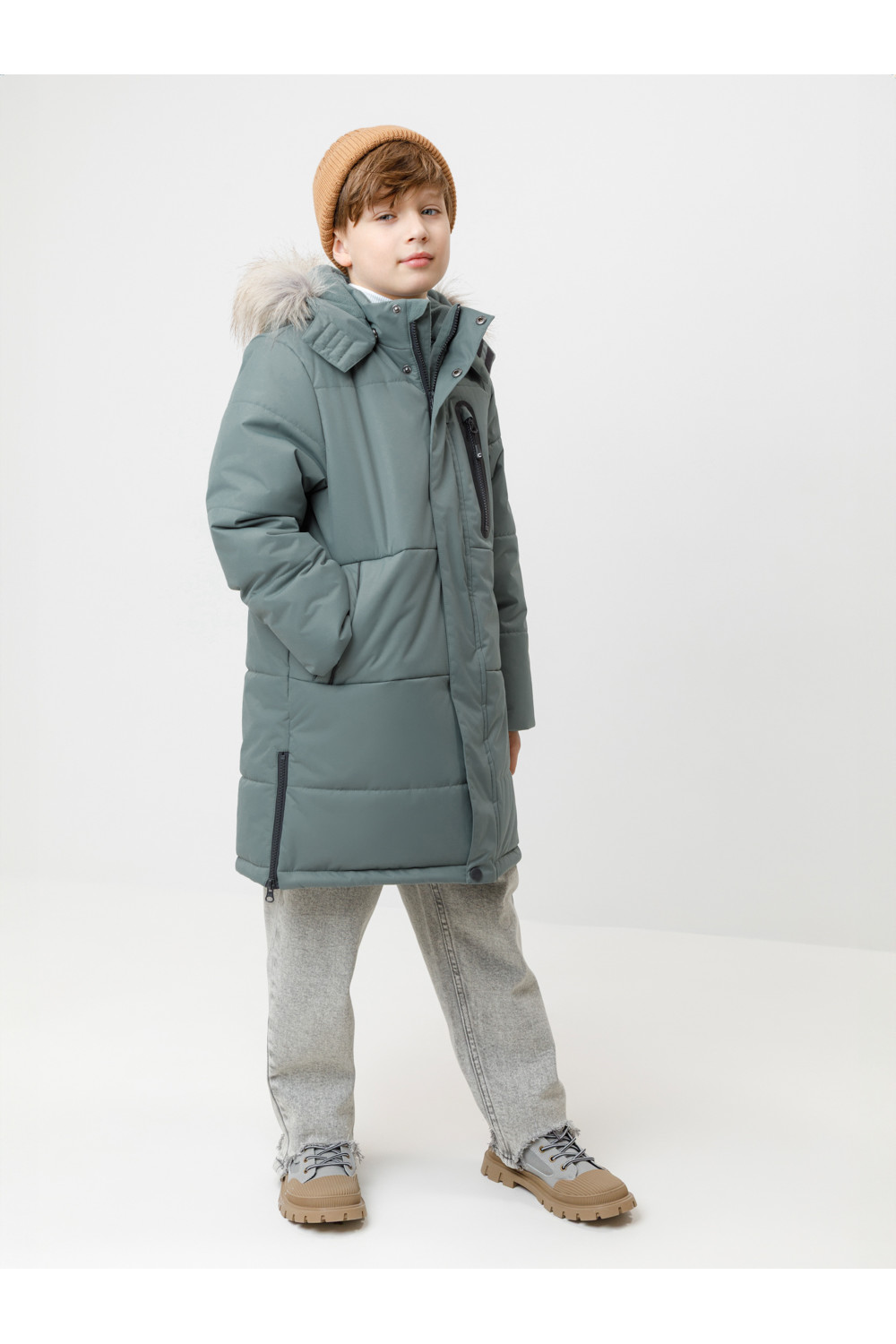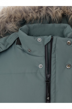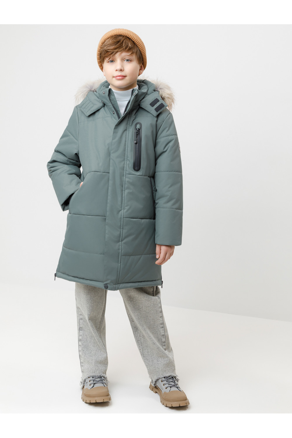 Зимнее пальто для мальчика с утеплителем SEE®: 300 г/м2. Выполнено из мембранной ткани с дополнительной тефлоновой обработкой, которая предохраняет изделие от загрязнений и отталкивает влагу. Подклад выполнен из 100% полиэстера Tricot. Пальто застёгивается на молнию и внешнюю планку с кнопками. Съёмный капюшон имеет эластичную утяжку со стопперами и отстёгивающийся мех на молнии, регулируется по глубине с помощью липучки. На рукавах внутренние эластичные манжеты. По бокам два кармана на молниях и один карман на груди. Во всех изделиях верхнего ассортимента для безопасности ребёнка предусмотрены светоотражающие элементы.