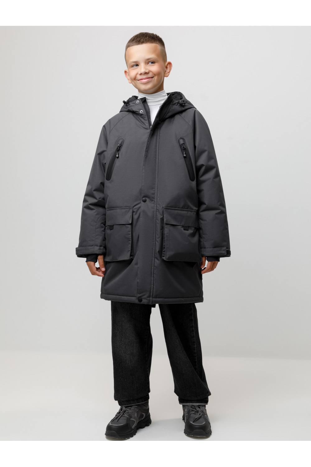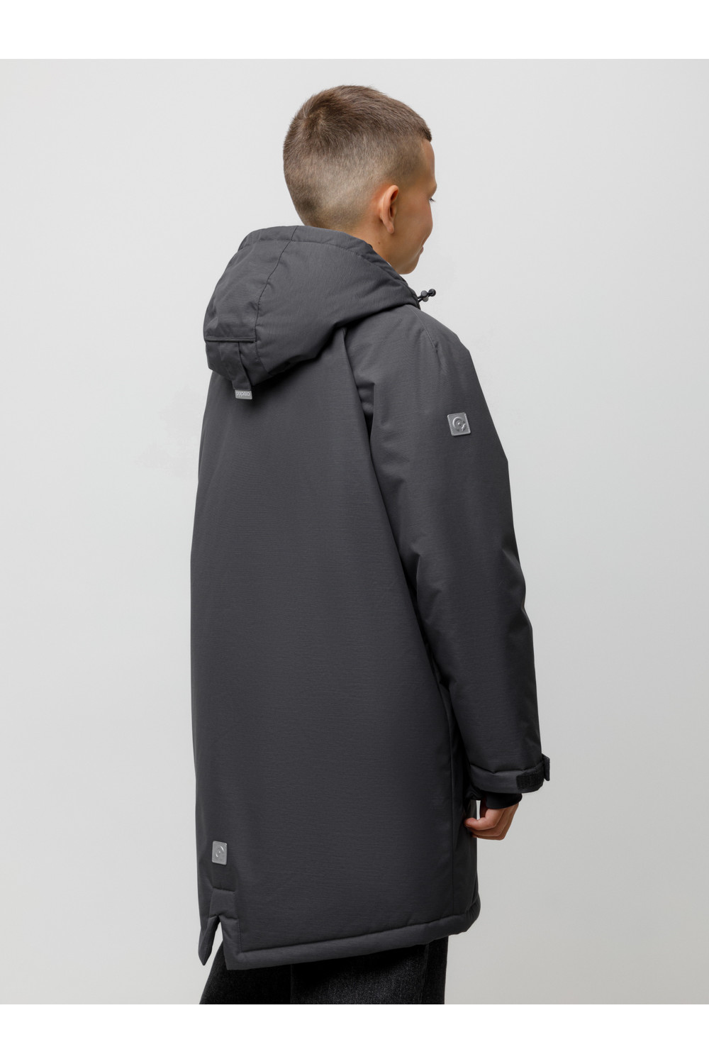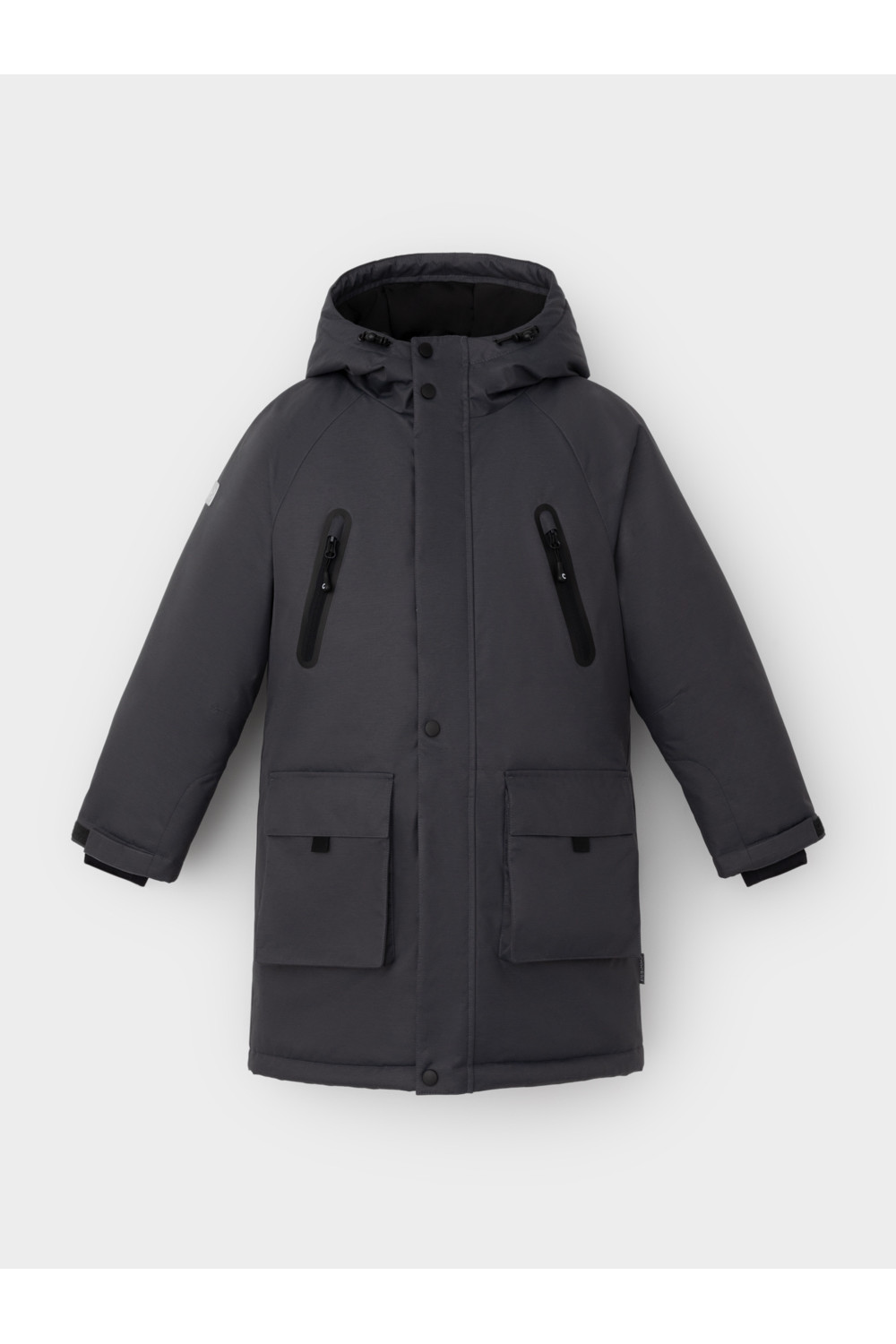 Зимняя парка для мальчика с утеплителем Fellex®: 250 г/м2. Выполнена из мембранной ткани с дополнительной тефлоновой обработкой, которая предохраняет изделие от загрязнений и отталкивает влагу. Подклад выполнен из 100% полиэстера Tricot. Парка застёгивается на молнию и внешнюю планку с кнопками, предусмотрена защита подбородка. Вшитый капюшон затягивается на эластичную утяжку со стопперами и на шнур. На рукавах внутренние эластичные манжеты, ширина регулируется липучками. Два накладных кармана с клапанами по бокам и два кармана на груди. По талии эластичная утяжка со стопперами. Во всех изделиях верхнего ассортимента для безопасности ребёнка предусмотрены светоотражающие элементы.