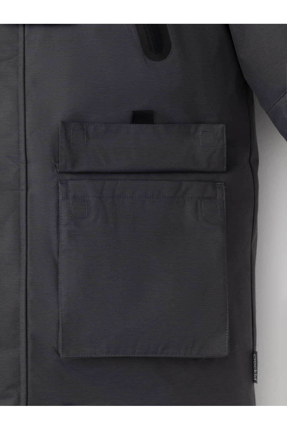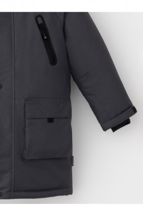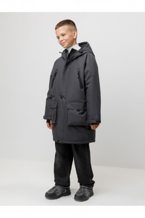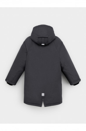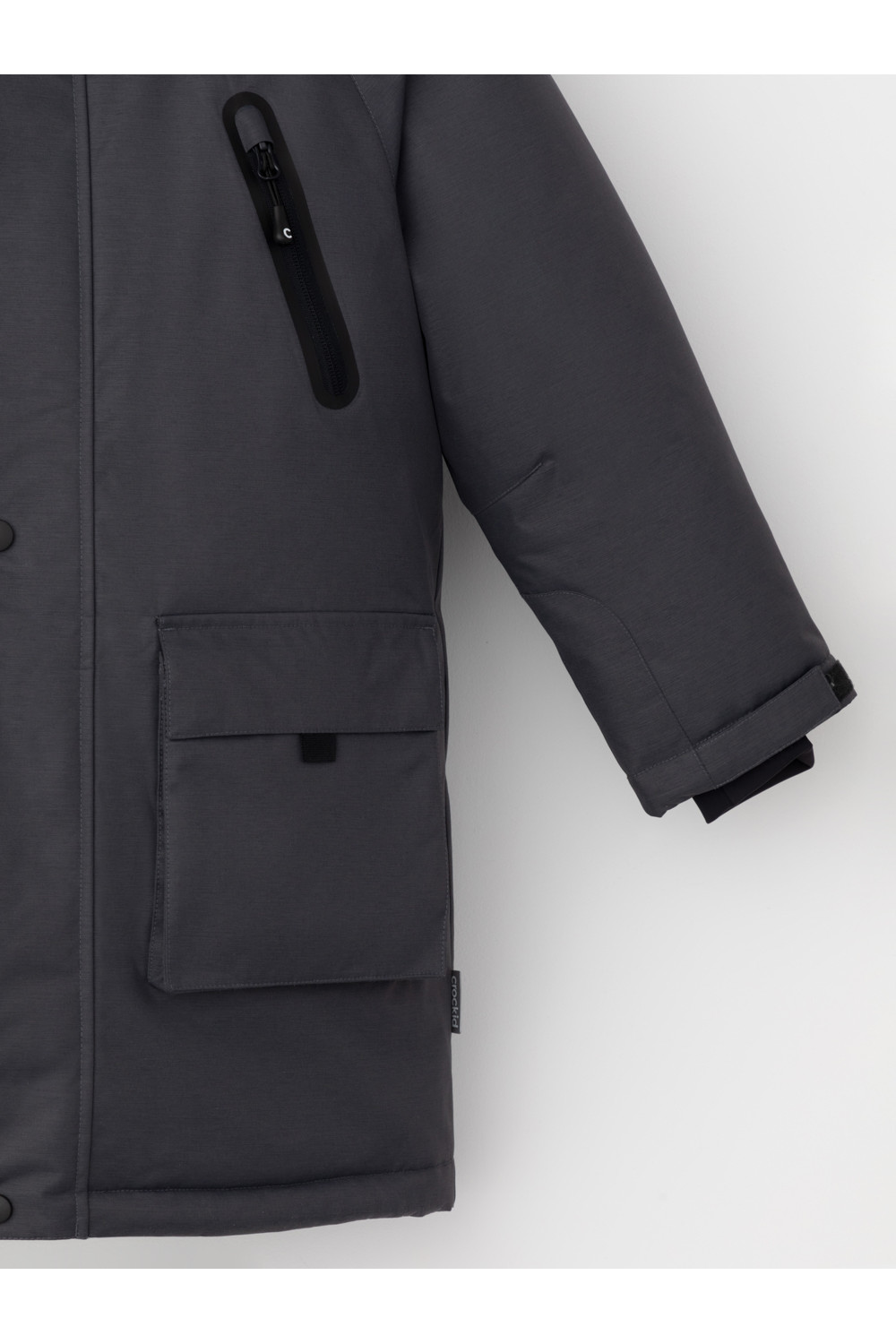 Зимняя парка для мальчика с утеплителем Fellex®: 250 г/м2. Выполнена из мембранной ткани с дополнительной тефлоновой обработкой, которая предохраняет изделие от загрязнений и отталкивает влагу. Подклад выполнен из 100% полиэстера Tricot. Парка застёгивается на молнию и внешнюю планку с кнопками, предусмотрена защита подбородка. Вшитый капюшон затягивается на эластичную утяжку со стопперами и на шнур. На рукавах внутренние эластичные манжеты, ширина регулируется липучками. Два накладных кармана с клапанами по бокам и два кармана на груди. По талии эластичная утяжка со стопперами. Во всех изделиях верхнего ассортимента для безопасности ребёнка предусмотрены светоотражающие элементы.