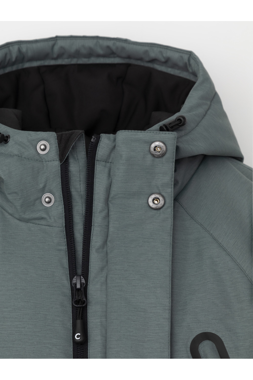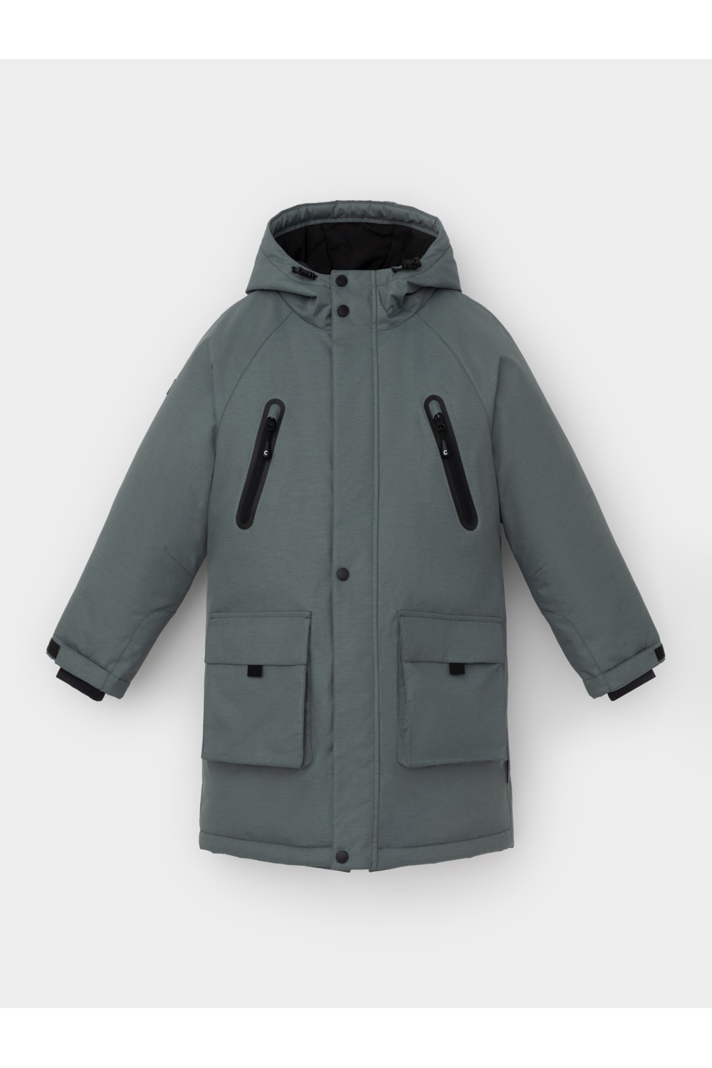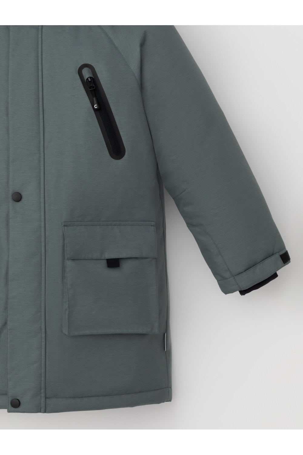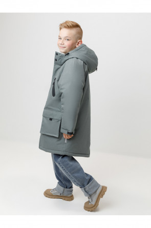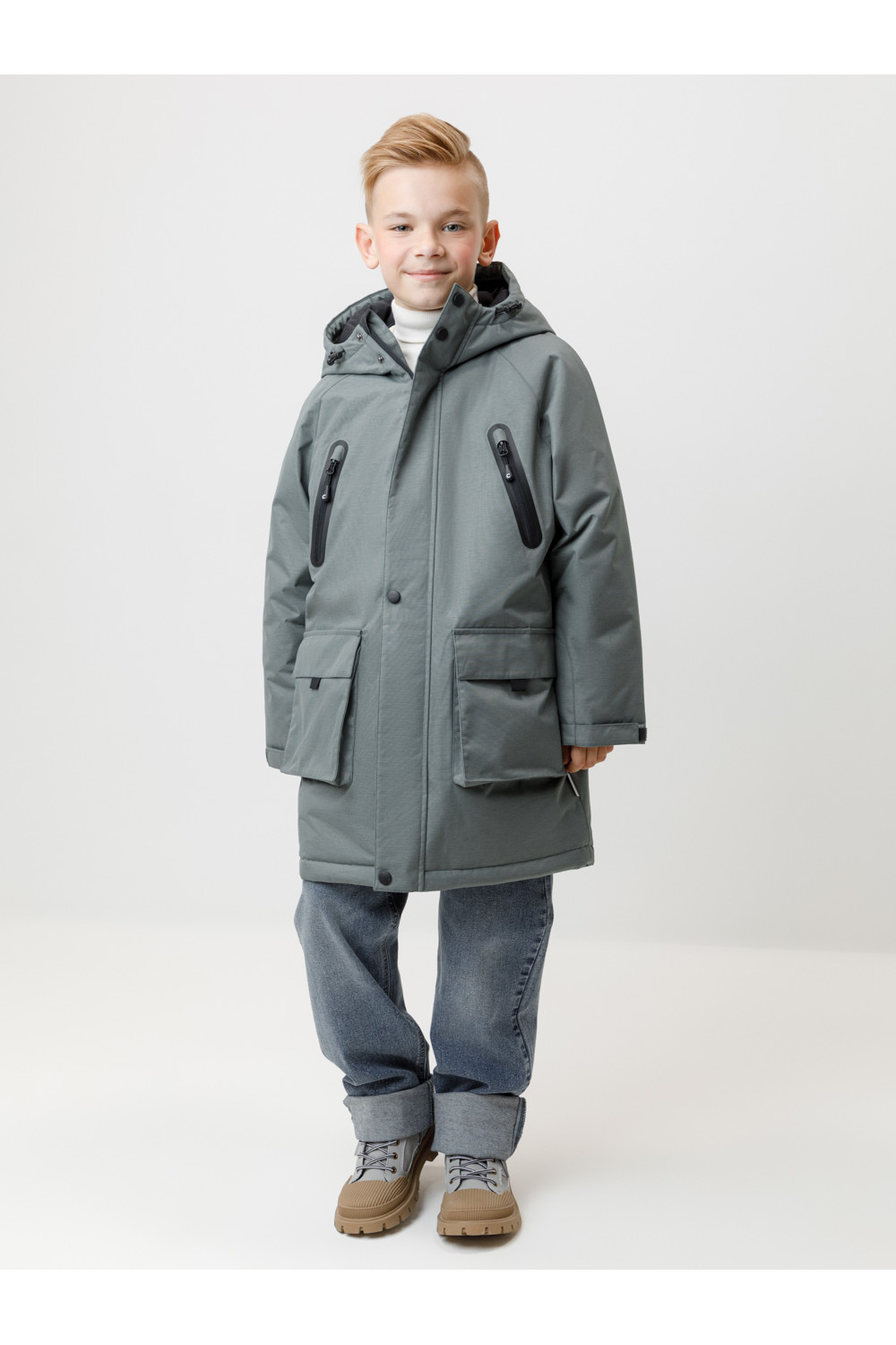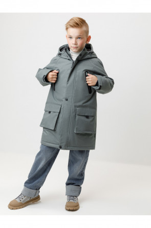 Зимняя парка для мальчика с утеплителем Fellex®: 250 г/м2. Выполнена из мембранной ткани с дополнительной тефлоновой обработкой, которая предохраняет изделие от загрязнений и отталкивает влагу. Подклад выполнен из 100% полиэстера Tricot. Парка застёгивается на молнию и внешнюю планку с кнопками, предусмотрена защита подбородка. Вшитый капюшон затягивается на эластичную утяжку со стопперами и на шнур. На рукавах внутренние эластичные манжеты, ширина регулируется липучками. Два накладных кармана с клапанами по бокам и два кармана на груди. По талии эластичная утяжка со стопперами. Во всех изделиях верхнего ассортимента для безопасности ребёнка предусмотрены светоотражающие элементы.