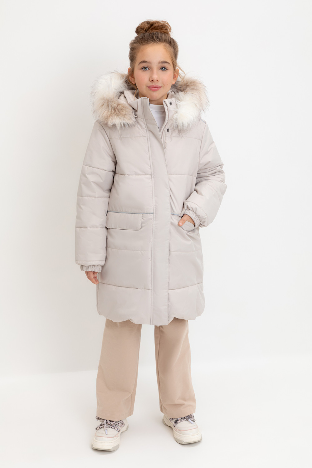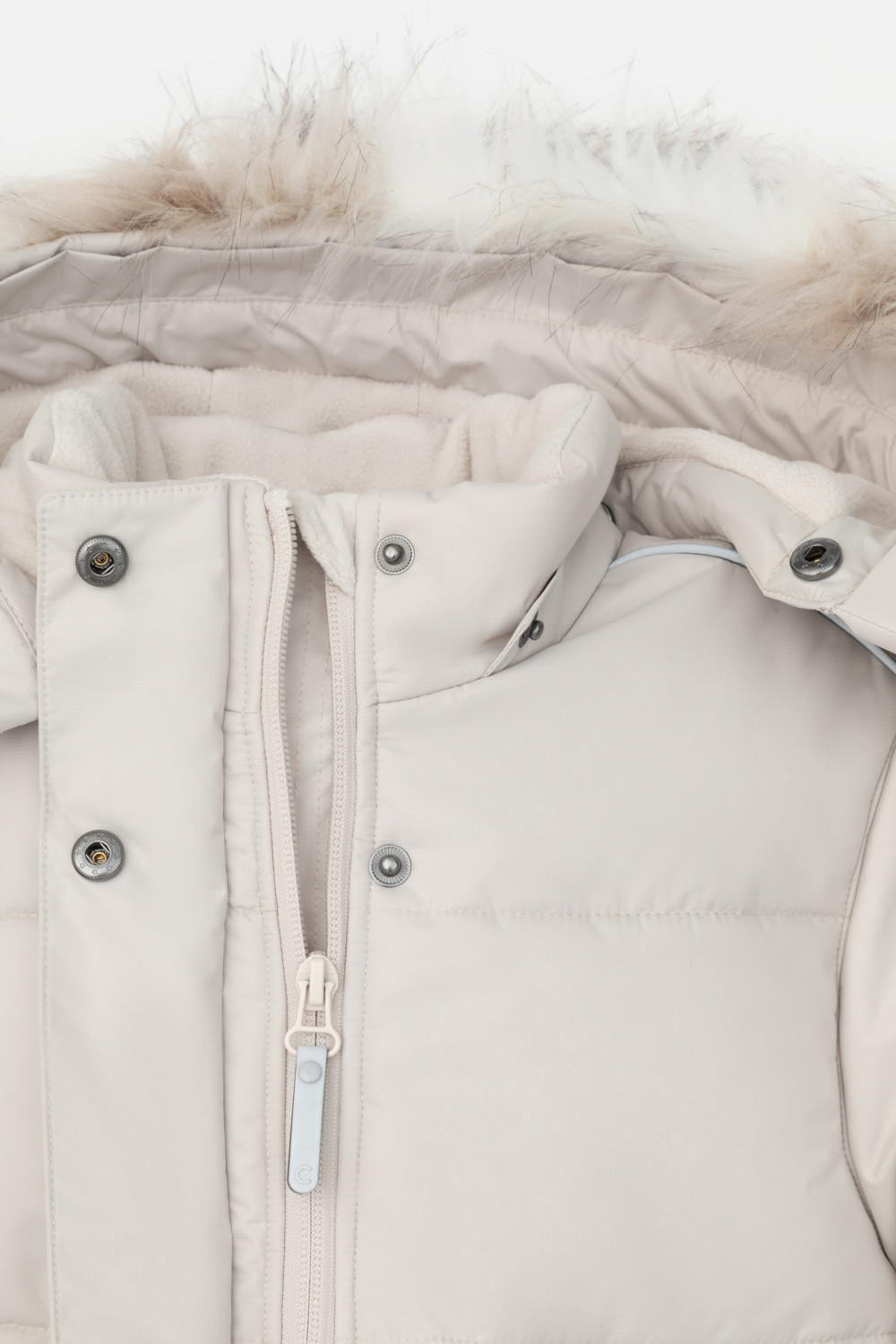• Отстегивающаяся меховая опушка из искусственного меха на молнии
