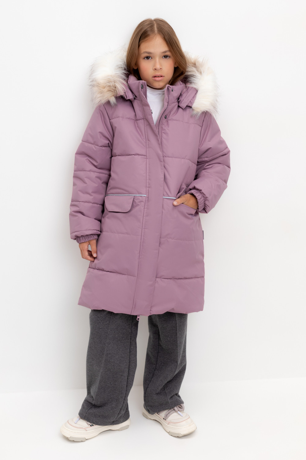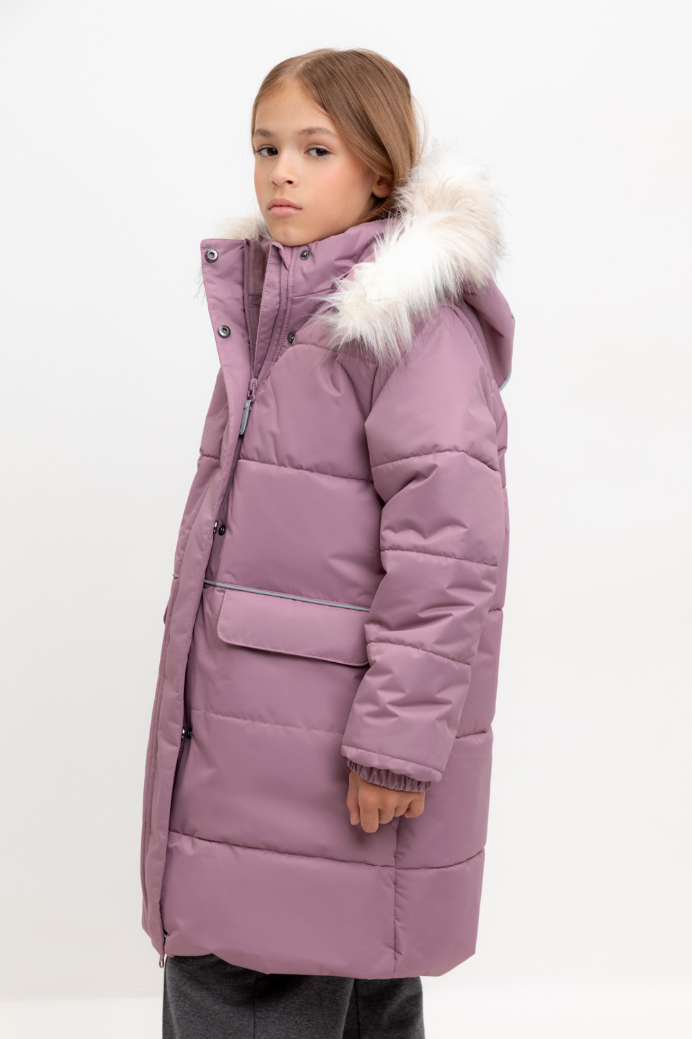 • Отстегивающаяся меховая опушка из искусственного меха на молнии