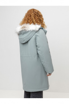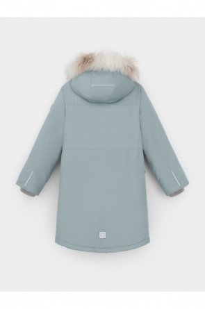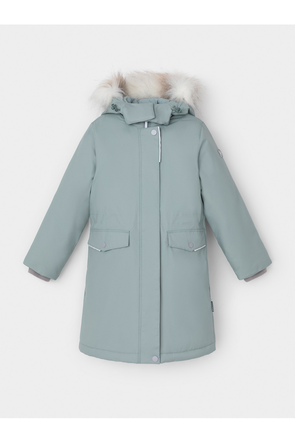 Зимнее пальто для девочки с утеплителем SEE®: 250 г/м2. Выполнено из мембранной ткани с дополнительной тефлоновой обработкой, которая предохраняет изделие от загрязнений и отталкивает влагу. Подклад выполнен из 100% полиэстера Tricot. Пальто застёгивается на молнию, предусмотрена защита подбородка. Съёмный капюшон на кнопках и липучках имеет отстёгивающийся искусственный мех. На рукавах мягкие манжеты. По бокам два кармана с клапанами, внутри карман на молнии. По талии эластичная утяжка со стопперами для регулировки ширины пальто. Во всех изделиях верхнего ассортимента для безопасности ребёнка предусмотрены светоотражающие элементы.