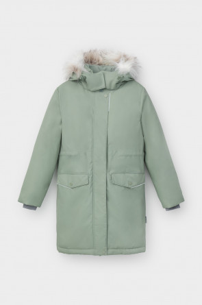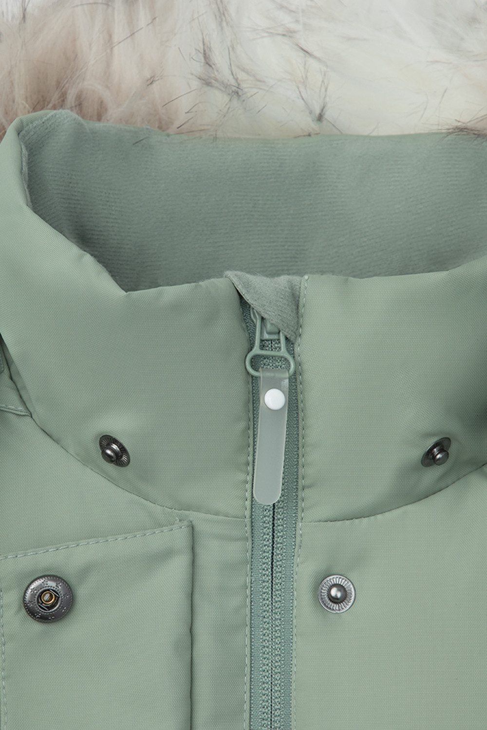 • Съемный капюшон на пилучках с отстегивающимся искусственным мехом