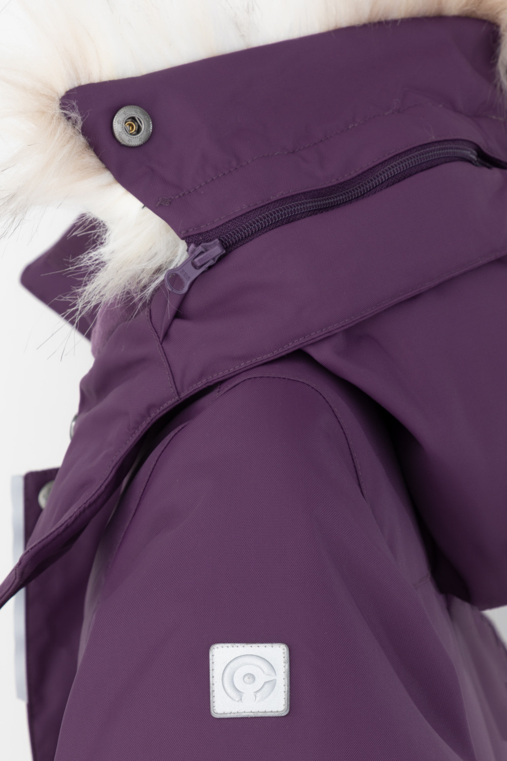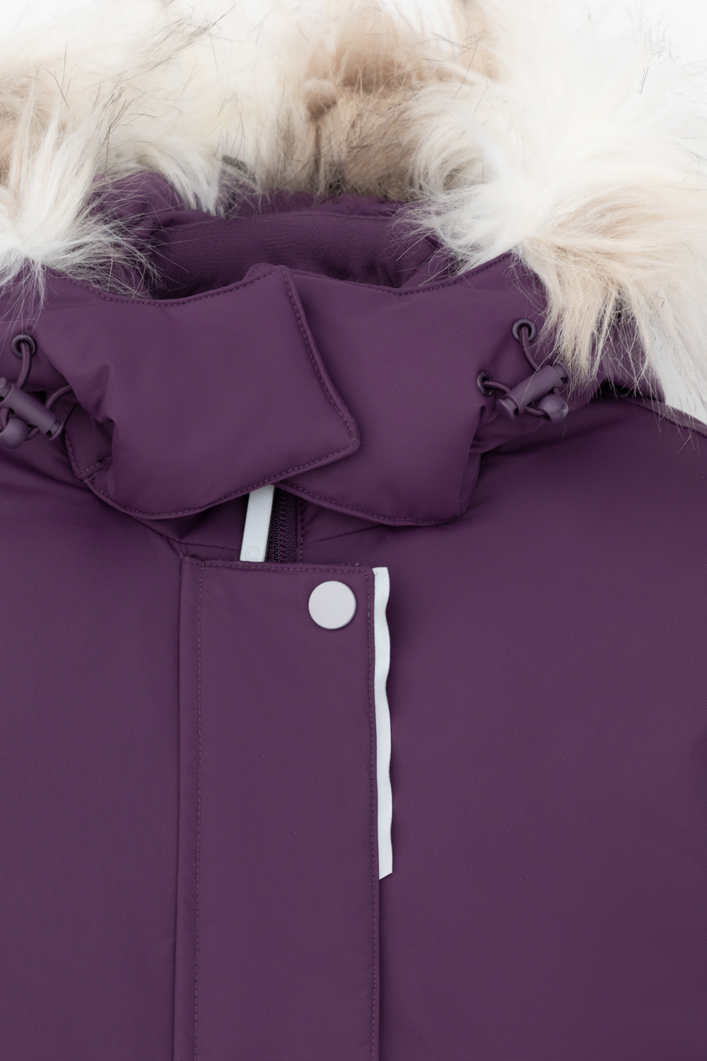 • Съемный капюшон на кнопках и липучках с отстегивающимся искусственным мехом