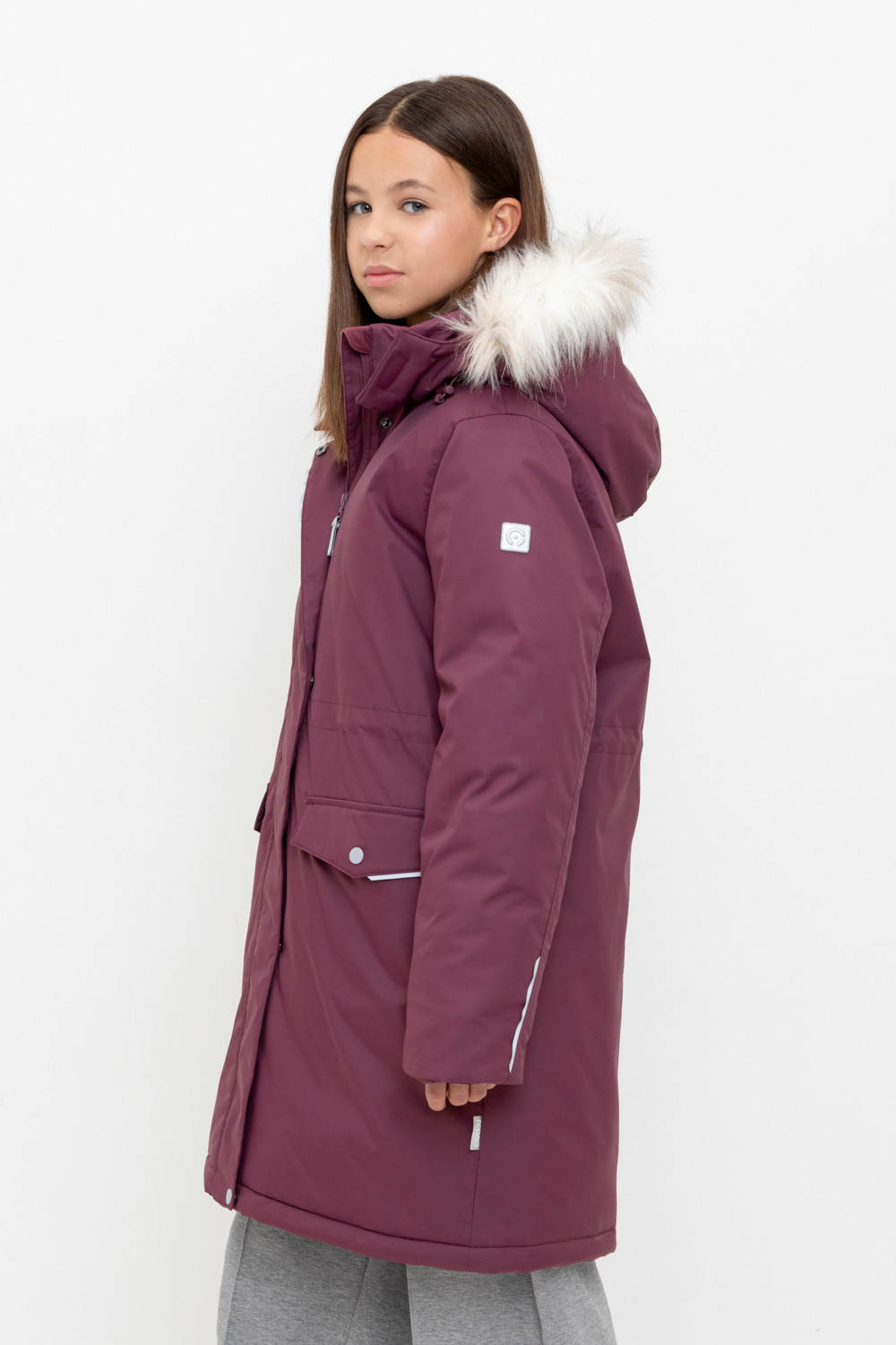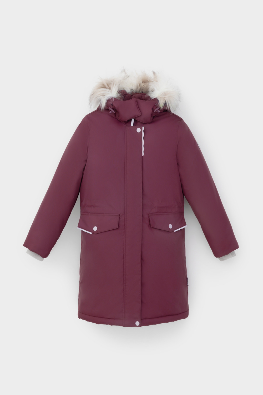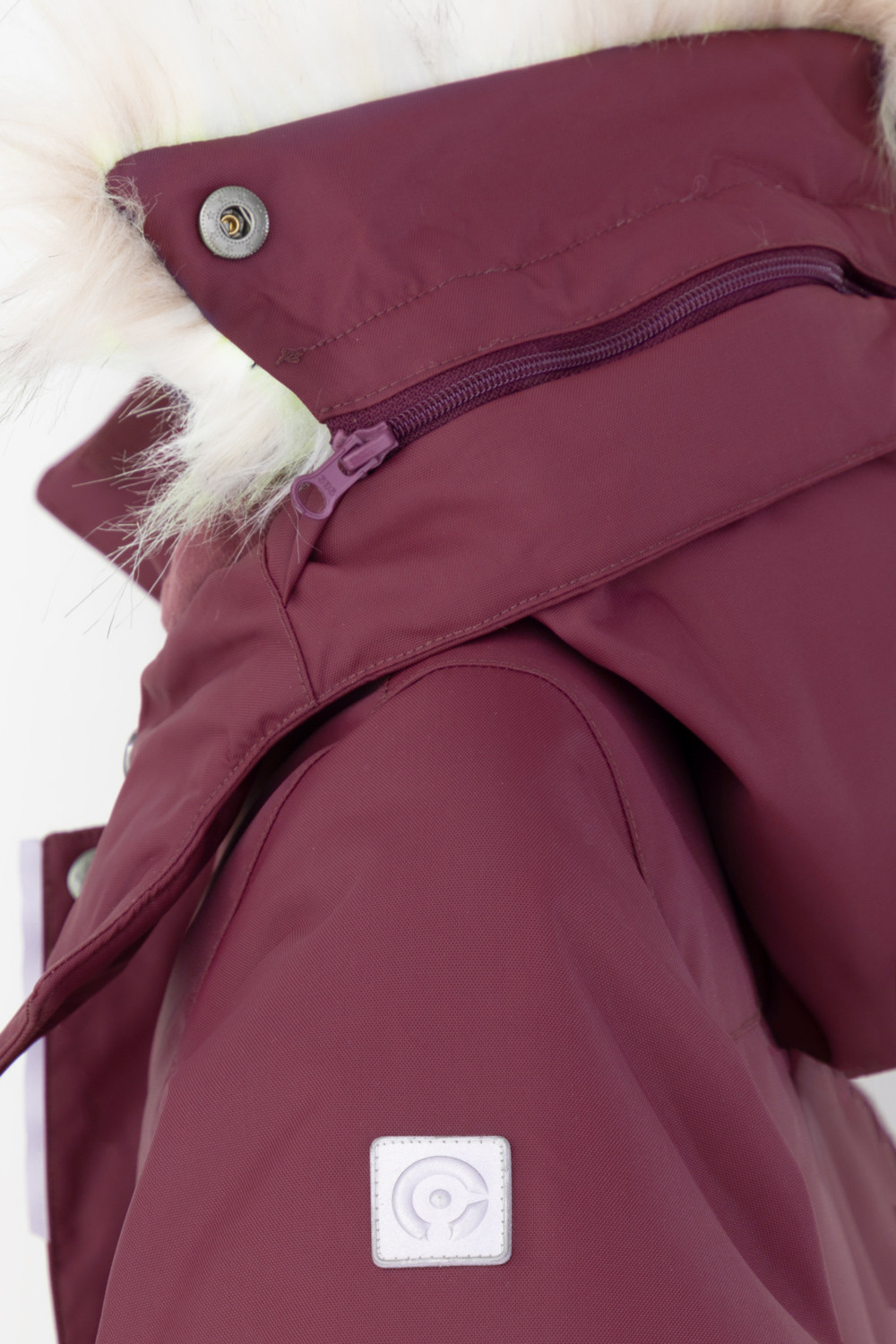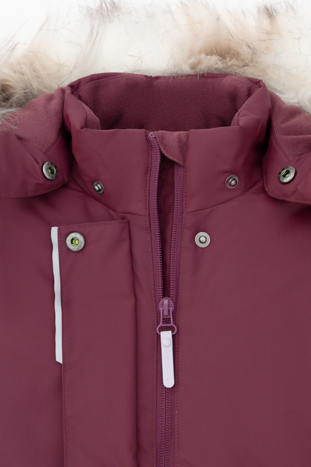 • Съемный капюшон на кнопках и липучках с отстегивающимся искусственным мехом