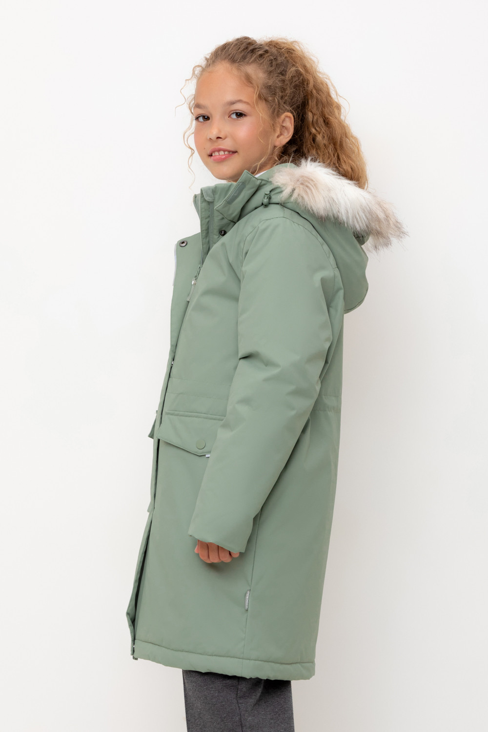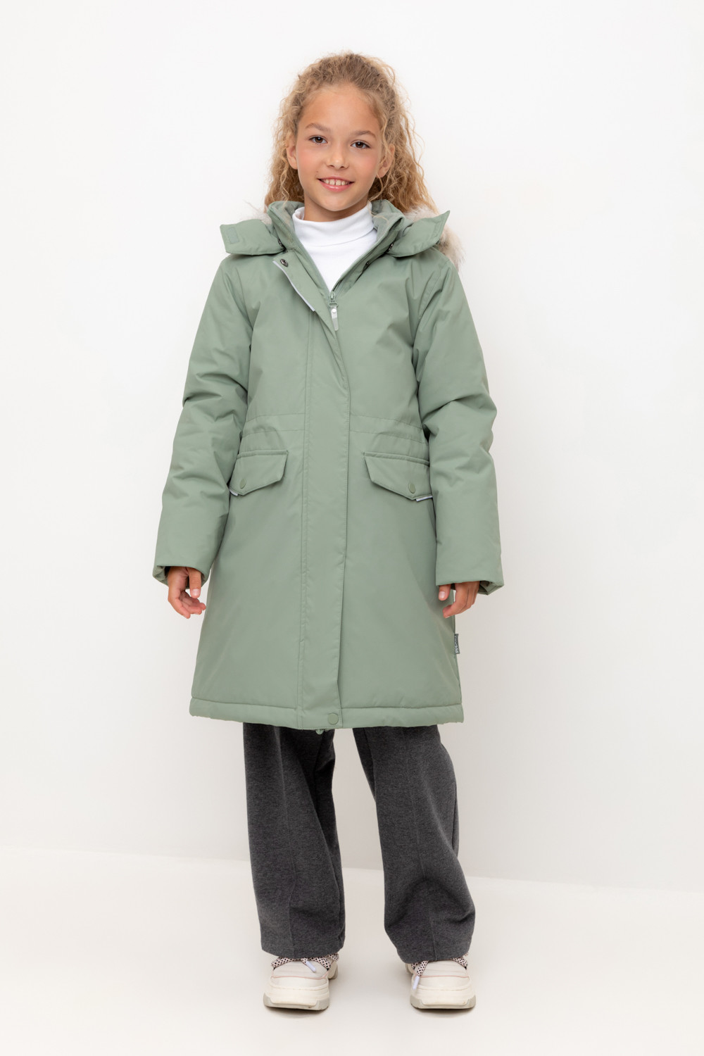 • Съемный капюшон на кнопках и липучках с отстегивающимся искусственным мехом