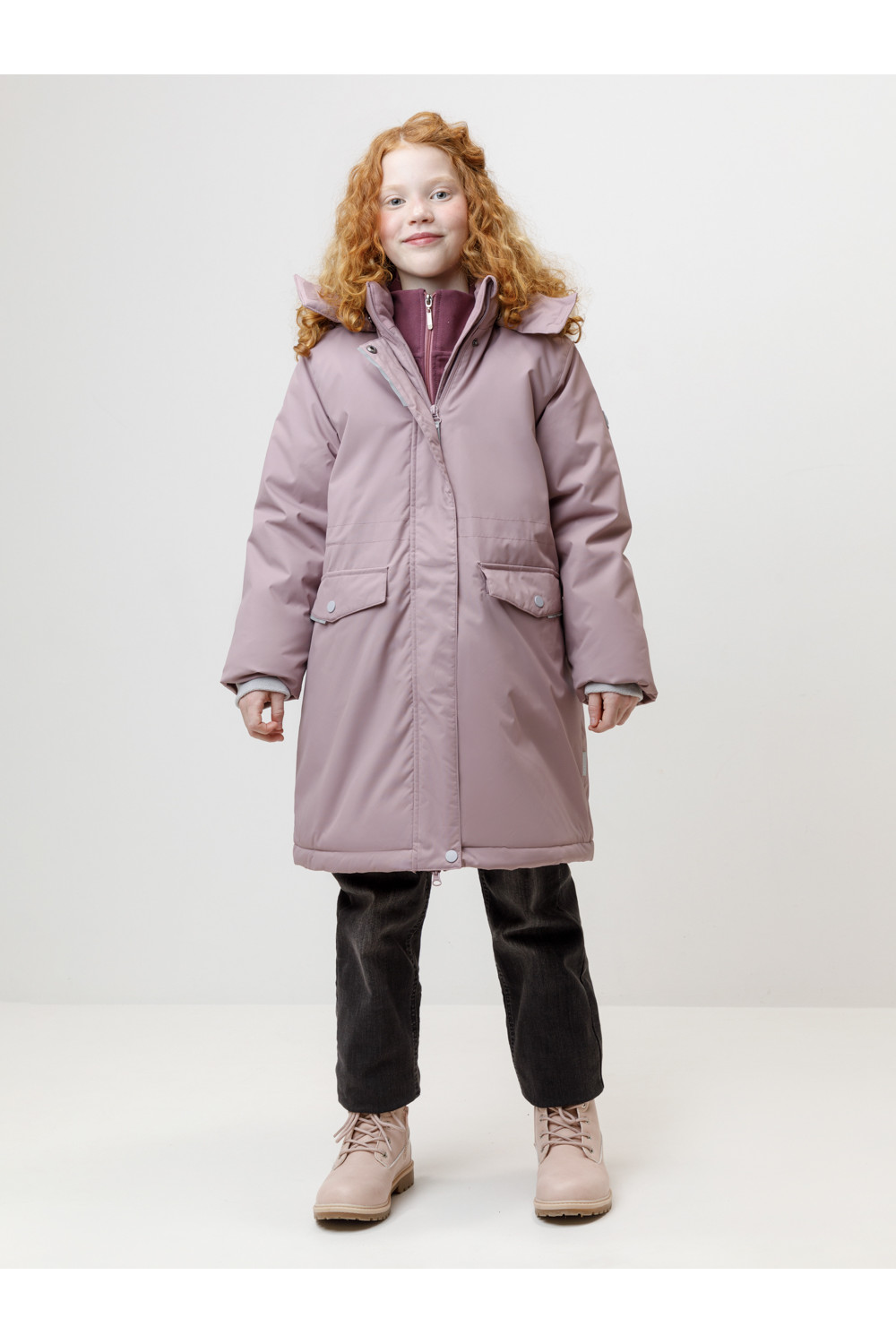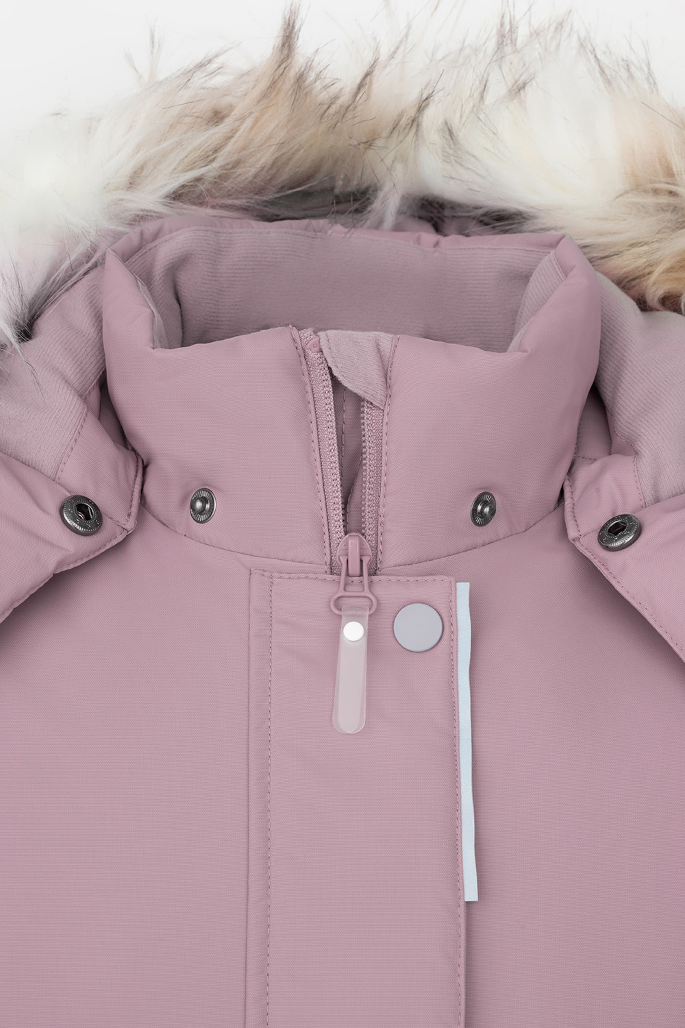 • Съемный капюшон на кнопках и липучках с отстегивающимся искусственным мехом