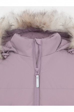 Зимнее пальто для девочки с утеплителем SEE®: 250 г/м2 и с подстёжкой из натурального гусиного пуха (70%) и пера (30%). Выполнено из мембранной ткани с дополнительной тефлоновой обработкой, которая предохраняет изделие от загрязнений и отталкивает влагу. Подклад выполнен из 100% полиэстера. Пальто застёгивается на молнию, предусмотрена защита подбородка. Несъёмный капюшон имеет эластичные утяжки и отстёгивающийся искусственный мех. По бокам два кармана на молнии. В рукавах мягкие внутренние манжеты. Подстёжка присоединяется к внешнему пальто, также возможно носить её отдельно как лёгкий пуховик. Во всех изделиях верхнего ассортимента для безопасности ребёнка предусмотрены светоотражающие элементы.