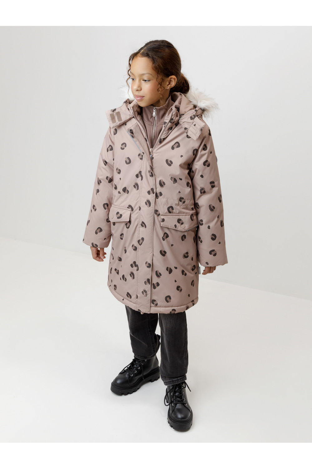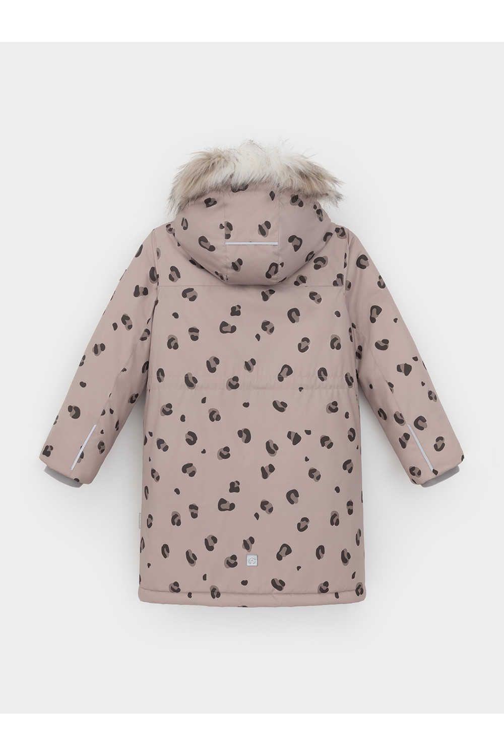 Зимнее пальто для девочки с утеплителем SEE®: 300 г/м2. Выполнено из мембранной ткани с дополнительной тефлоновой обработкой, которая предохраняет изделие от загрязнений и отталкивает влагу. Подклад выполнен из 100% полиэстера Tricot. Пальто застёгивается на молнию, предусмотрена защита подбородка. Съёмный капюшон на кнопках и липучках имеет отстёгивающийся искусственный мех. На рукавах мягкие манжеты. По бокам два кармана с клапанами, внутри карман на молнии. По талии эластичная утяжка со стопперами для регулировки ширины пальто. Во всех изделиях верхнего ассортимента для безопасности ребёнка предусмотрены светоотражающие элементы.