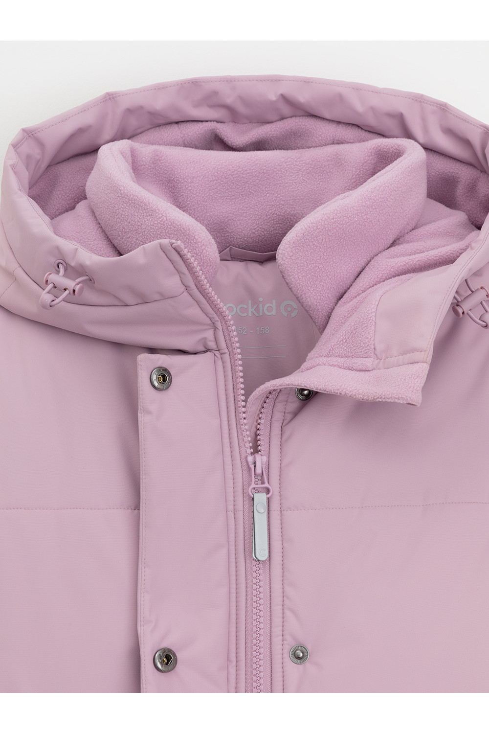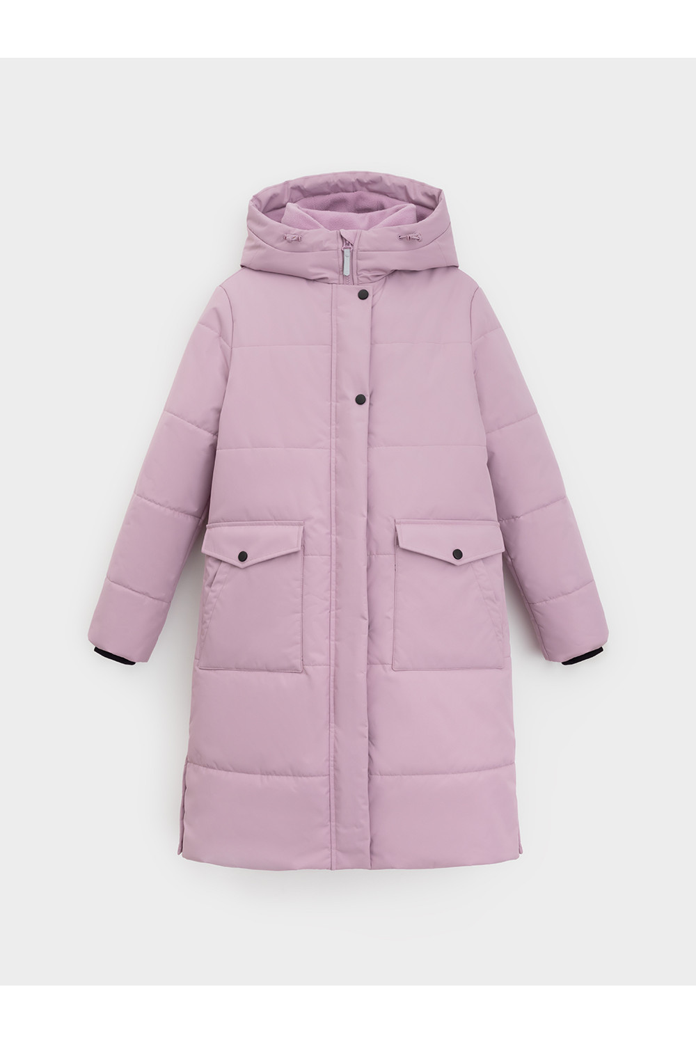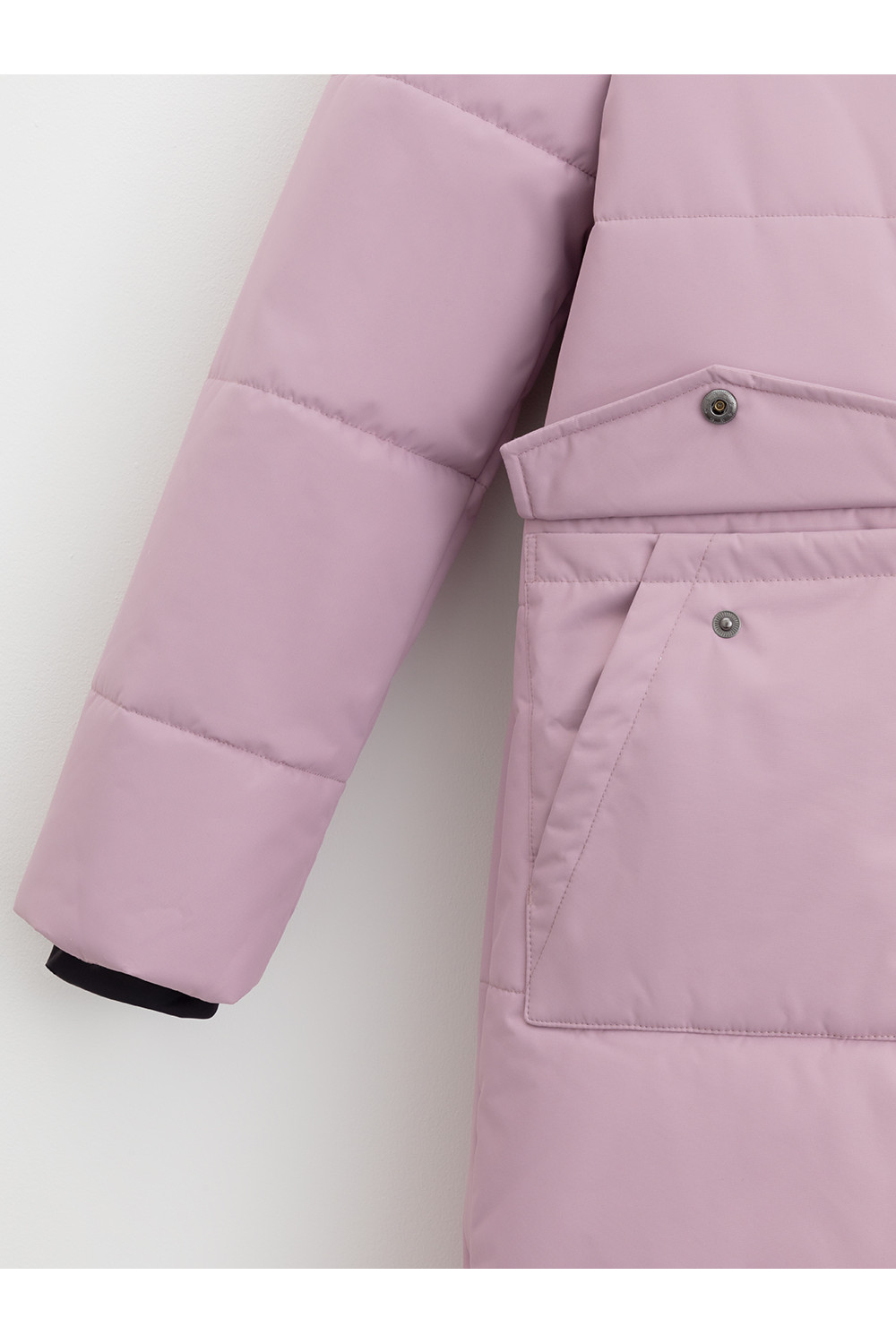 Зимнее пальто для девочки с утеплителем SEE®: 300 г/м2. Выполнено из мембранной ткани с дополнительной тефлоновой обработкой, которая предохраняет изделие от загрязнений и отталкивает влагу. Подклад выполнен из 100% полиэстера. Пальто застёгивается на молнию, предусмотрена защита подбородка. Вшитый капюшон имеет эластичную утяжку со стопперами по бокам. На рукавах мягкие манжеты. По бокам два кармана с клапанами, два кармана на груди и один внутренний на молнии. По талии эластичная утяжка со стопперами для регулировки ширины пальто. Во всех изделиях верхнего ассортимента для безопасности ребёнка предусмотрены светоотражающие элементы.