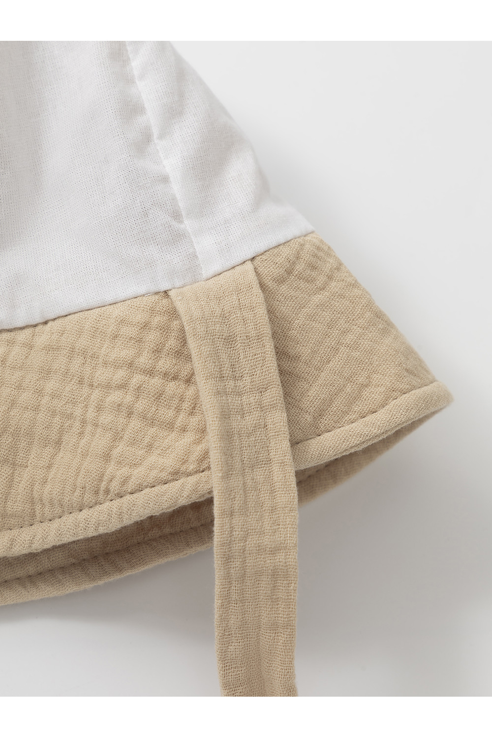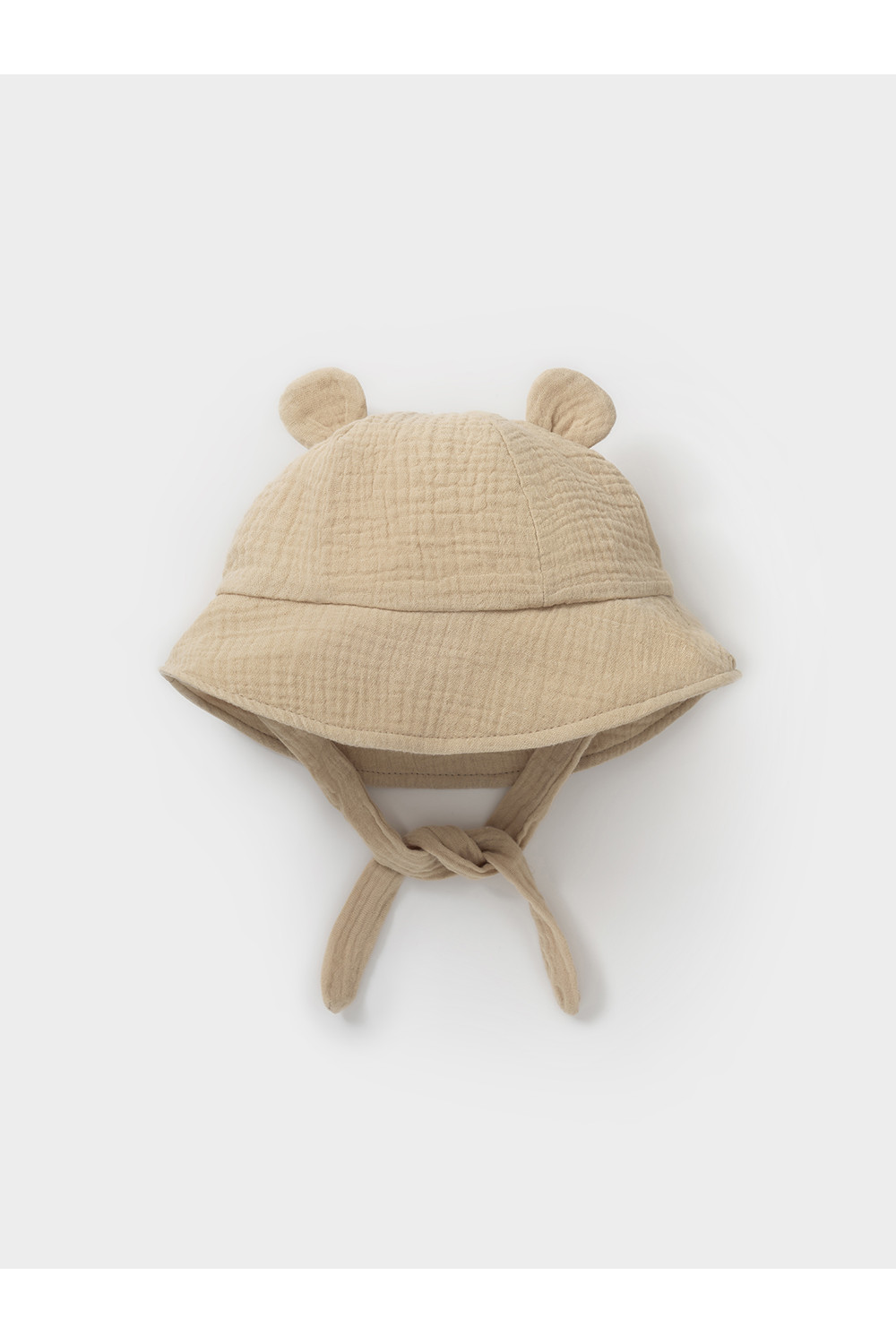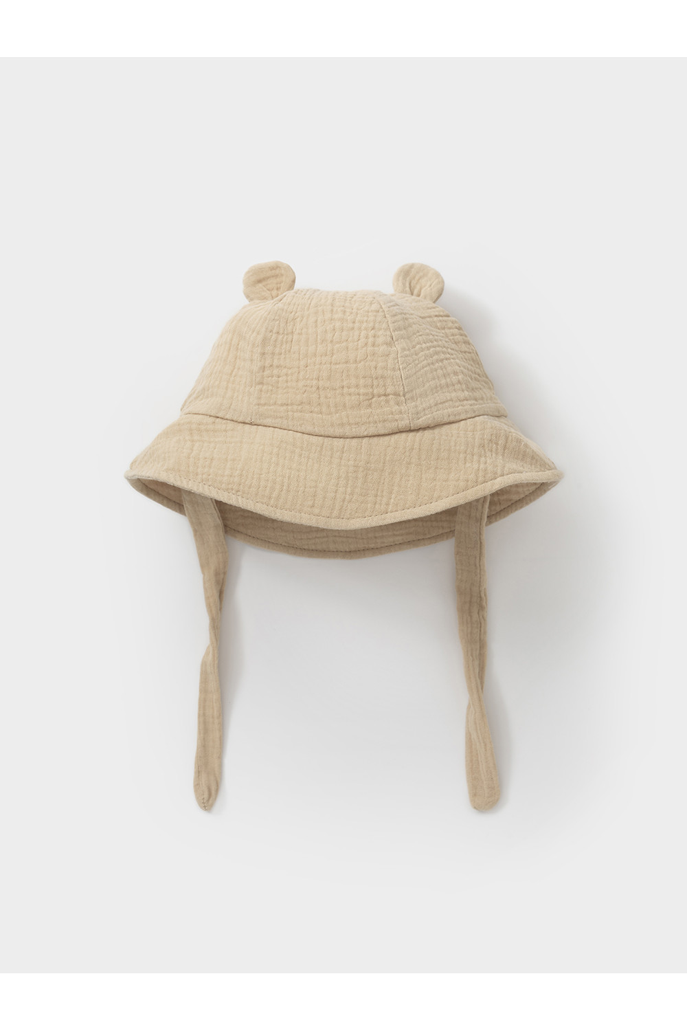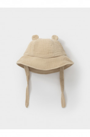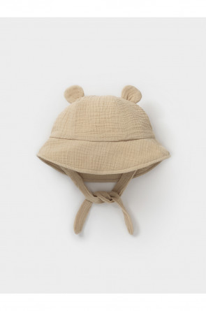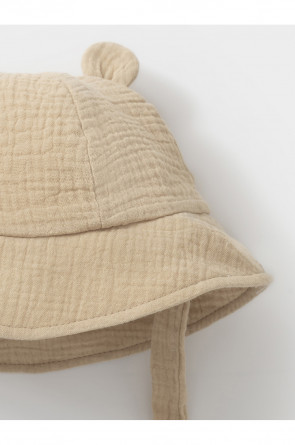 Лёгкая детская панама на завязках. Изготовлена из мягкого муслина. Дышащий материал из натурального хлопка хорошо пропускает воздух, а поля защищают голову, шею и глаза ребёнка от солнечных лучей и ультрафиолета. Украшена декоративными ушками. Изделие идеально подходит для жарких дней и прекрасно выдерживает многократные стирки, сохраняя при этом цвет, форму и фактуру жатости.