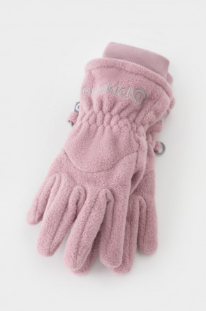Перчатки детские из однотонного флиса с длинными манжетами на шнурке. В области запястья вшита эластичная резинка. Перчатки сохраняют цвет и форму после многократных стирок.