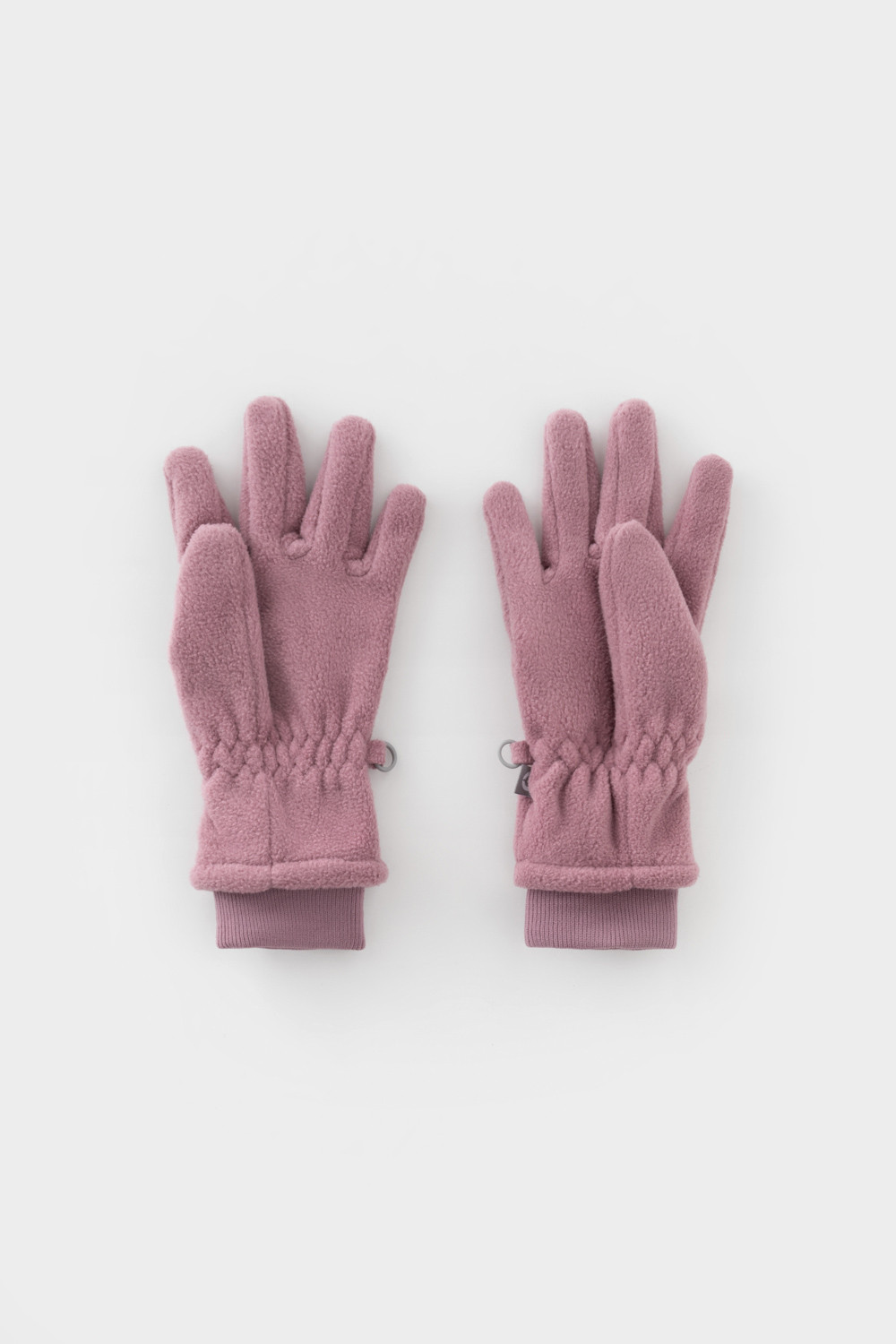 Перчатки детские из однотонного флиса с длинными манжетами на шнурке. В области запястья вшита эластичная резинка. Перчатки сохраняют цвет и форму после многократных стирок.