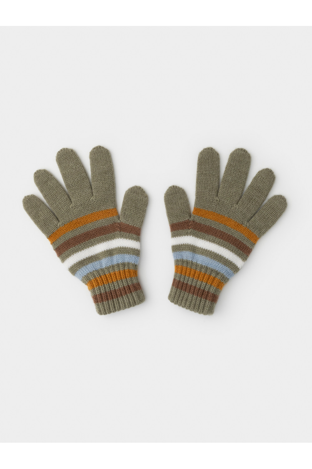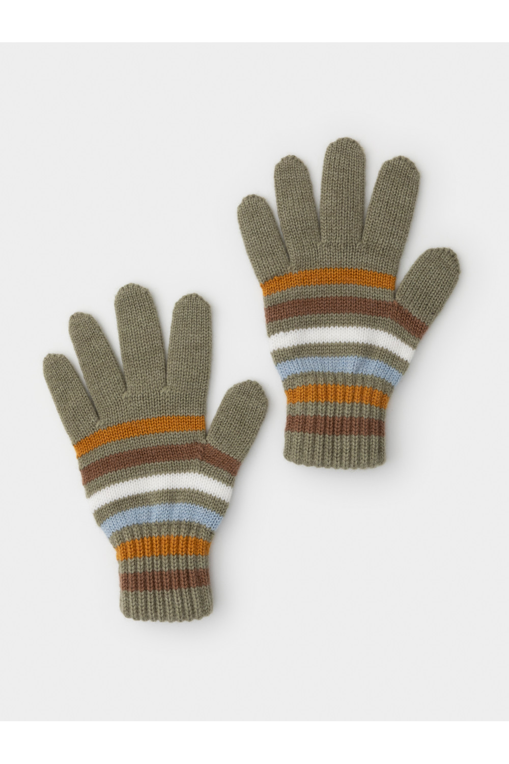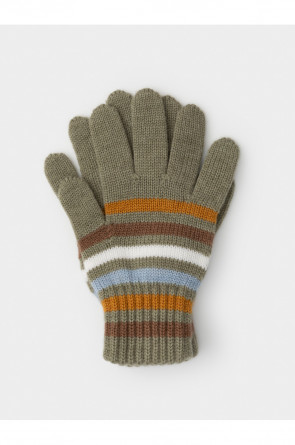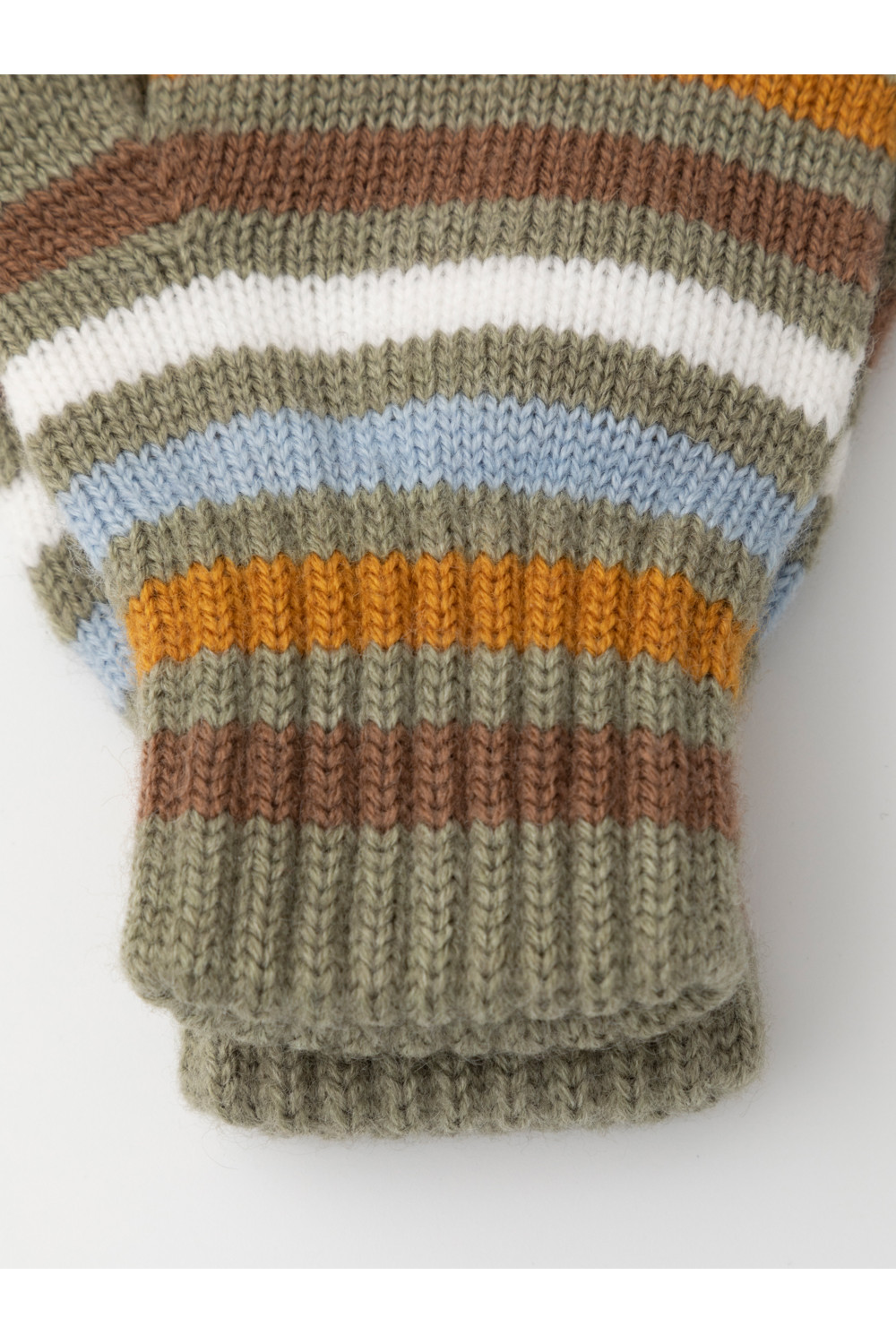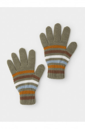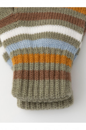 Перчатки в полоску из полушерстяной пряжи. Эластичные манжеты фиксируют перчатку на руке.