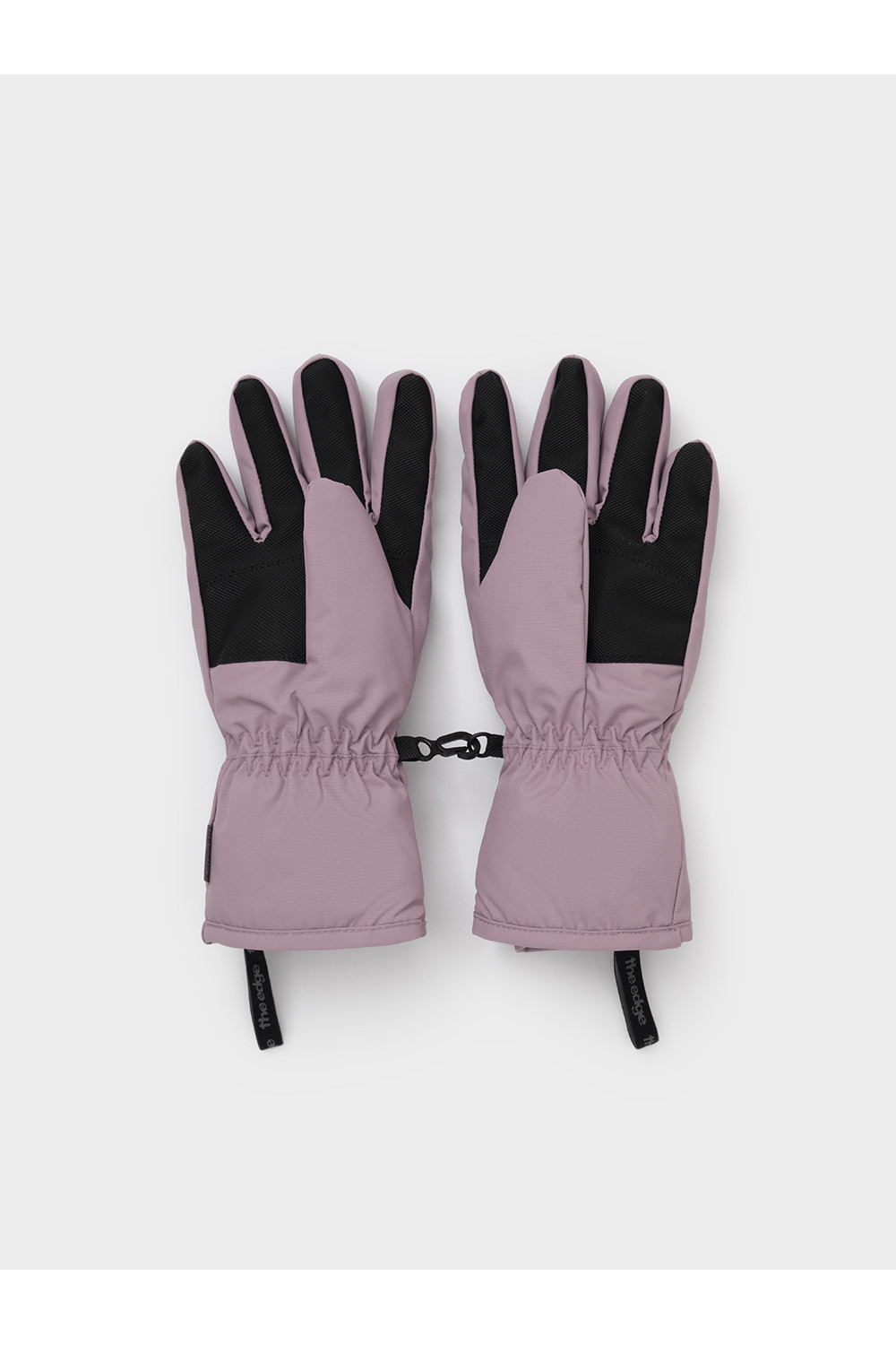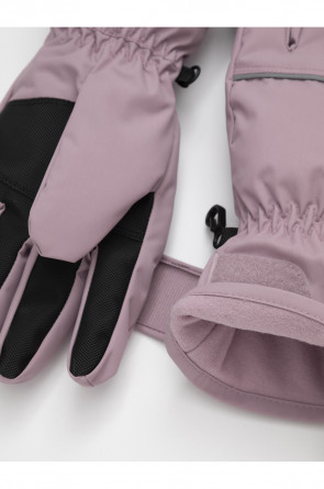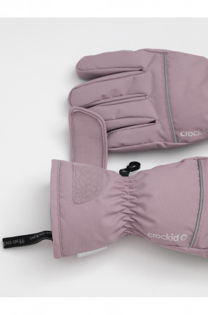 Детские утеплённые перчатки из однотонной мембранной ткани со вставками из искусственной кожи. Манжеты регулируются по ширине с помощью липучки. Мягкий подклад из флиса. Пластиковый карабин для скрепления перчаток между собой. Светоотражающие элементы.