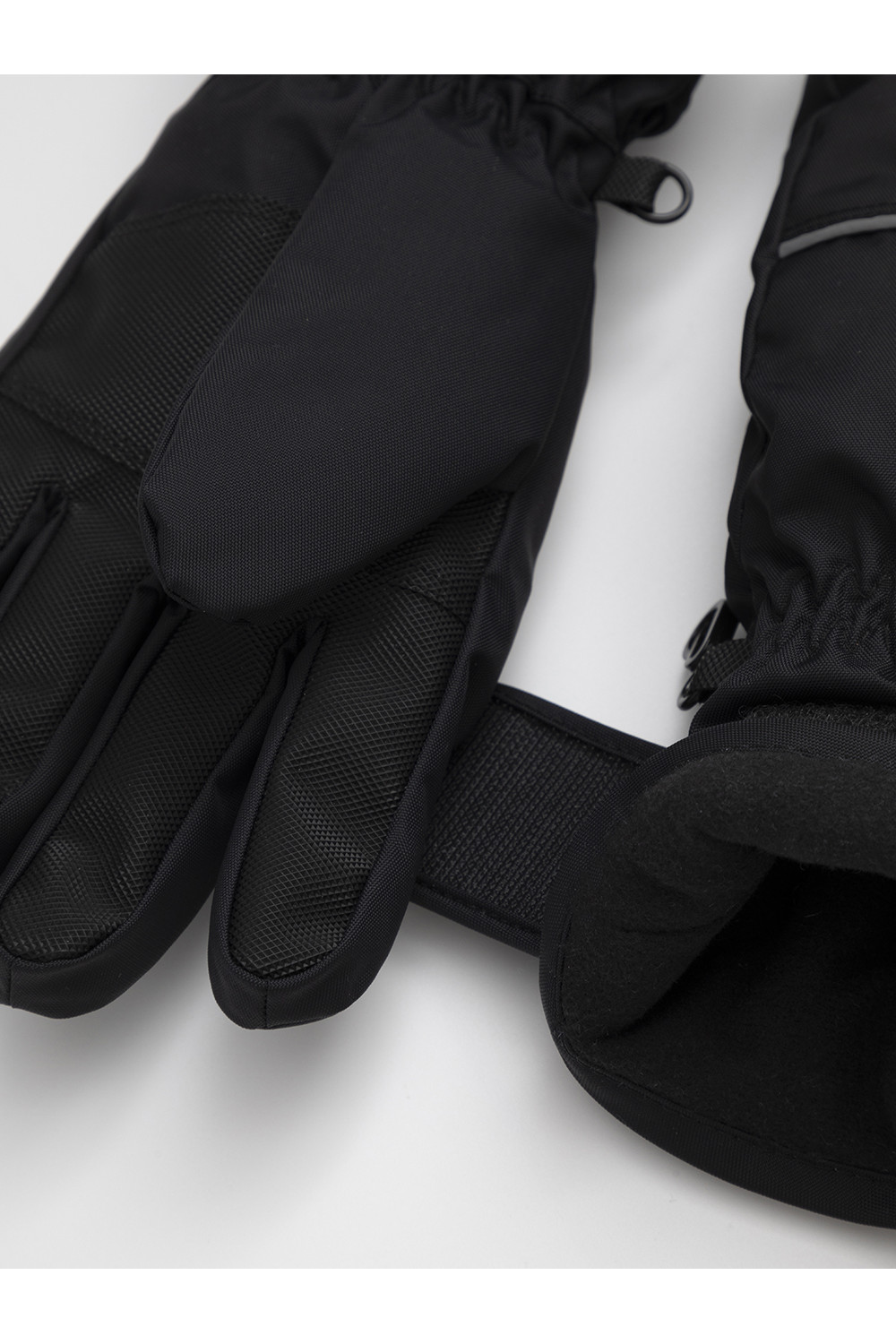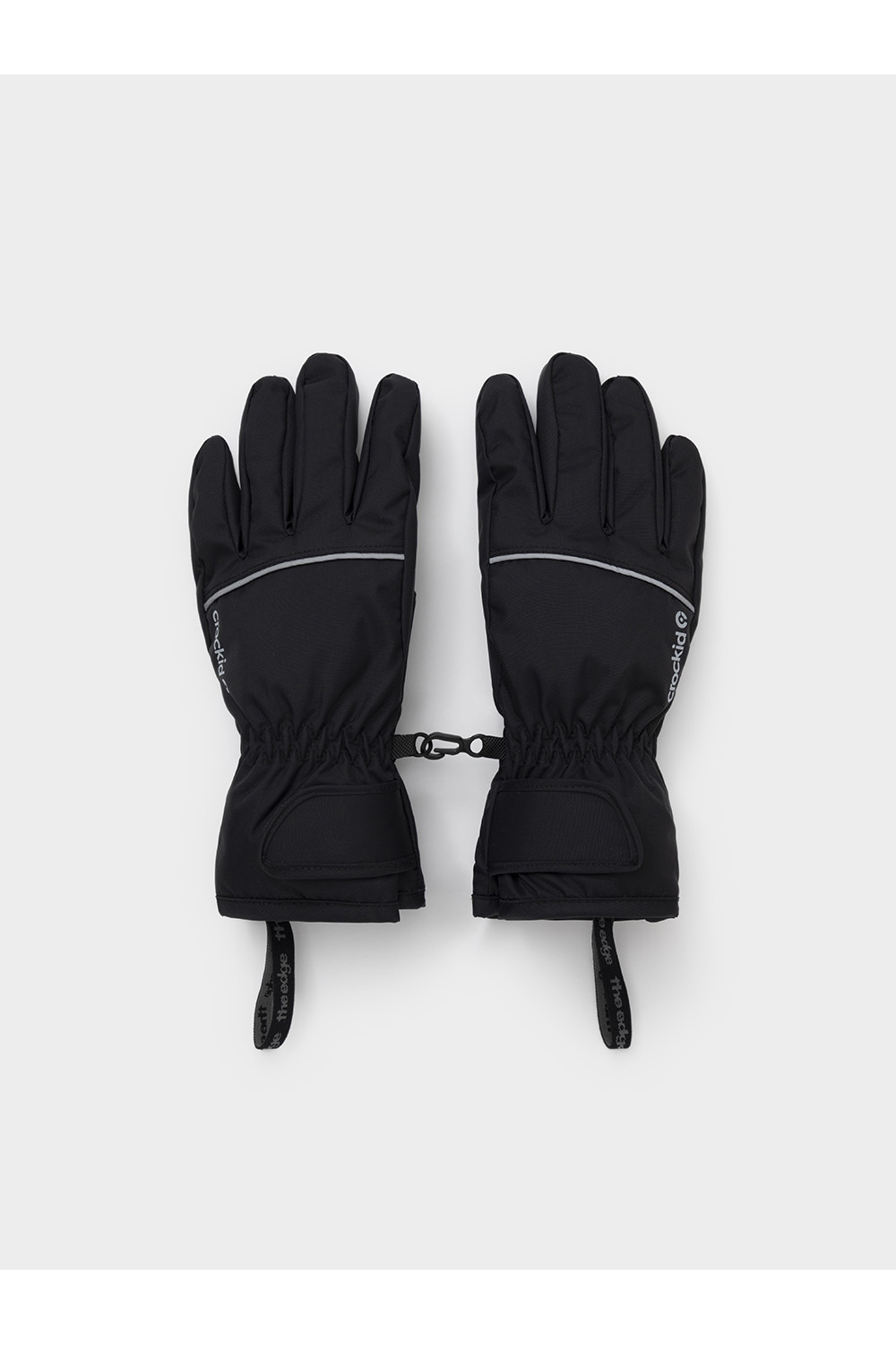 Детские утеплённые перчатки из однотонной мембранной ткани со вставками из искусственной кожи. Манжеты регулируются по ширине с помощью липучки. Мягкий подклад из флиса. Пластиковый карабин для скрепления перчаток между собой. Светоотражающие элементы.