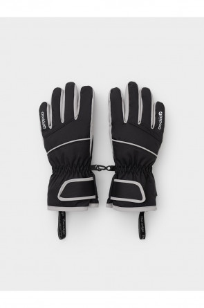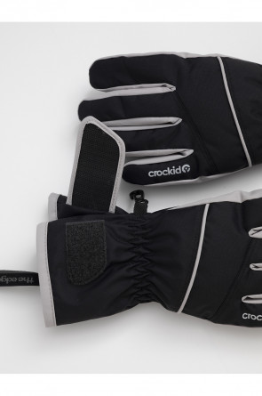 Детские утеплённые перчатки из мембранной ткани со вставками из искусственной кожи. Манжеты регулируются по ширине запястья с помощью липучки. Внутри мягкий подклад. Пластиковый карабин скрепляет перчатки между собой. Светоотражающие элементы служат для дополнительной безопасности в тёмное время суток.