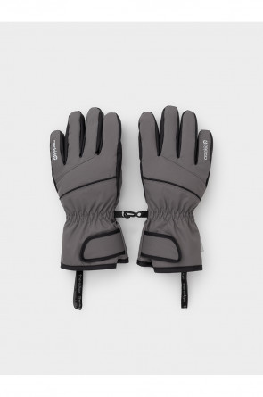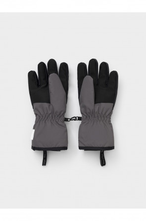 Детские утеплённые перчатки из мембранной ткани со вставками из искусственной кожи. Манжеты регулируются по ширине запястья с помощью липучки. Внутри мягкий подклад. Пластиковый карабин скрепляет перчатки между собой. Светоотражающие элементы служат для дополнительной безопасности в тёмное время суток.