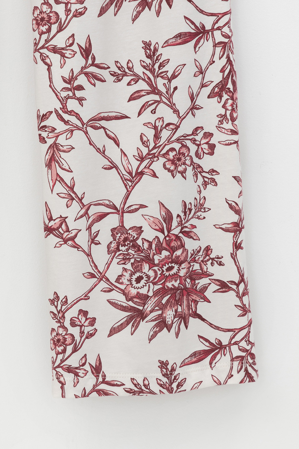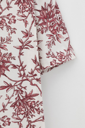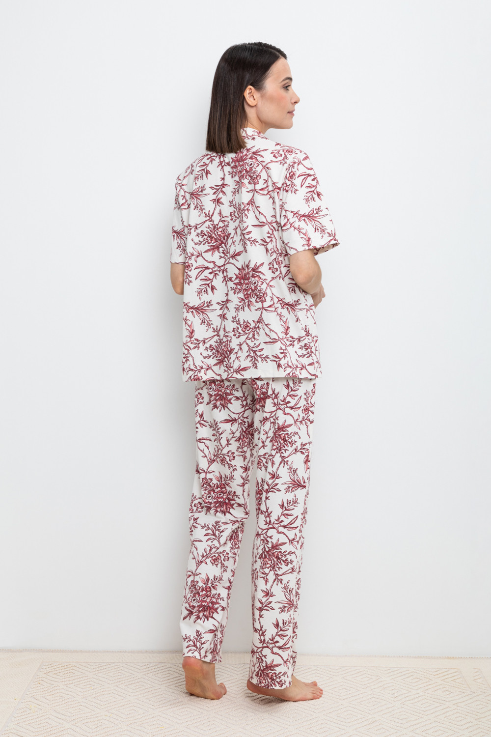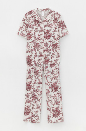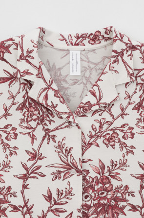 Комплект для комфортного сна из набивного трикотажа с нежным рисунком из 100% натурального хлопка. Рубашка с короткими рукавами на пуговицах . Брюки с мягким поясом на резинке. Гладкий материал приятен к телу, не теряет форму и позволяет коже дышать.