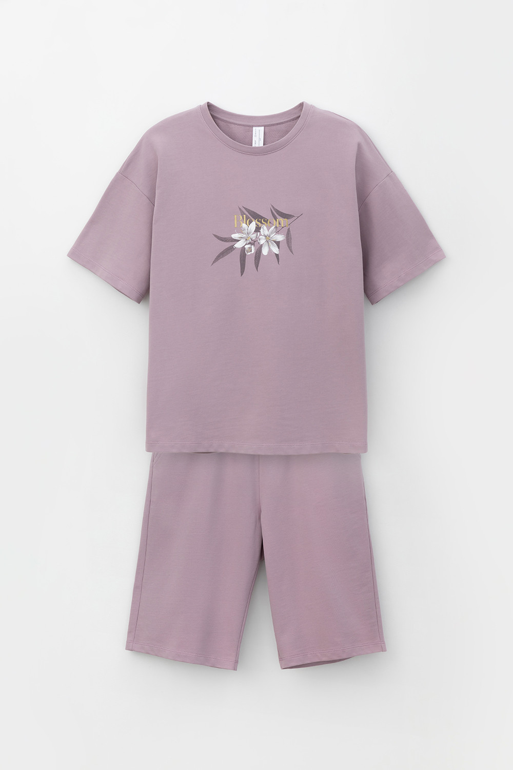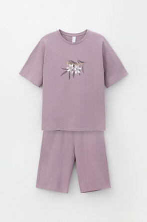 Комплект для комфортного отдыха из мягкого футера. Футболка с короткими рукавами и спущенной линией плеча комфортно садится по фигуре. Шорты с карманами и мягким поясом на резинке. Свободный силуэт не сковывает движения.
