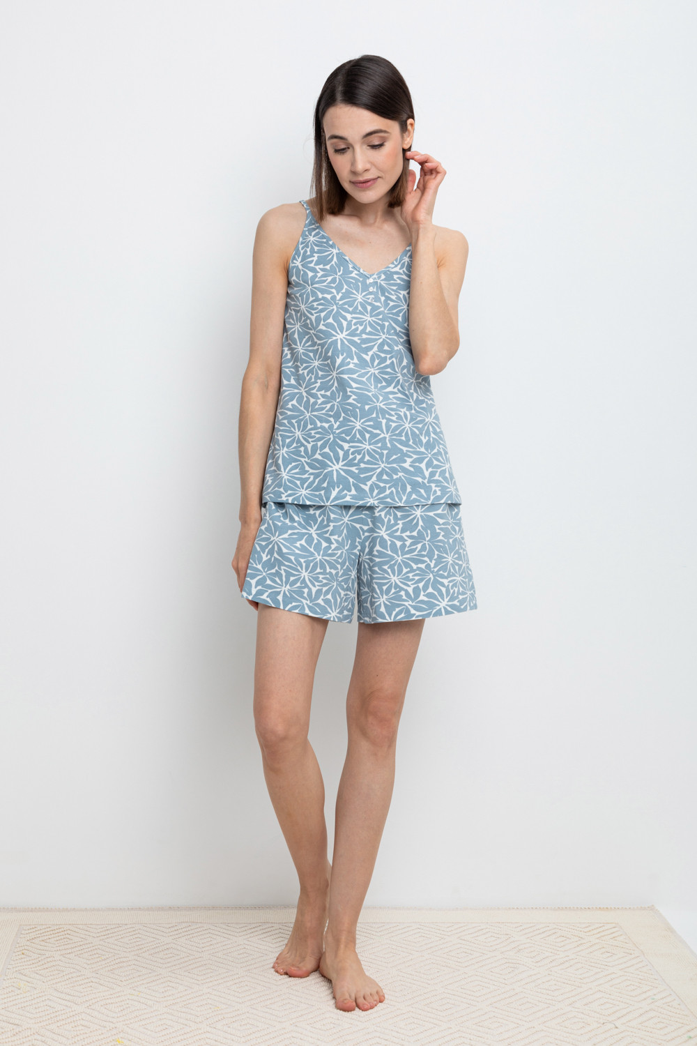 Комплект для комфортного сна из натурального хлопка с добавлением лайкры. Майка на регулируемых бретелях удобно садится по фигуре. Шорты с мягким поясом на резинке. Гладкий материал приятен к телу, не теряет форму и позволяет коже дышать.
