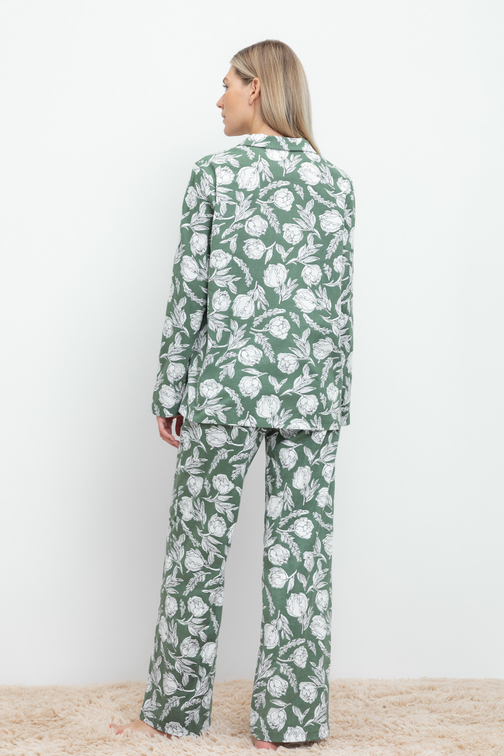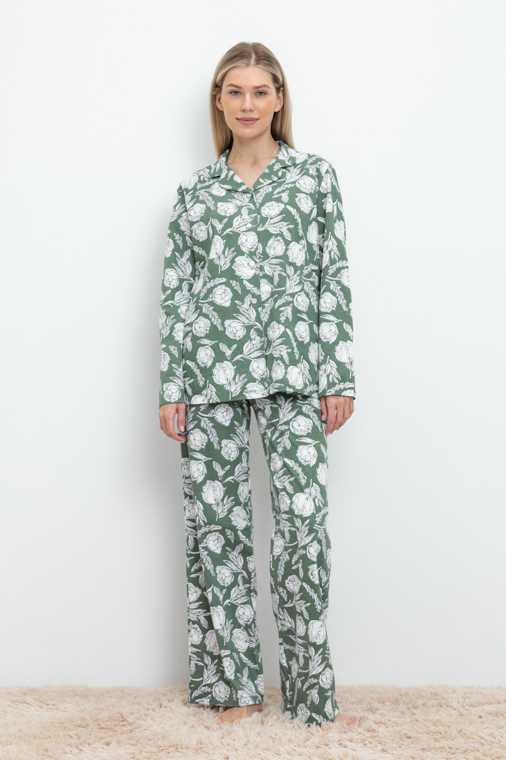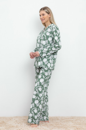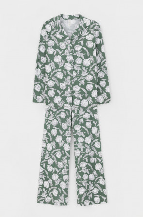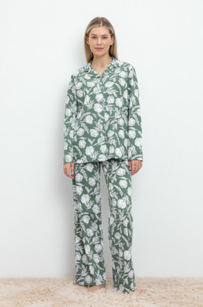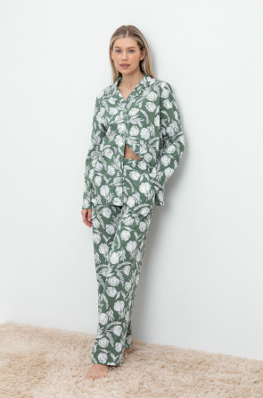 Комплект для комфортного сна и отдыха из набивного трикотажа из 100% натурального хлопка. Рубашка с длинными рукавами на пуговицах. Брюки с мягким поясом на резинке. Гладкий материал приятен к телу, не теряет форму и позволяет коже дышать.