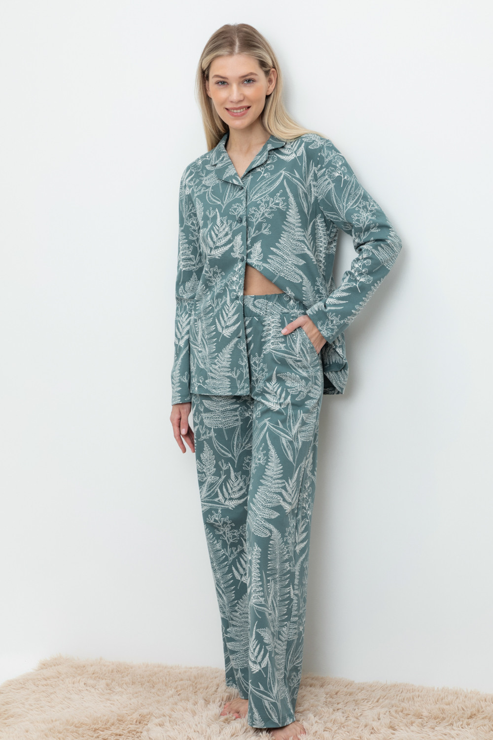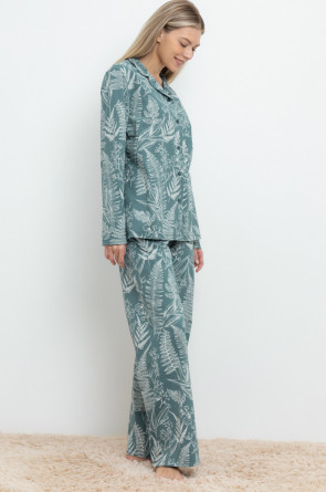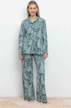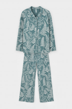 Комплект для комфортного сна и отдыха из набивного трикотажа из 100% натурального хлопка. Рубашка с длинными рукавами на пуговицах. Брюки с мягким поясом на резинке. Гладкий материал приятен к телу, не теряет форму и позволяет коже дышать.