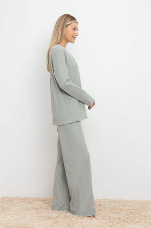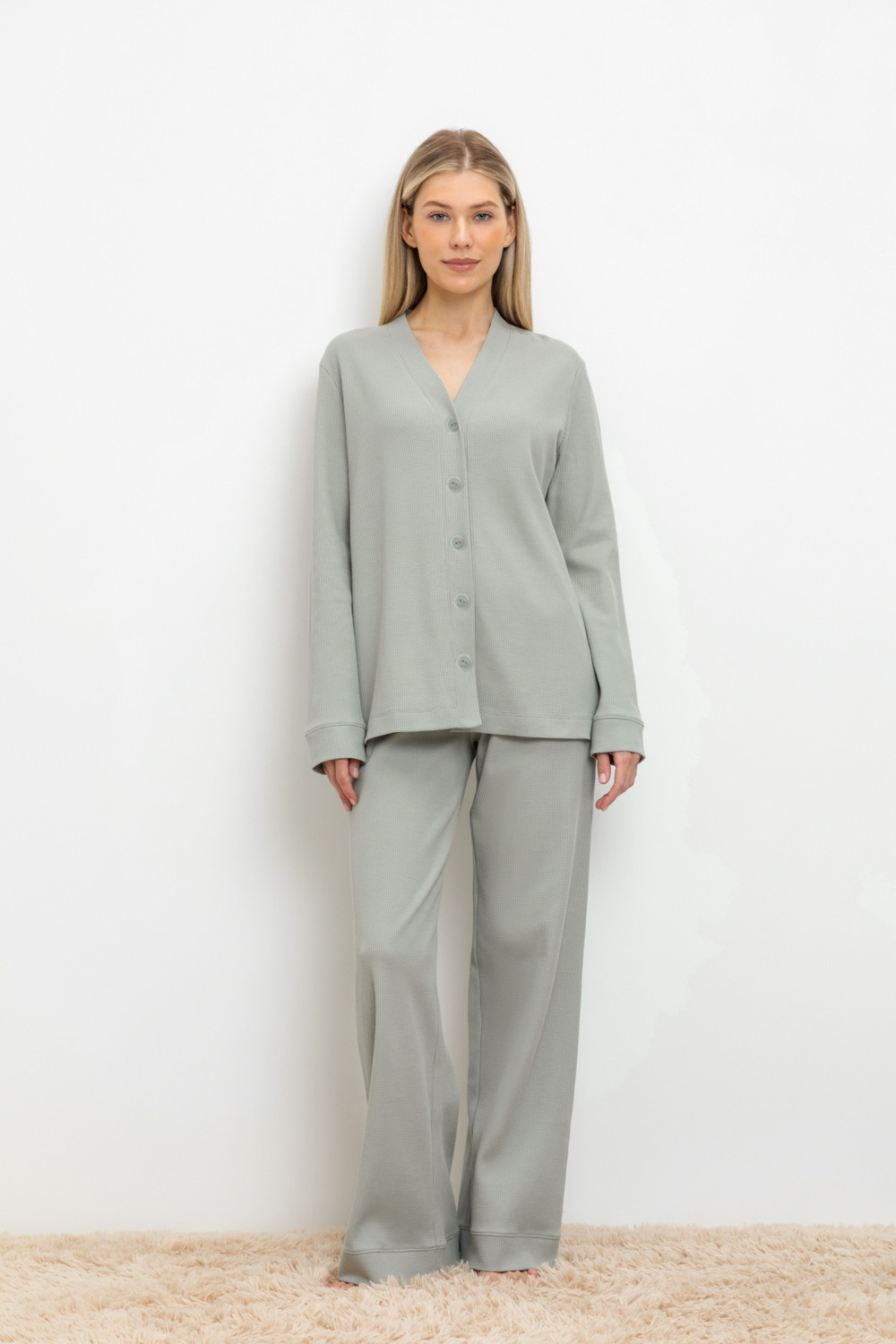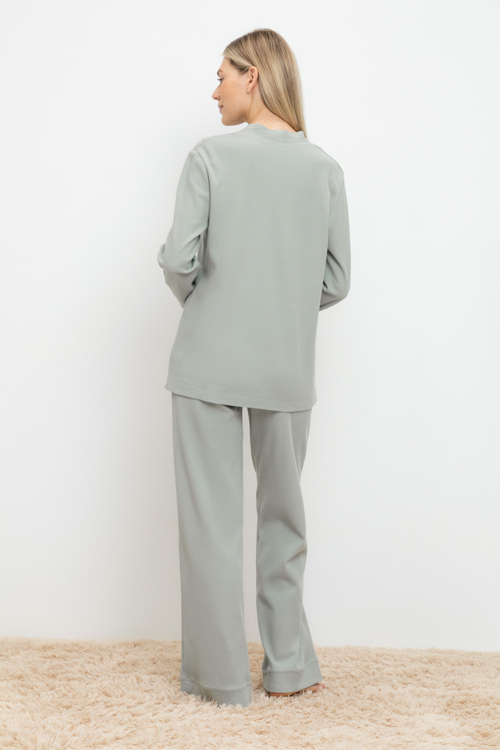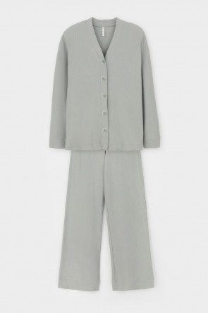 Комплект для комфортного сна и отдыха из вафельного полотна из 100% натурального хлопка. Рубашка с длинными рукавами и манжетами на пуговицах. Брюки с карманами и мягким поясом на резинке. Материал приятен к телу, не теряет форму и позволяет коже дышать.