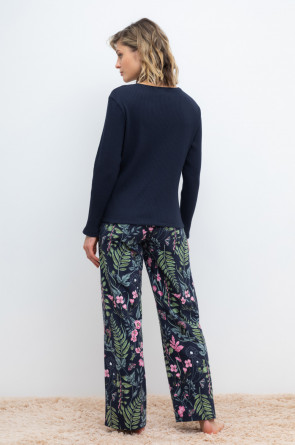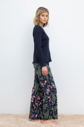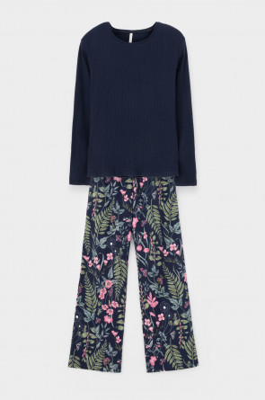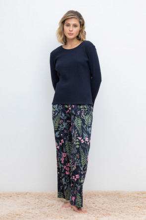 Комплект для комфортного сна и отдыха из трикотажного полотна с набивным рисунком. Джемпер из эластичного трикотажа с добавлением лайкры в рубчик. Брюки с мягким поясом на резинке удобно садятся по фигуре. Гладкий материал приятен к телу, не теряет форму и позволяет коже дышать.