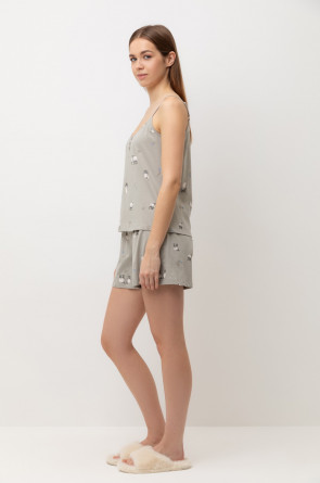 Комплект из высококачественного гребенного хлопка выполнен с вниманием к деталям. Регулируемые бретели позволяют подстроить их под ваши индивидуальные предпочтения, а комфортный пояс шорт обеспечивает свободу движений.
