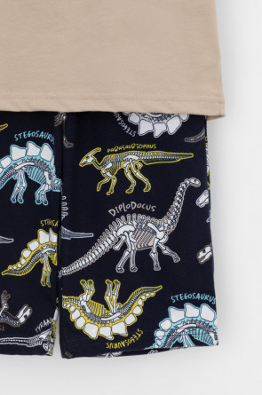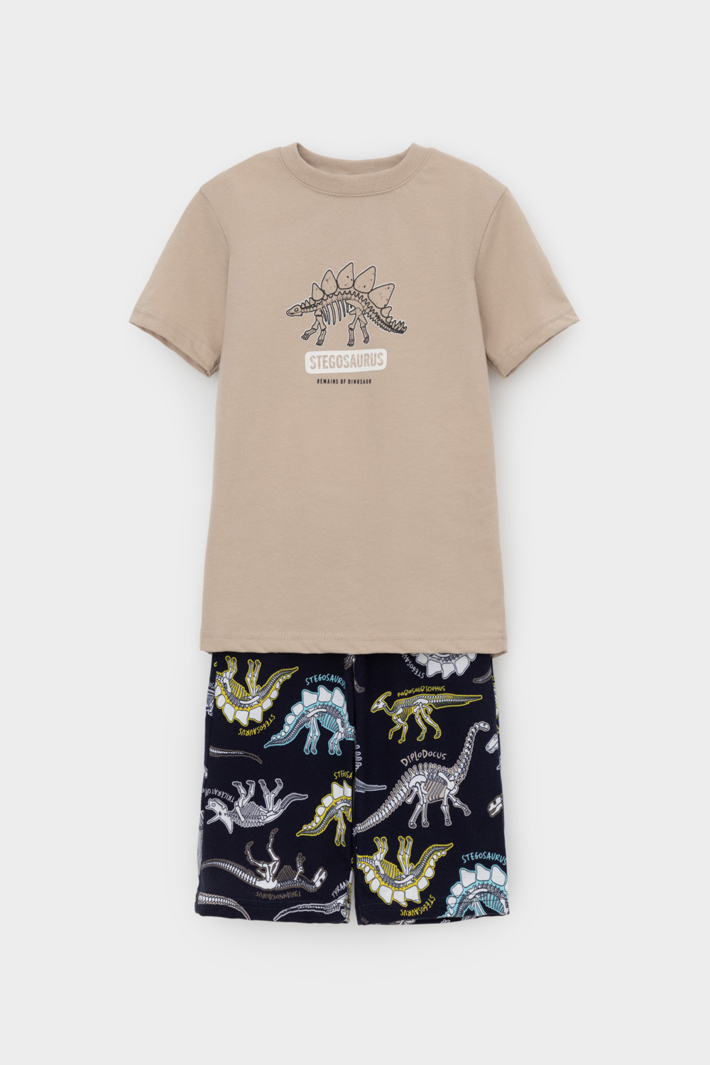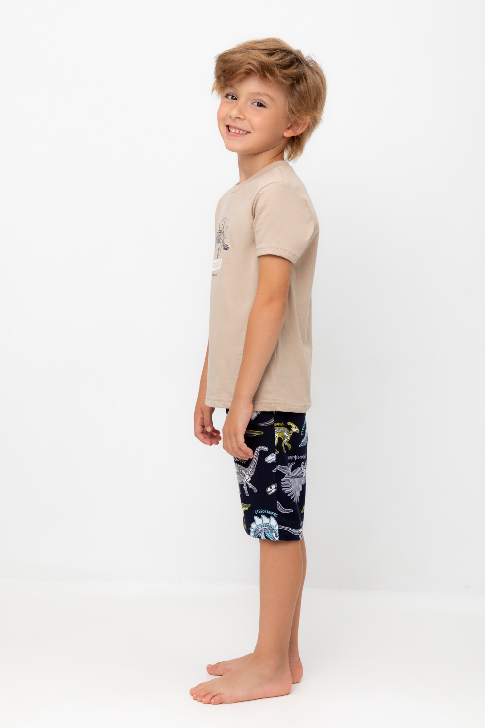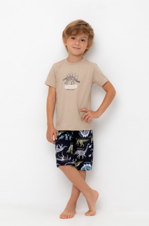 Трикотажная пижама из натурального хлопка. Футболка с короткими рукавами с принтом . У шорт эластичный пояс на резинке. Оригинальная набивка выполнена из стойких, гипоаллергенных текстильных красителей. Пижама сохраняет цвет и форму после многократных стирок. Все трикотажные полотна производятся в соответсвии с нормами Швейцарского сертификата ЭкоТекс.