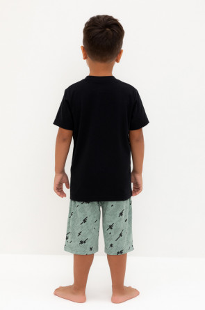Трикотажная пижама из натурального хлопка. Футболка с короткими втачными рукавами и шорты с эластичной резинкой в поясе. Оригинальные набивка и принт выполнены из стойких гипоаллергенных текстильных гипоаллергенных красителей. Изделие сохраняет цвет и форму после многократных стирок. Все трикотажные полотна производятся в соответсвии с нормами швейцарского сертификата ЭкоТекс.