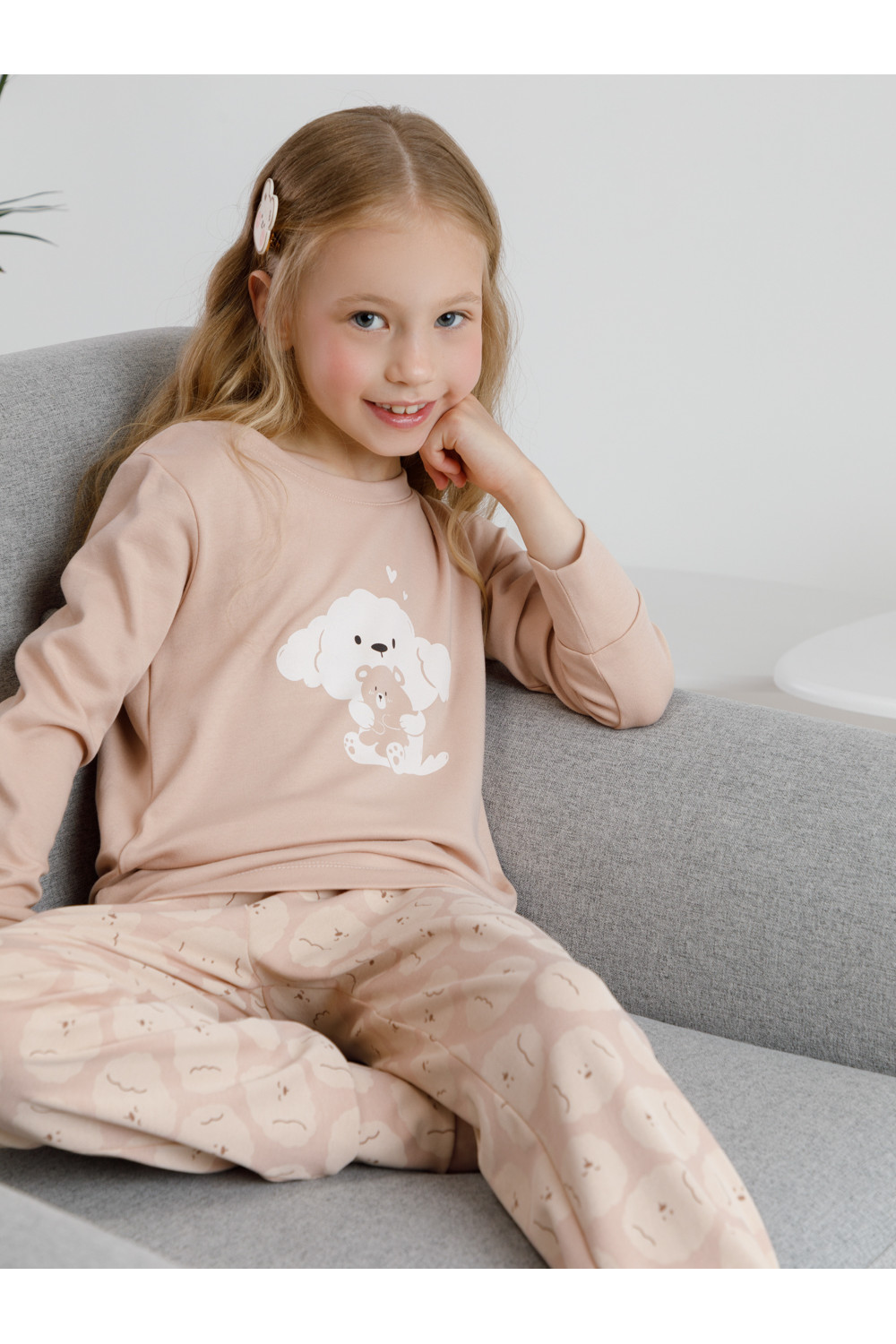 Трикотажная пижама из натурального хлопка. Джемпер с длинными втачными рукавами и брюки с эластичной резинкой в поясе. Мягкие манжеты на рукавах и по низу брюк. Оригинальная набивка и принт выполнены из стойких текстильных гипоаллергенных красителей. Изделие сохраняет цвет и форму после многократных стирок. Все трикотажные полотна производятся в соответствии с нормами швейцарского сертификата ЭкоТекс.