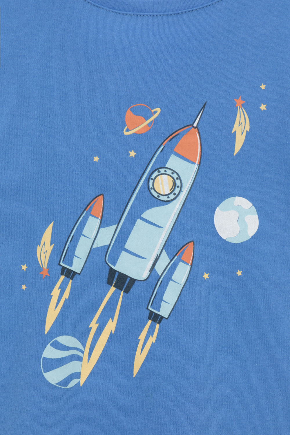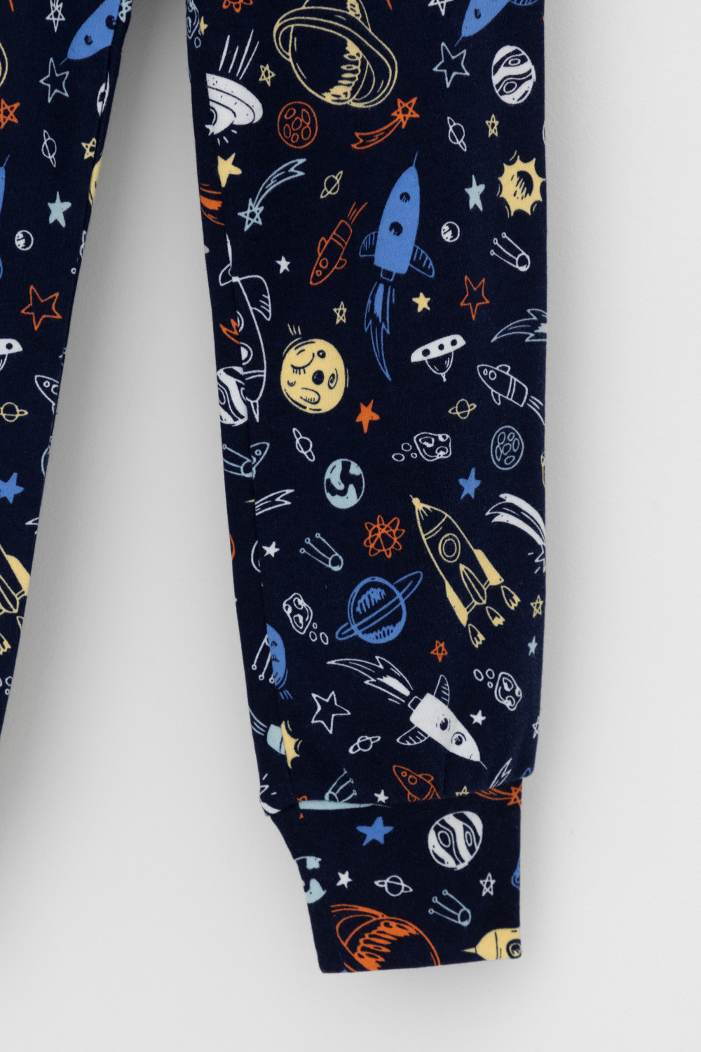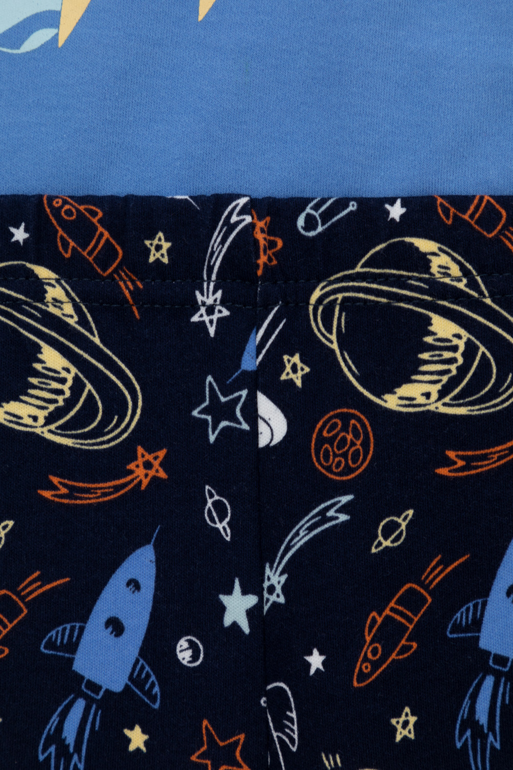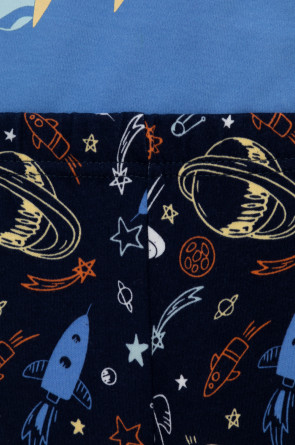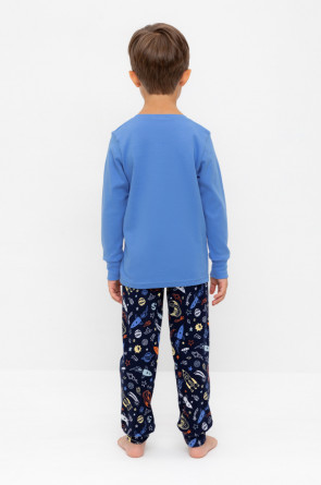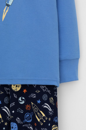 Трикотажная пижама из натурального хлопка. Джемпер с длинными рукавами с эластичными манжетами. У брюк эластичный пояс на резинке. Оригинальная набивка и принт выполнены из стойких, гипоаллергенных текстильных красителей. Пижама сохраняет цвет и форму после многократных стирок. Все трикотажные полотна производятся в соответствии с нормами Швейцарского сертификата ЭкоТекс.