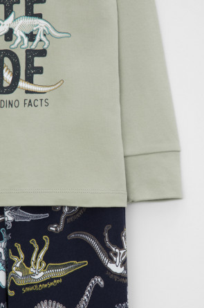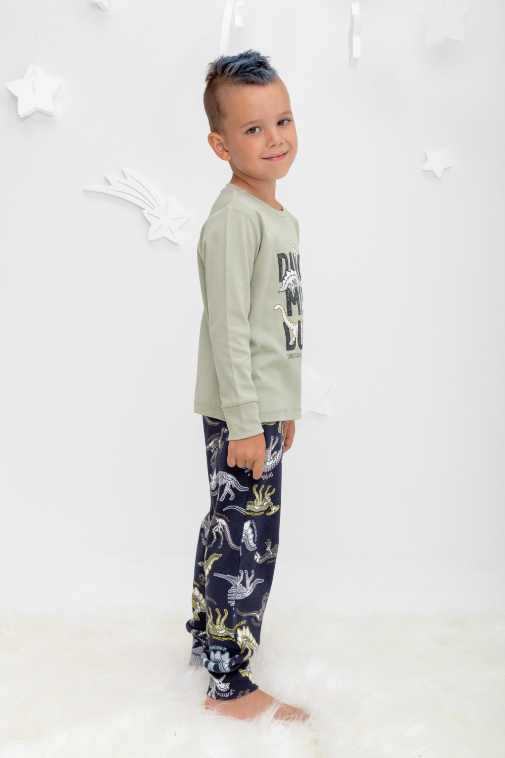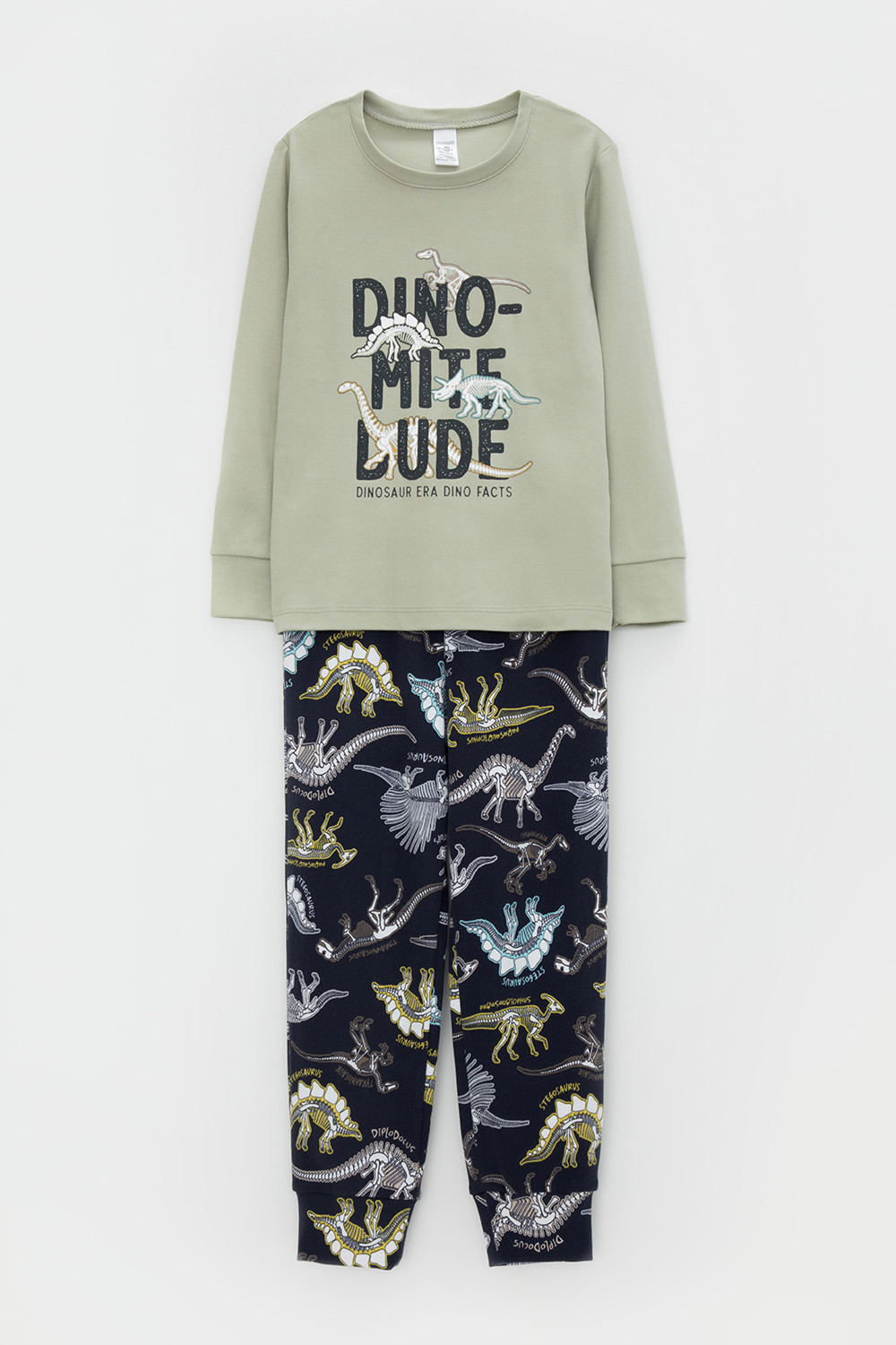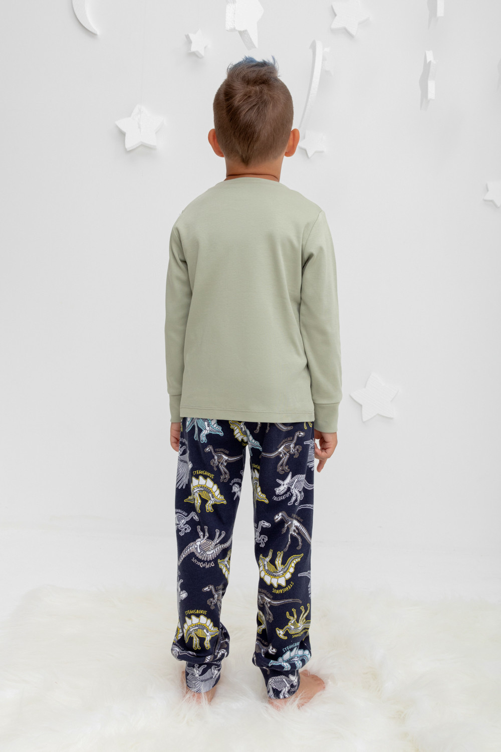 Трикотажный пижамный комплект из натурального хлопка. У джемпера длинные втачные рукава с мягкими манжетами. Брюки с удобным поясом на резинке и эластичными манжетами. Оригинальная набивка и принт выполнены из стойких, гипоаллергенных текстильных красителей. Все трикотажные полотна производятся в соответствии с нормами Швейцарского сертификата ЭкоТекс.