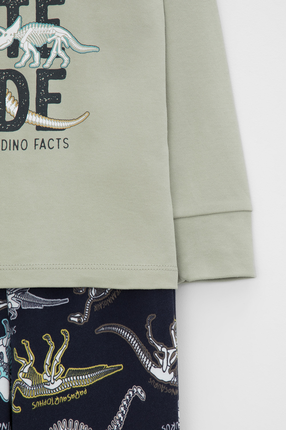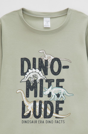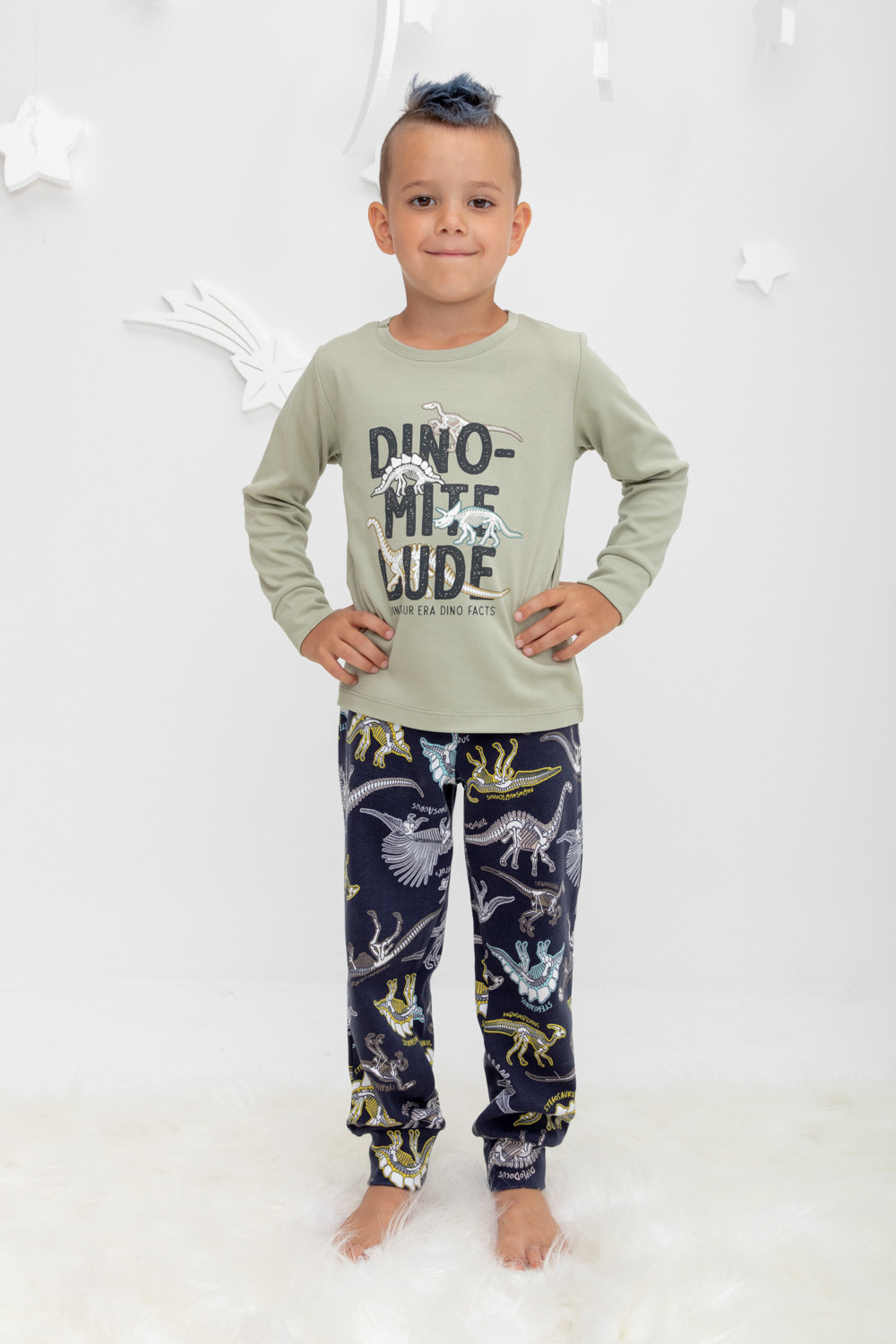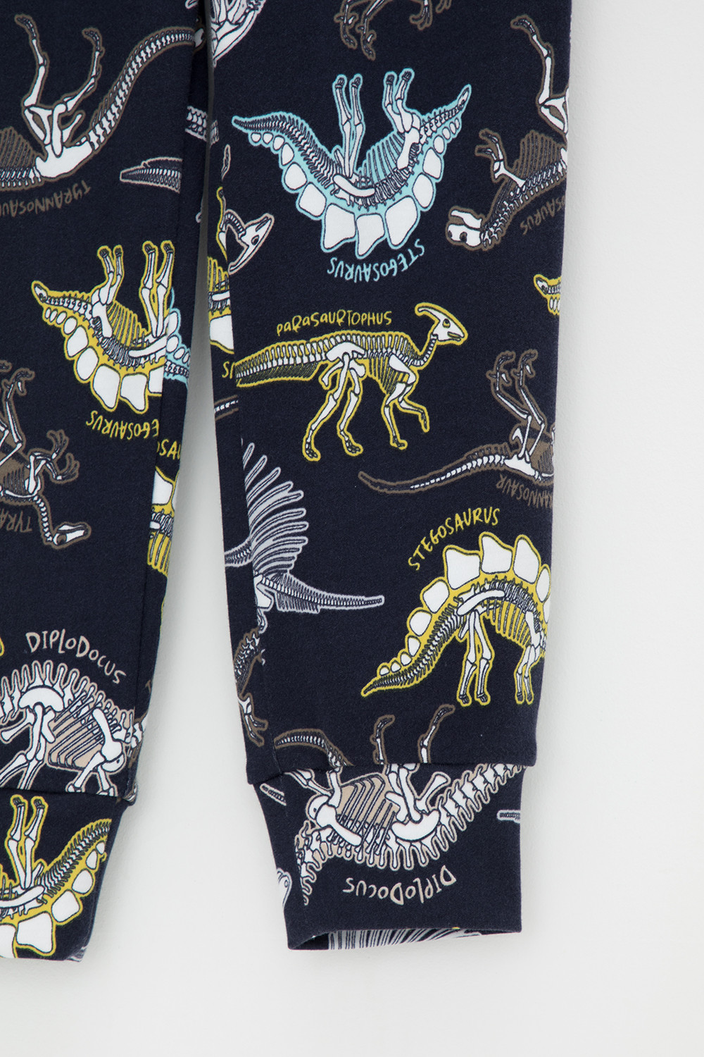 Трикотажный пижамный комплект из натурального хлопка. У джемпера длинные втачные рукава с мягкими манжетами. Брюки с удобным поясом на резинке и эластичными манжетами. Оригинальная набивка и принт выполнены из стойких, гипоаллергенных текстильных красителей. Все трикотажные полотна производятся в соответствии с нормами Швейцарского сертификата ЭкоТекс.