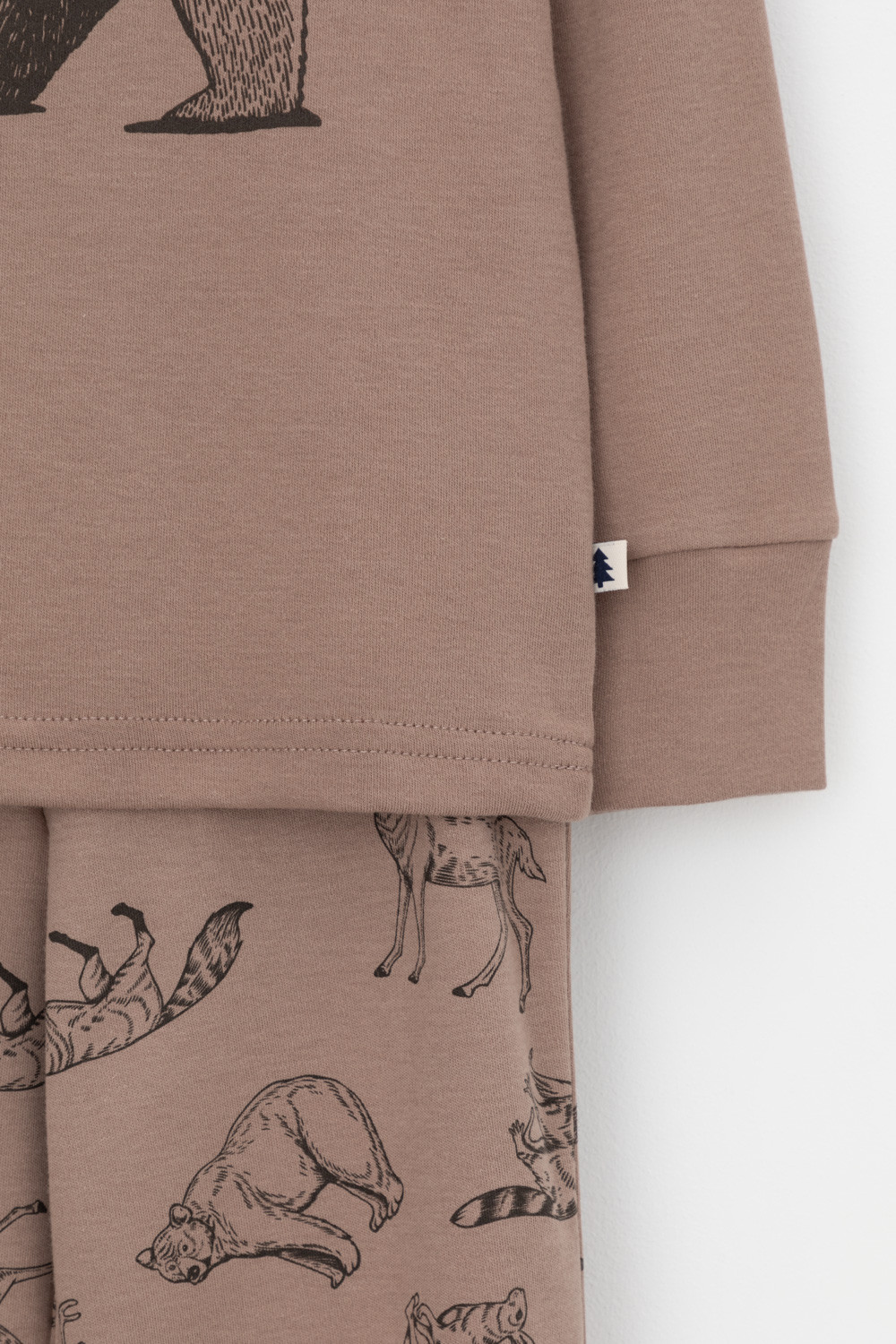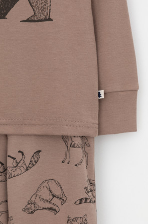 Трикотажная пижама из натурального хлопка. Джемпер с длинными рукавами с эластичными манжетами. У брюк эластичный пояс на резинке. Оригинальная набивка и принт выполнены из стойких, гипоаллергенных текстильных красителей. Пижама сохраняет цвет и форму после многократных стирок. Все трикотажные полотна производятся в соответствии с нормами Швейцарского сертификата ЭкоТекс.