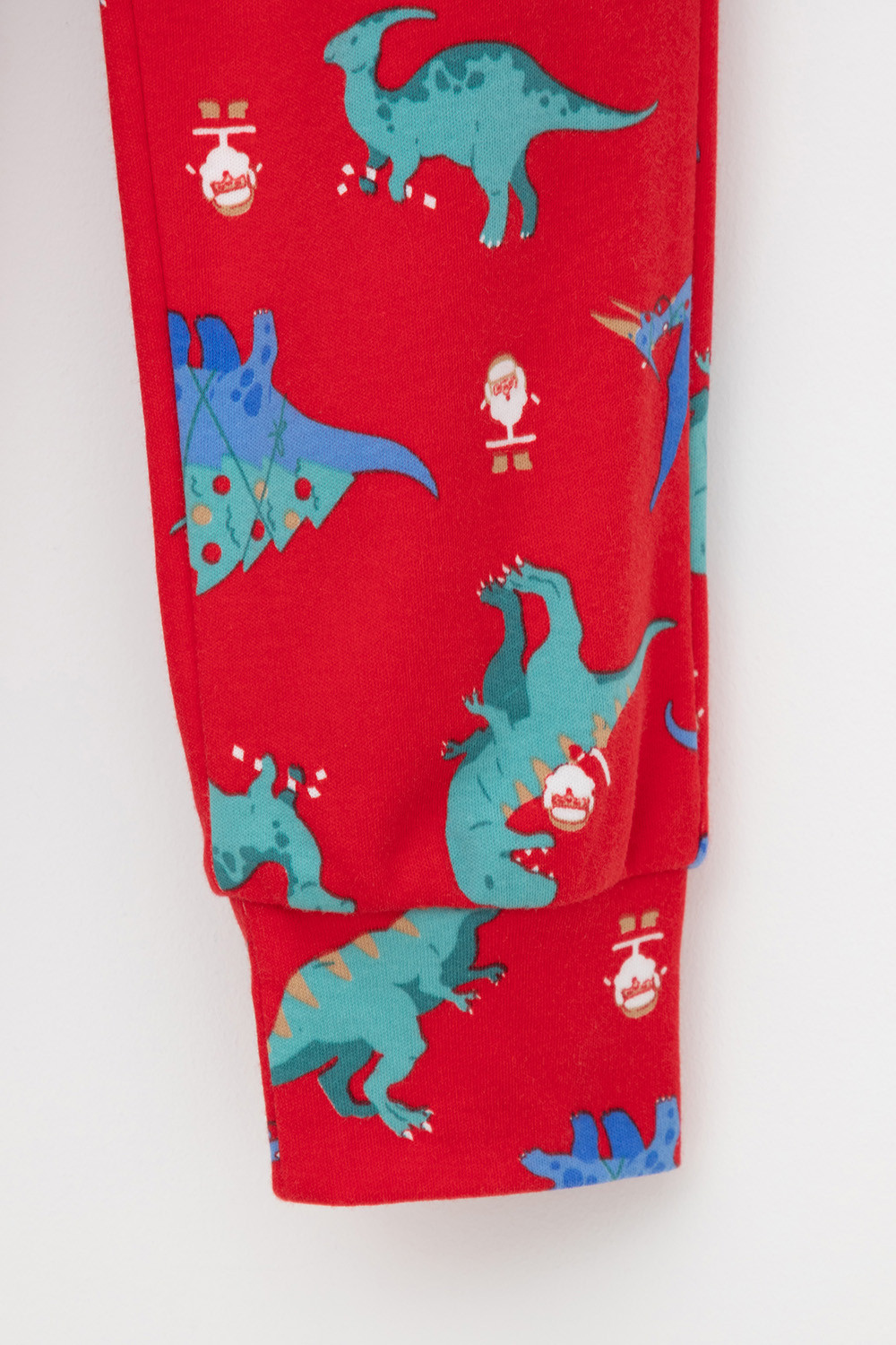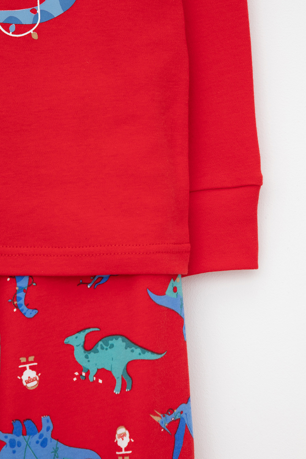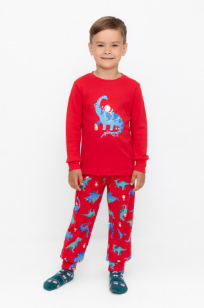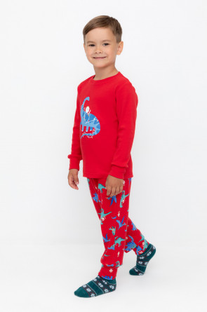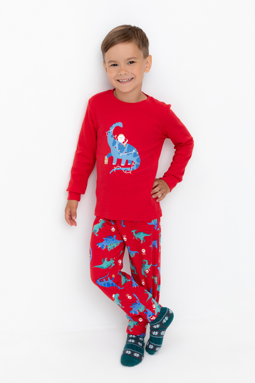 Трикотажный пижамный комплект из натурального хлопка. У джемпера длинные втачные рукава с мягкими манжетами. Брюки с удобным поясом на резинке и эластичными манжетами. Оригинальная набивка и принт выполнены из стойких, гипоаллергенных текстильных красителей. Все трикотажные полотна производятся в соответствии с нормами Швейцарского сертификата ЭкоТекс.